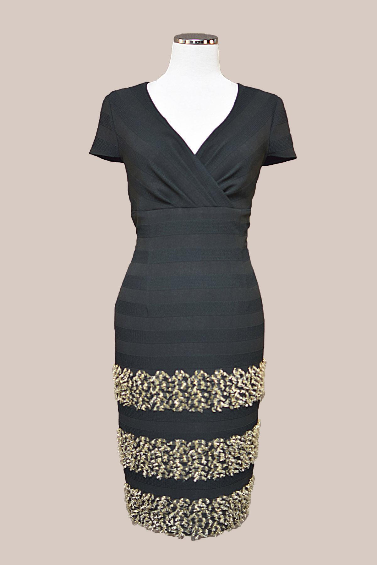 EFFECT Φόρεμα αμπίρ με ανάγλυφο ελαστικό ύφασμα σε ίσια γραμμή και ζαπονέ μανίκι.