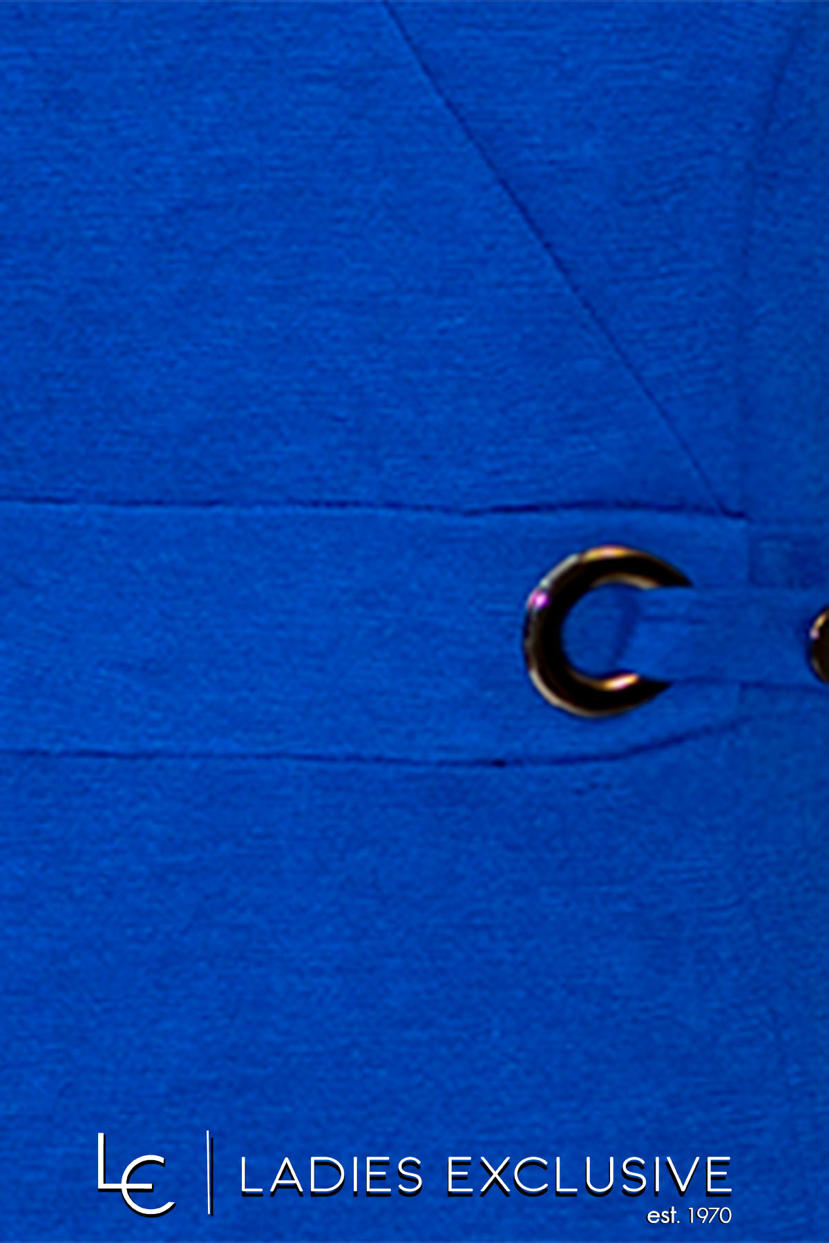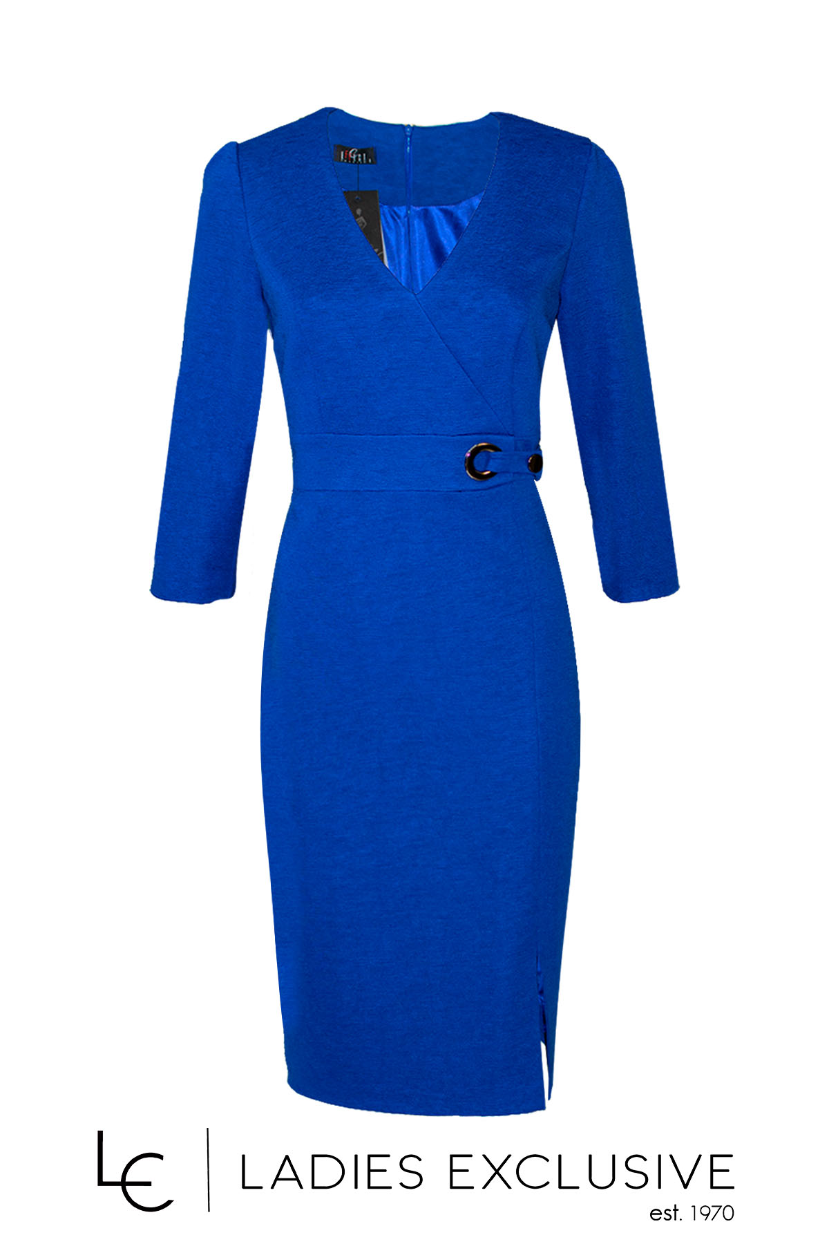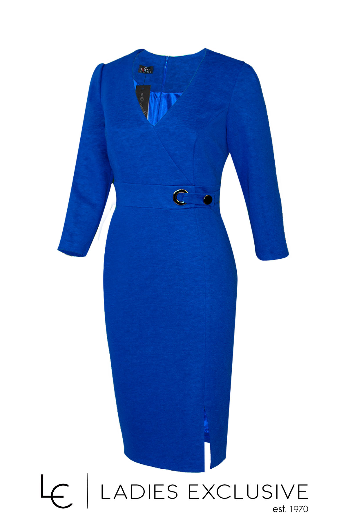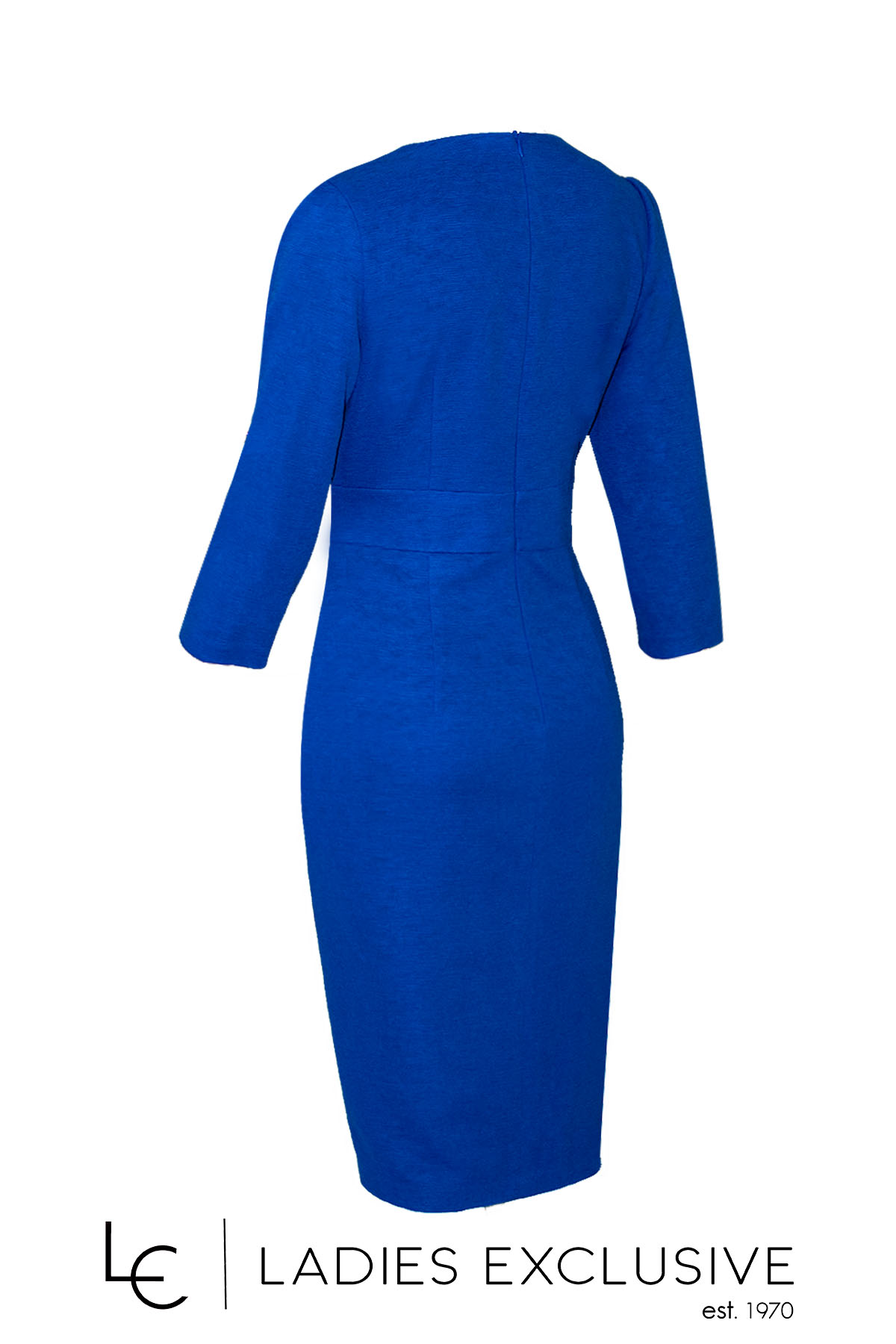 EFFECT Φόρεμα μπλε κοντομάνικο γκοφρέ σε ίσια γραμμή κρουαζέ, με μικρό άνοιγμα στο μπροστινό μέρος.