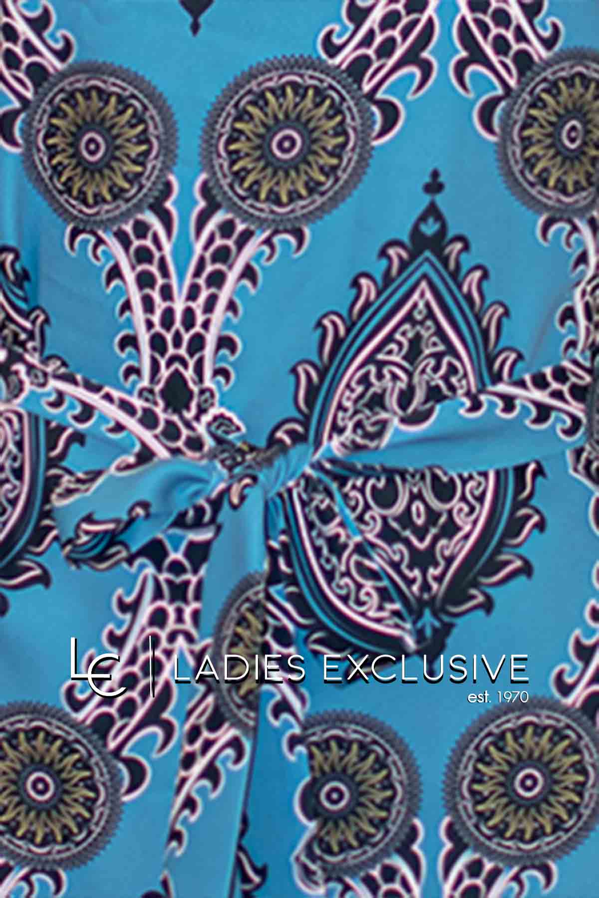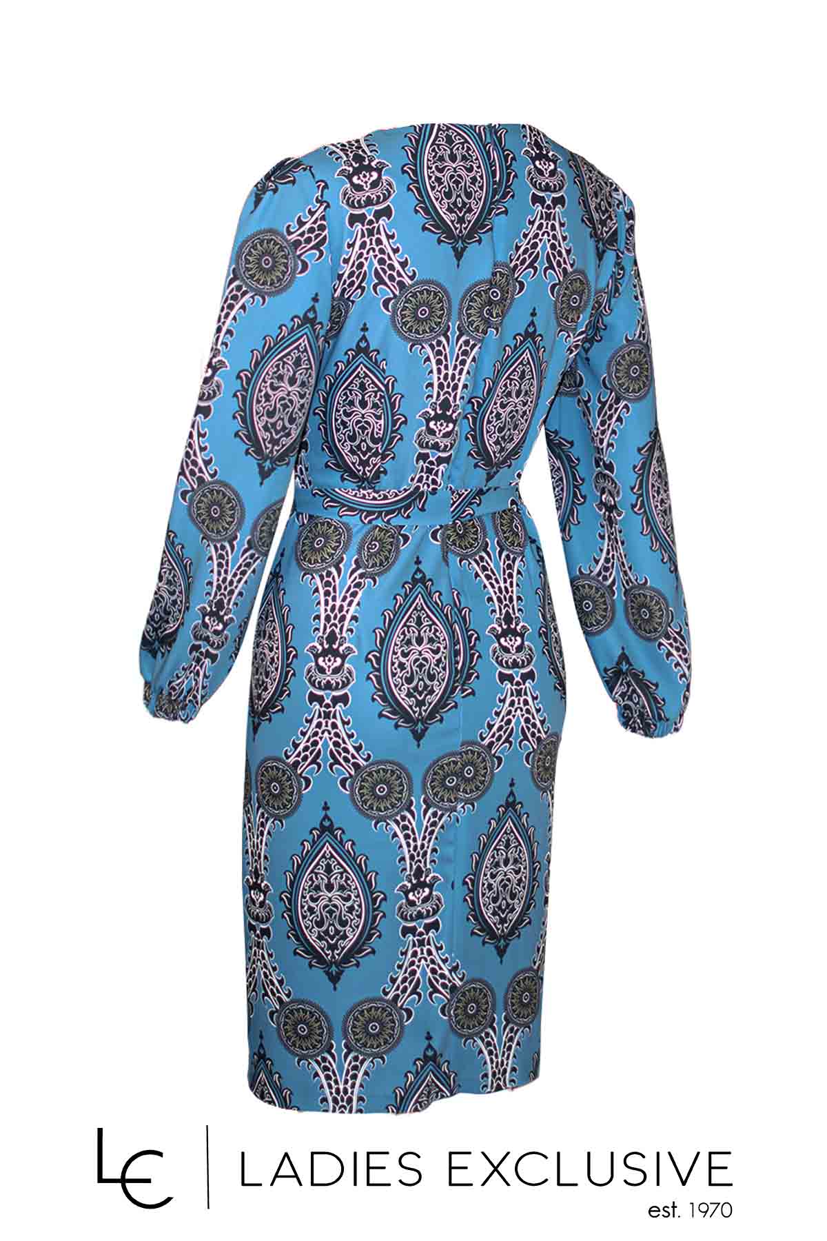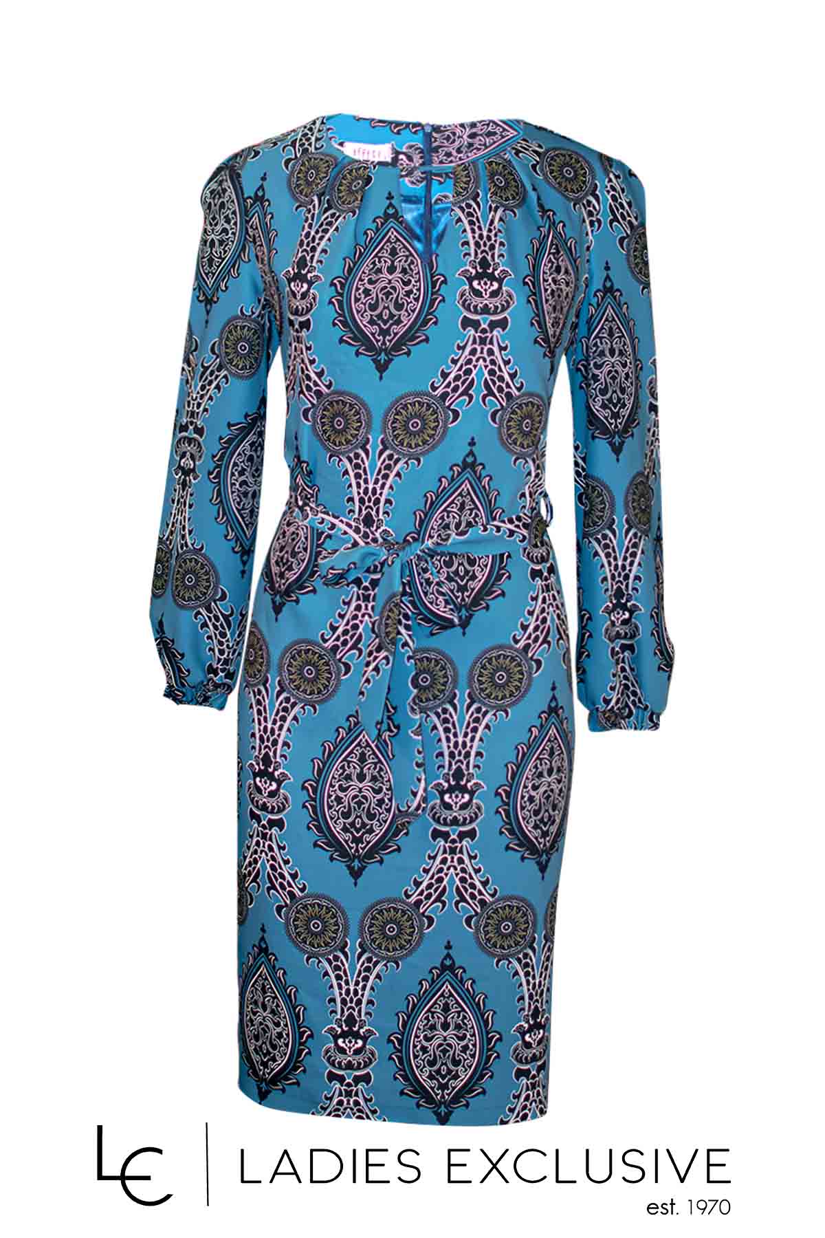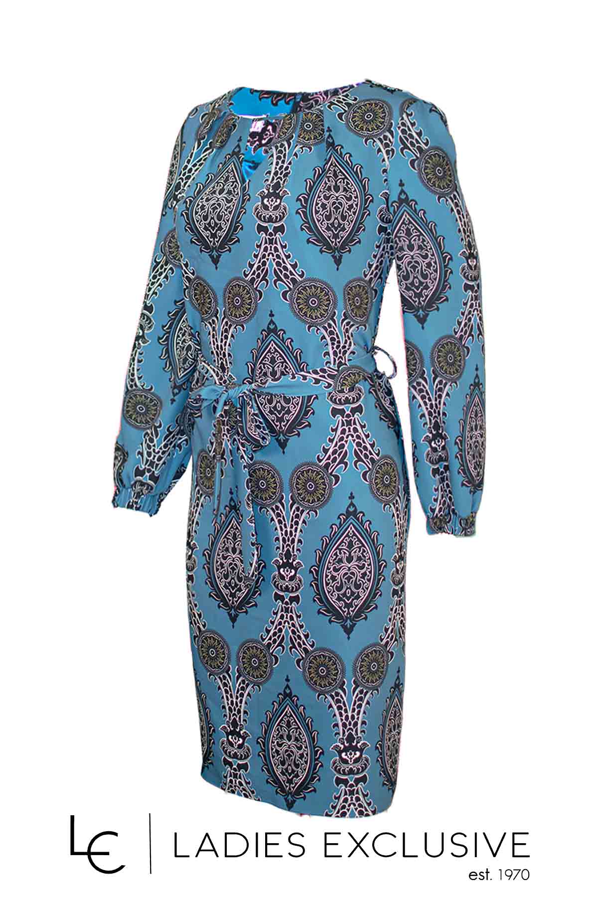 EFFECT Φόρεμα ίντιγο με εμπριμέ σχέδια σε γραμμή A, με ζώνη από το ίδιο ύφασμα και λάστιχο στο τελείωμα του μανικιού.