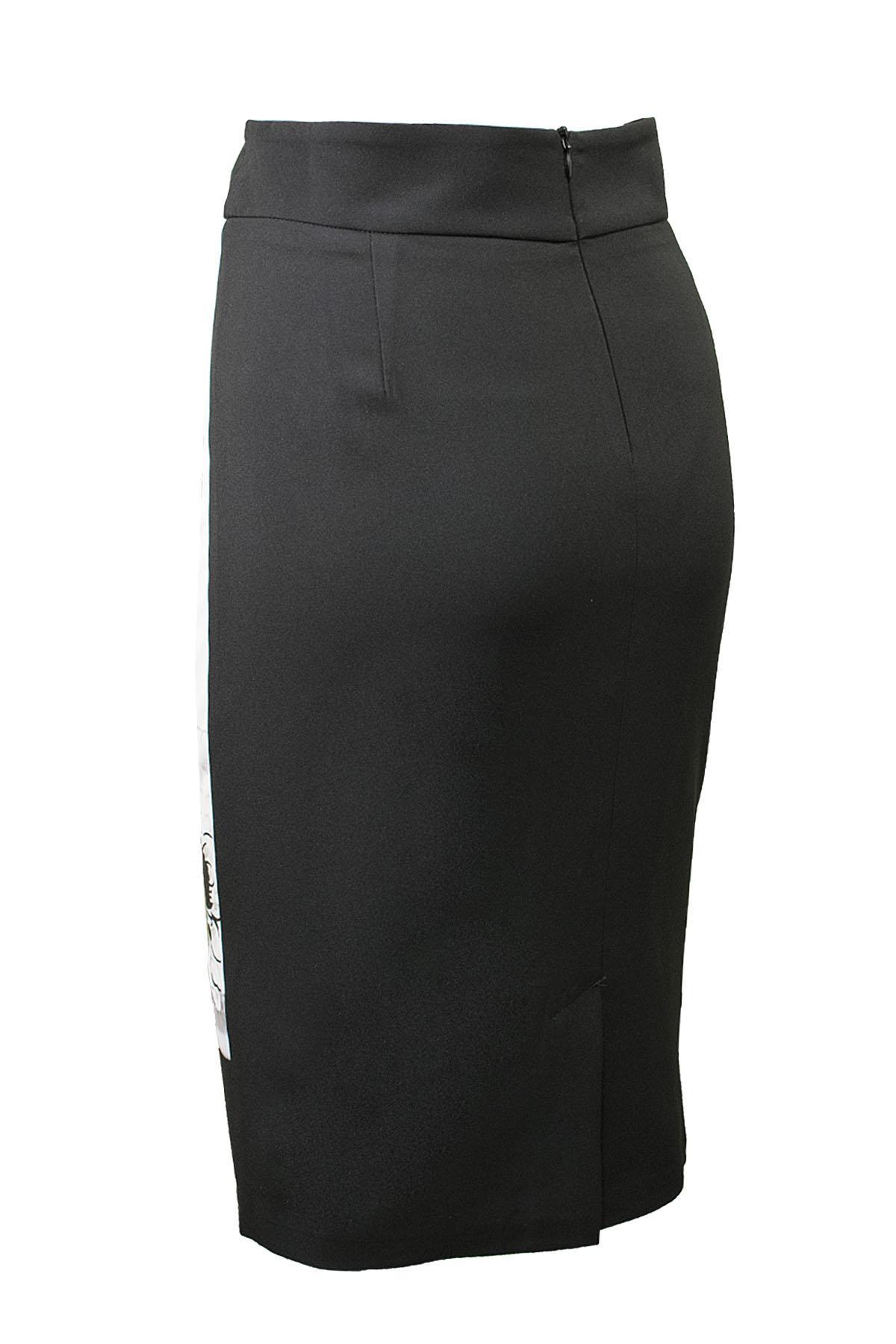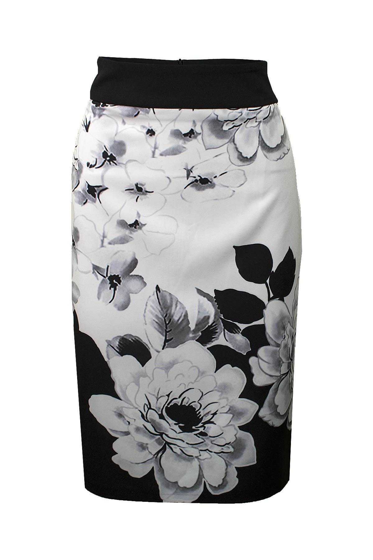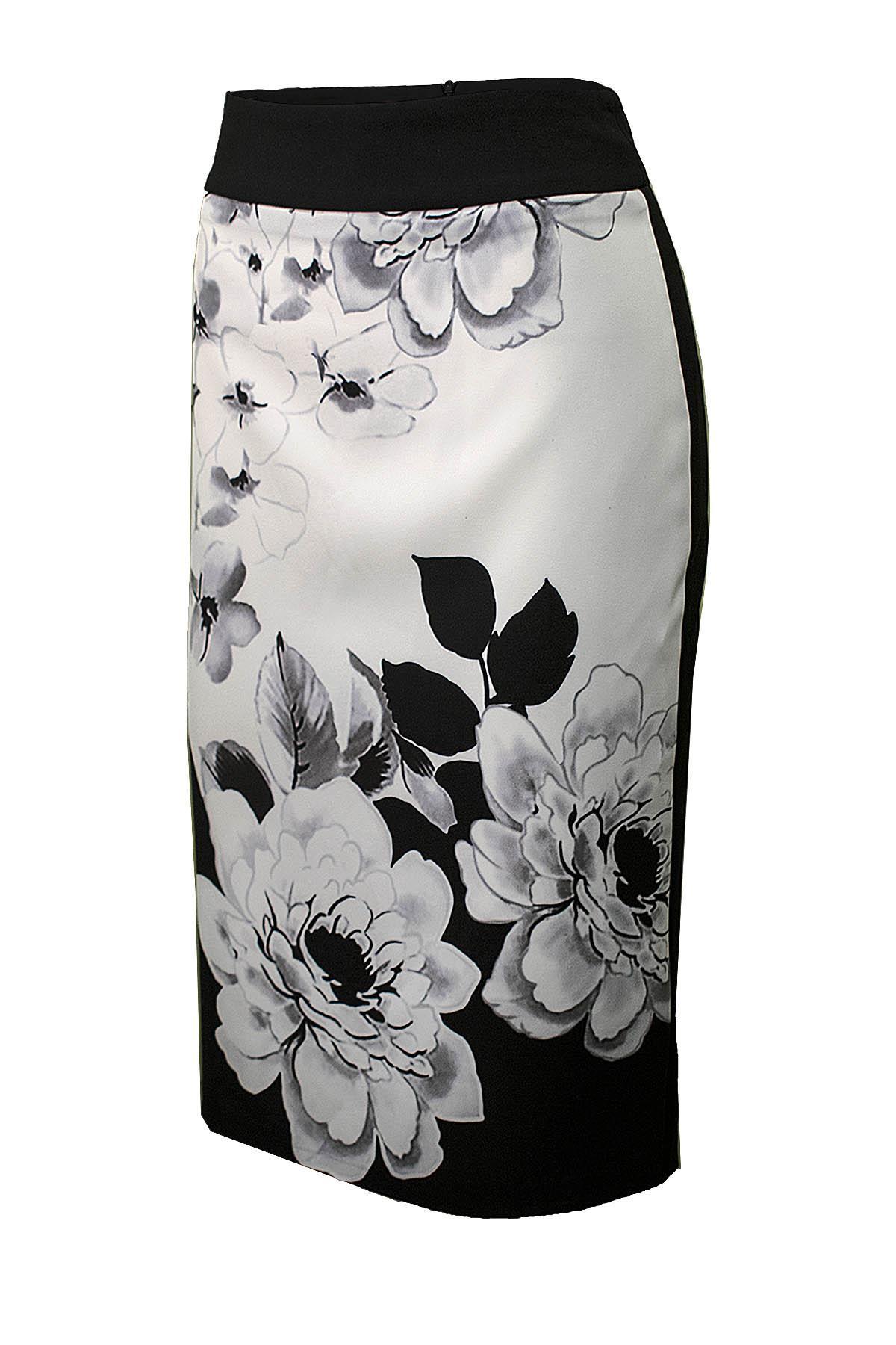 EFFECT Φούστα ελαστική μπροστά με ασπρόμαυρο τύπωμα με μεγάλα λουλούδια, πίσω μονόχρωμη μαύρη. Συνδυάζεται πολύ όμορφα με κόκκινη,κίτρινη ή φούξια μπλούζα.