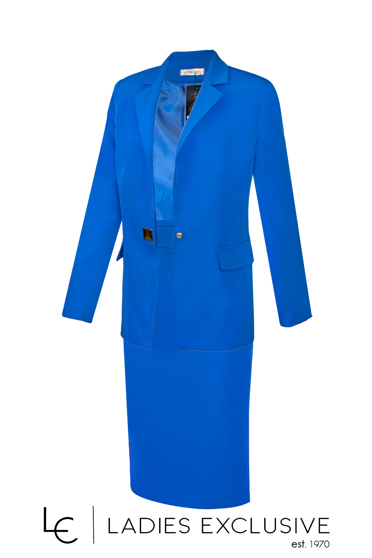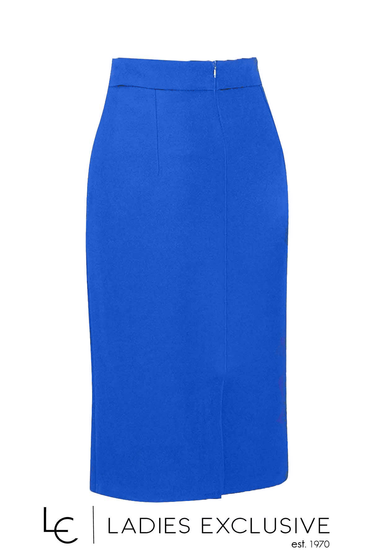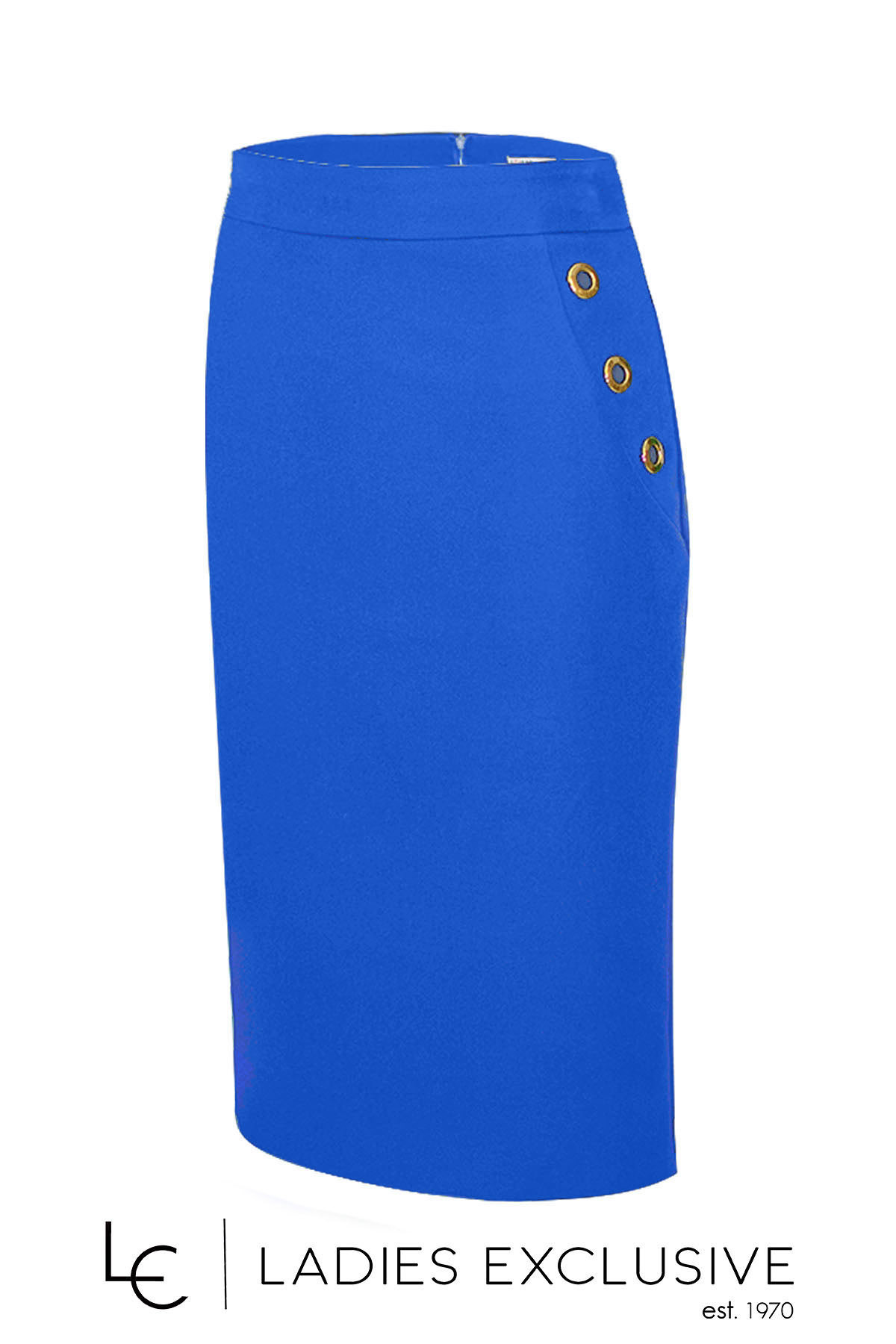 EFFECT Φούστα μπλε ρουά κρεπ σε ίσια γραμμή, με χρυσές λεπτομέρειες στ πλαϊνά.