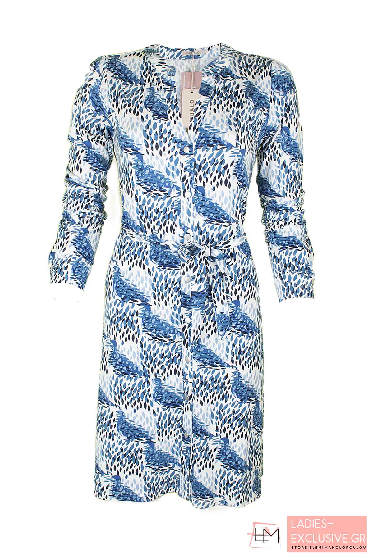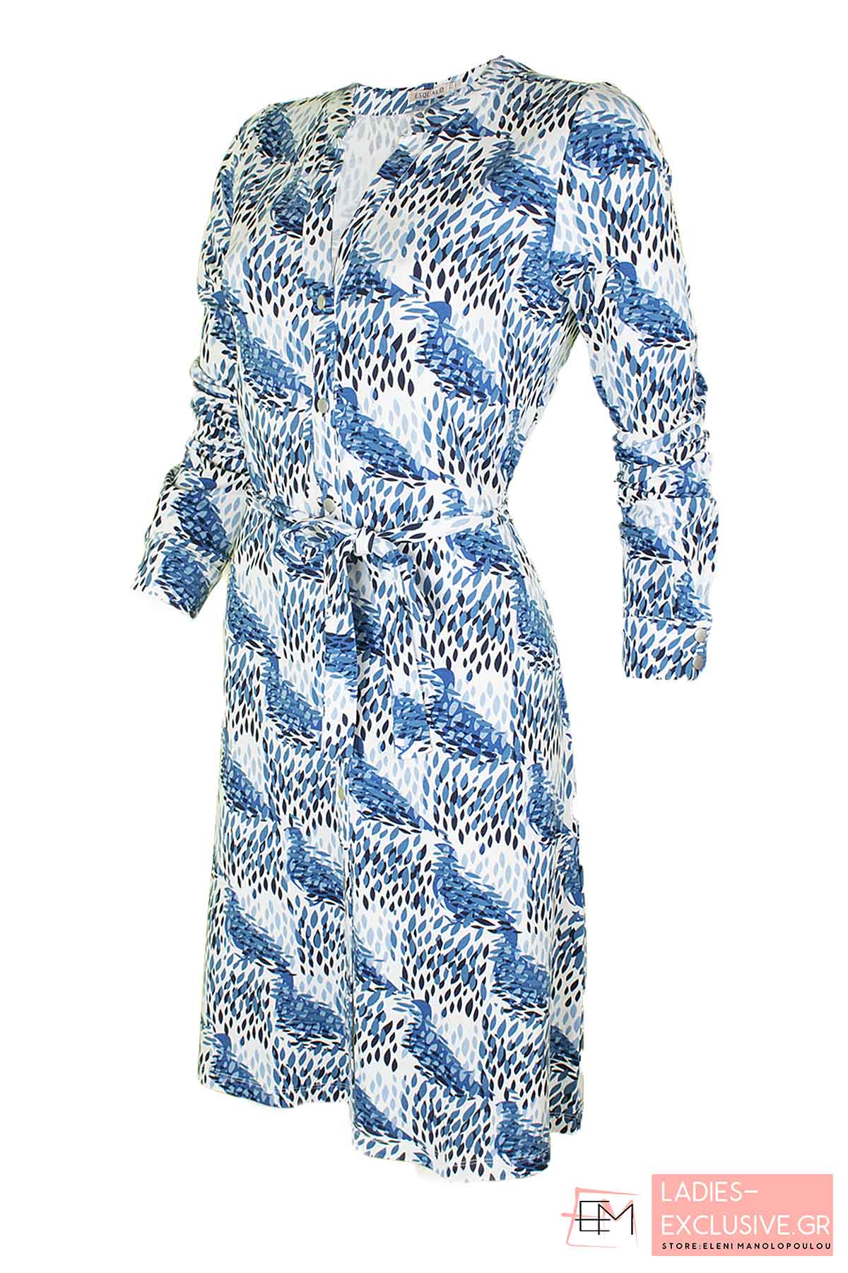 ESQUALO Φόρεμα εμπριμέ σε ανάλαφρη γραμμή με κουμπιά στο μπροστινό μέρος και ζώνη.