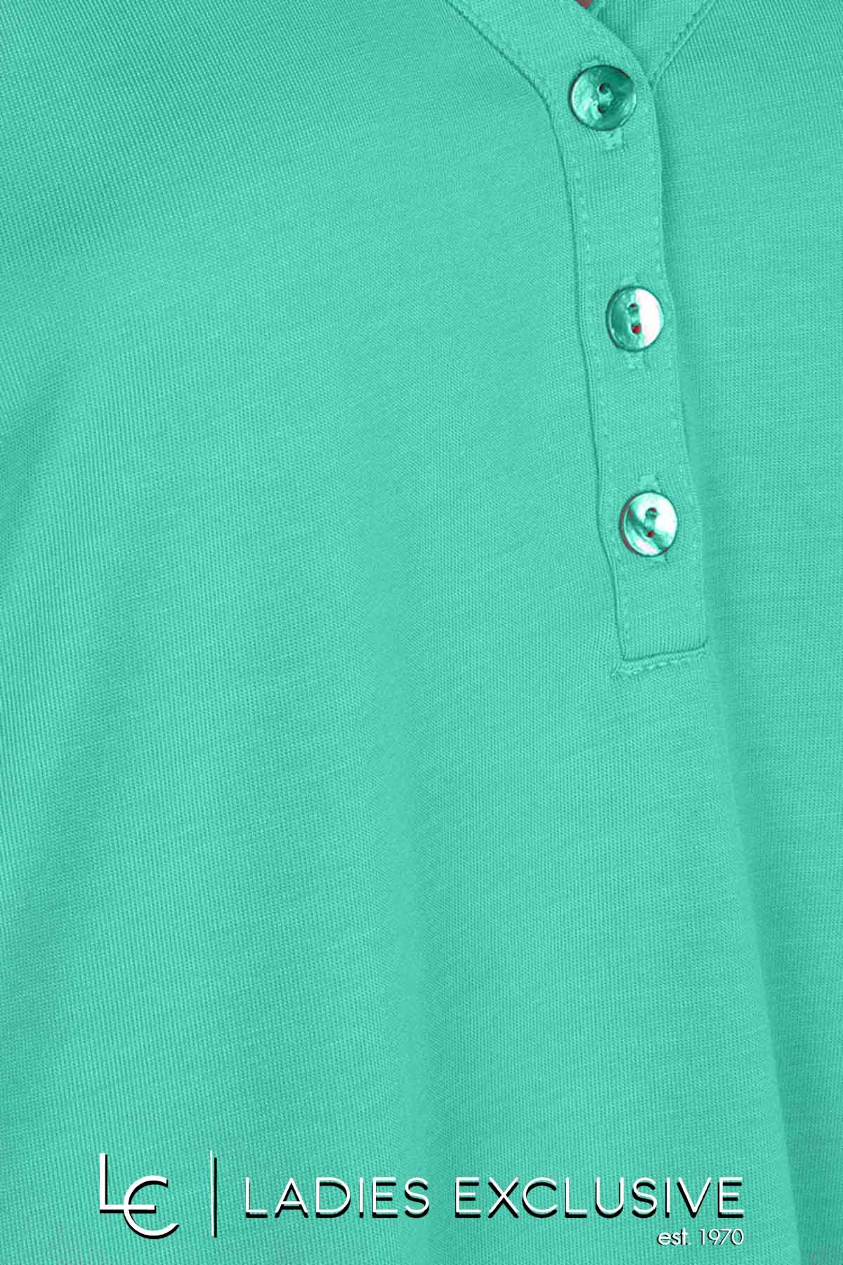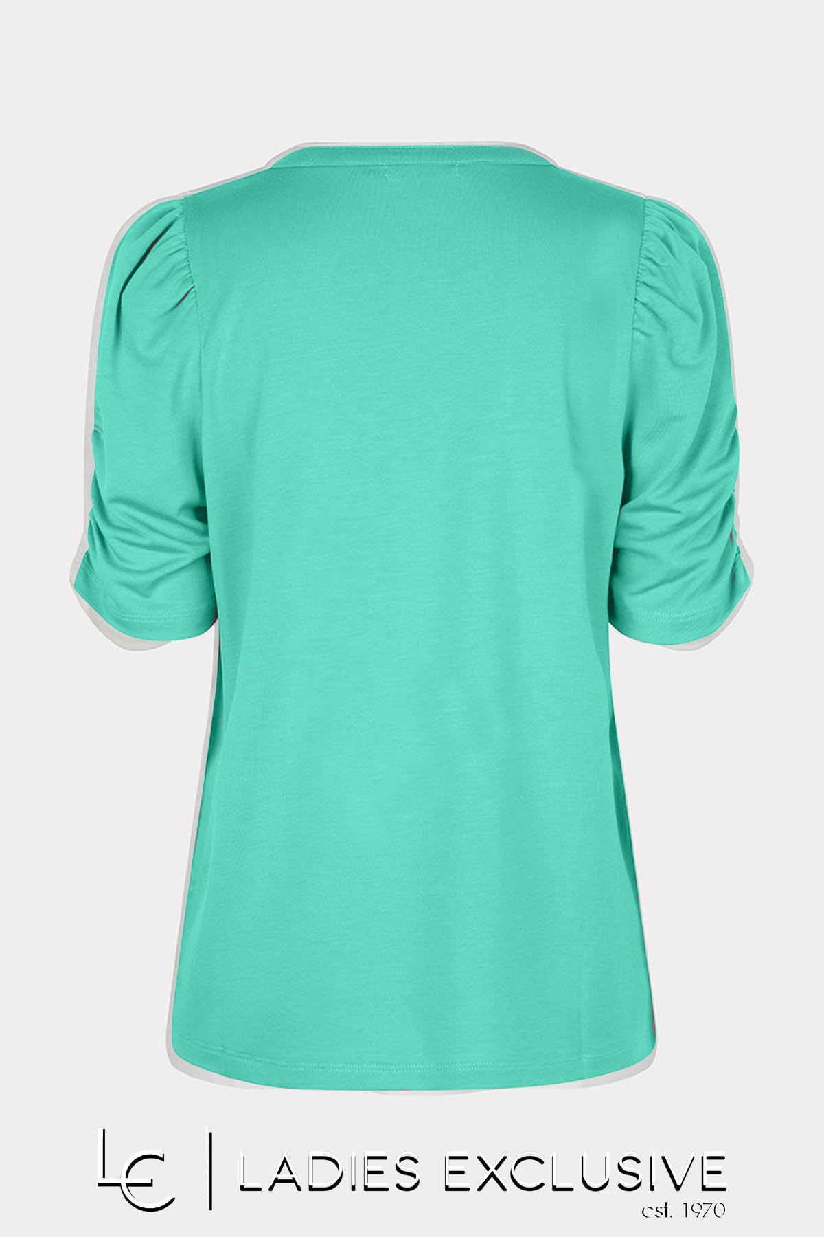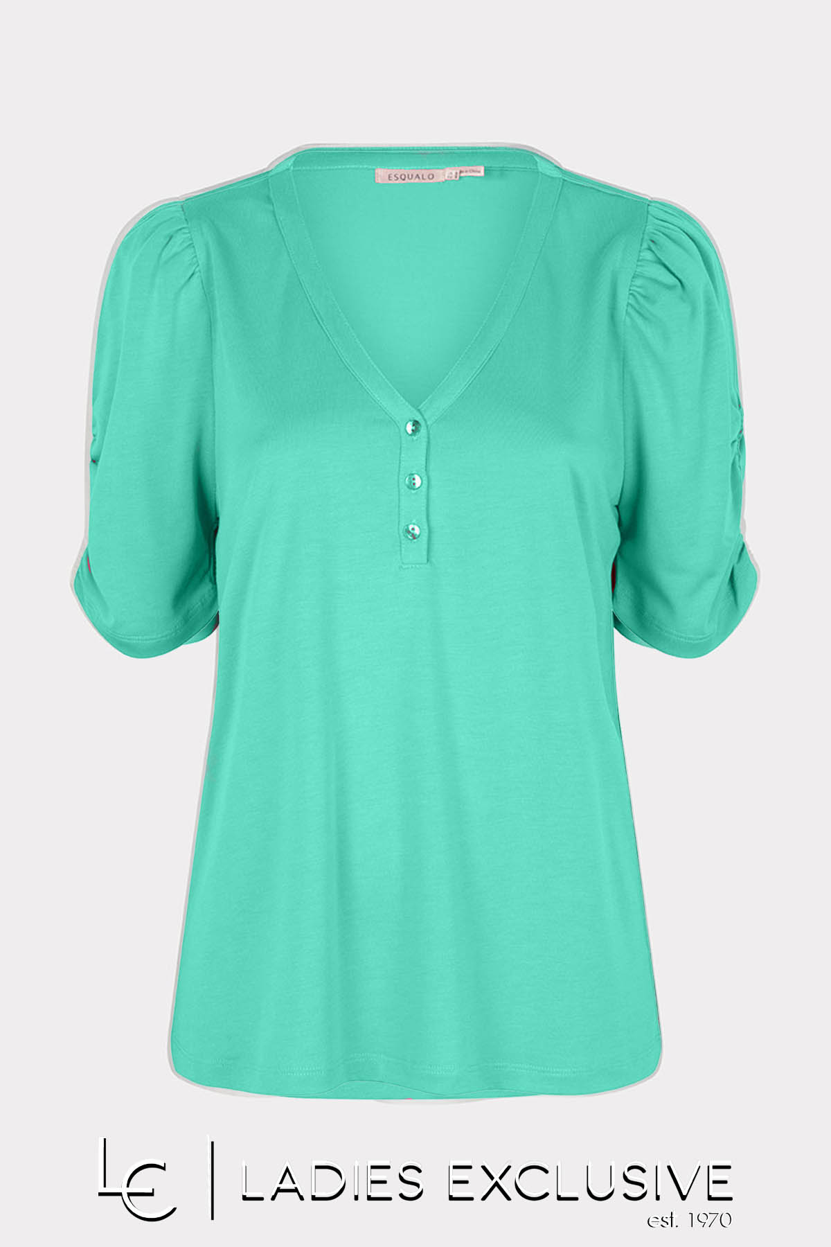 ESQUALO Μπλούζα πράσινη κοντομάνικη με v και κουμπιά. Έχει μανίκι φούσκα που σουρώνει στο τελείωμα.