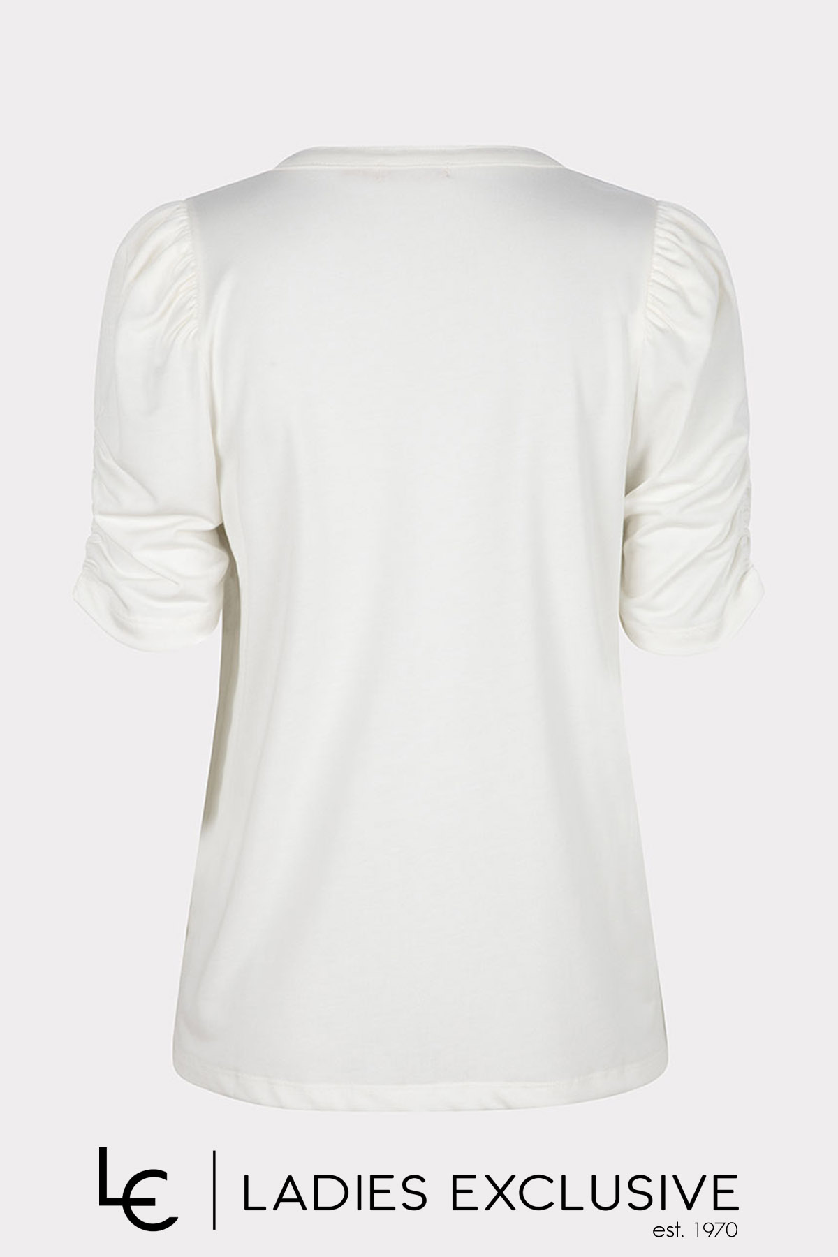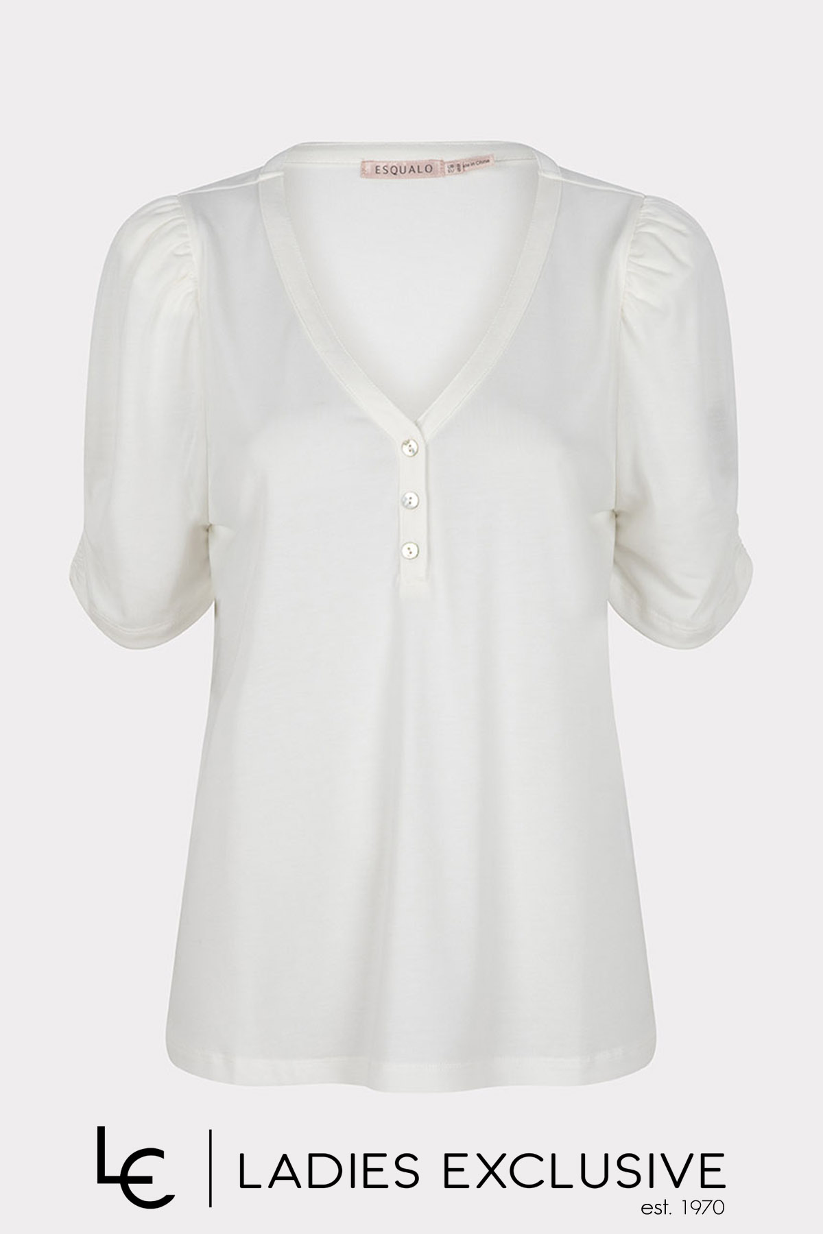 ESQUALO Μπλούζα εκρού κοντομάνικη με v και κουμπιά. Έχει μανίκι φούσκα που σουρώνει στο τελείωμα.