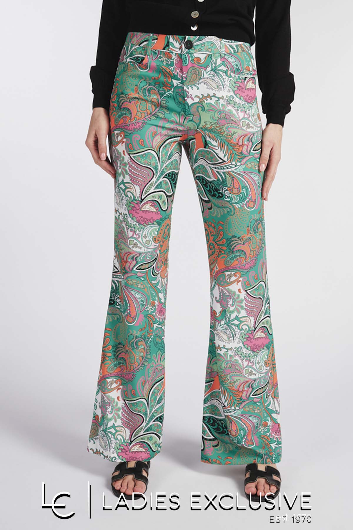 ESQUALO Παντελόνι εμπριμέ καμπάνα με λάστιχο στη μέση.