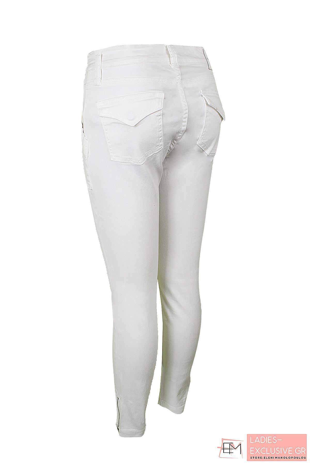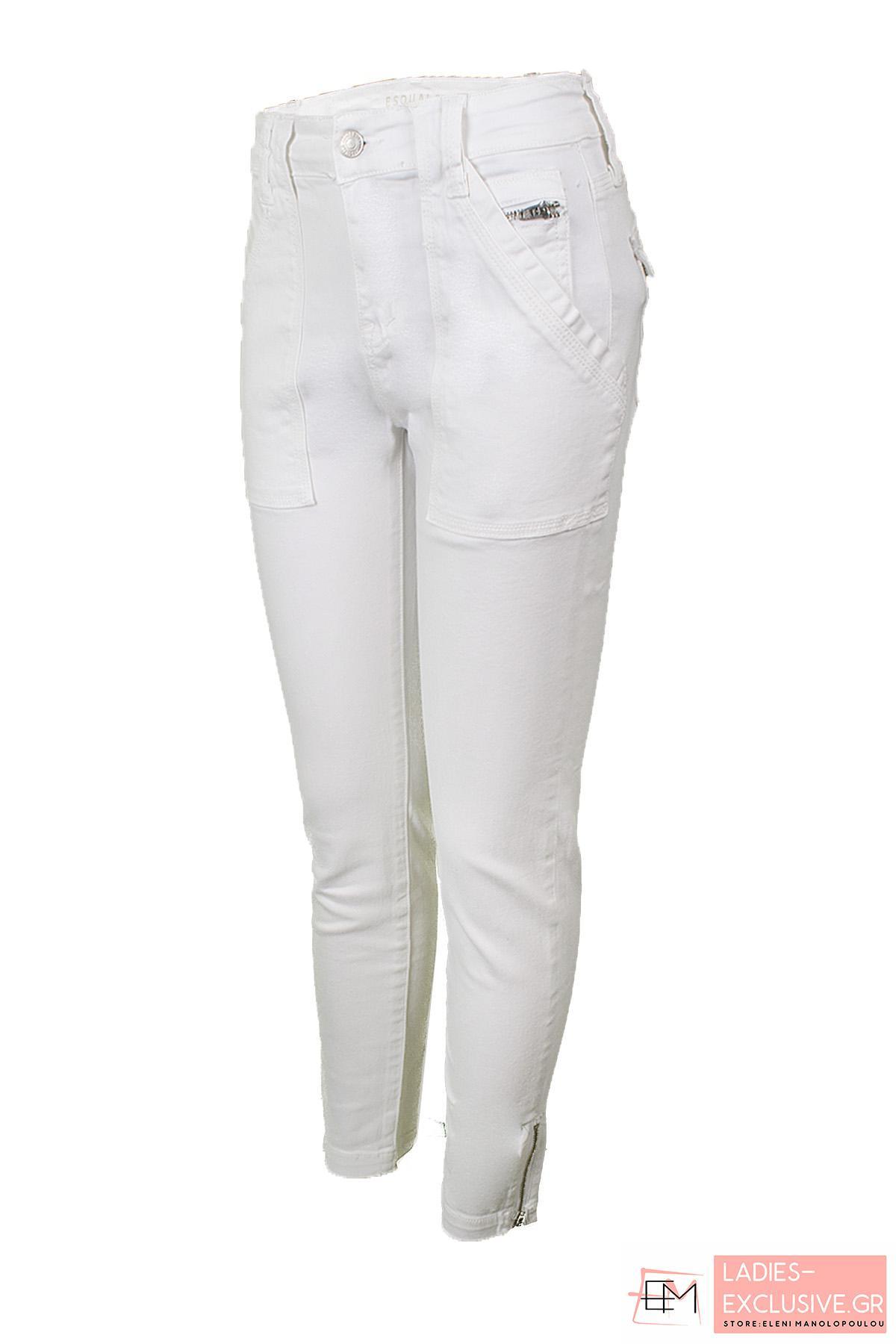 ESQUALO Παντελόνι τζην λευκό με φερμουάρ στον αστράγαλο.