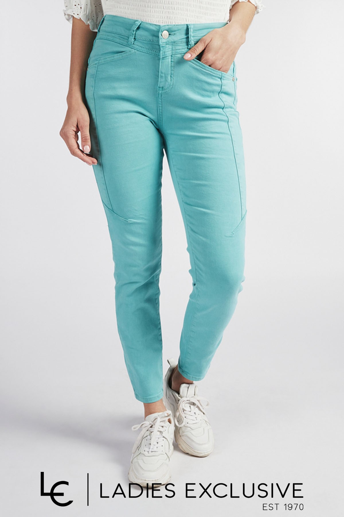 ESQUALO Παντελόνι τζην τιρκουάζ αστραγάλου με μεγάλες εξωτερικές τσέπες.