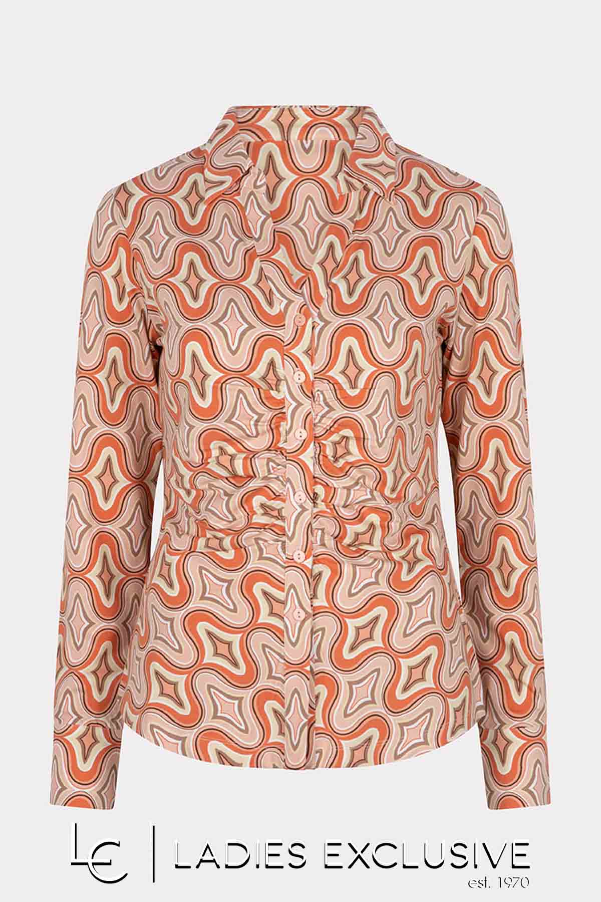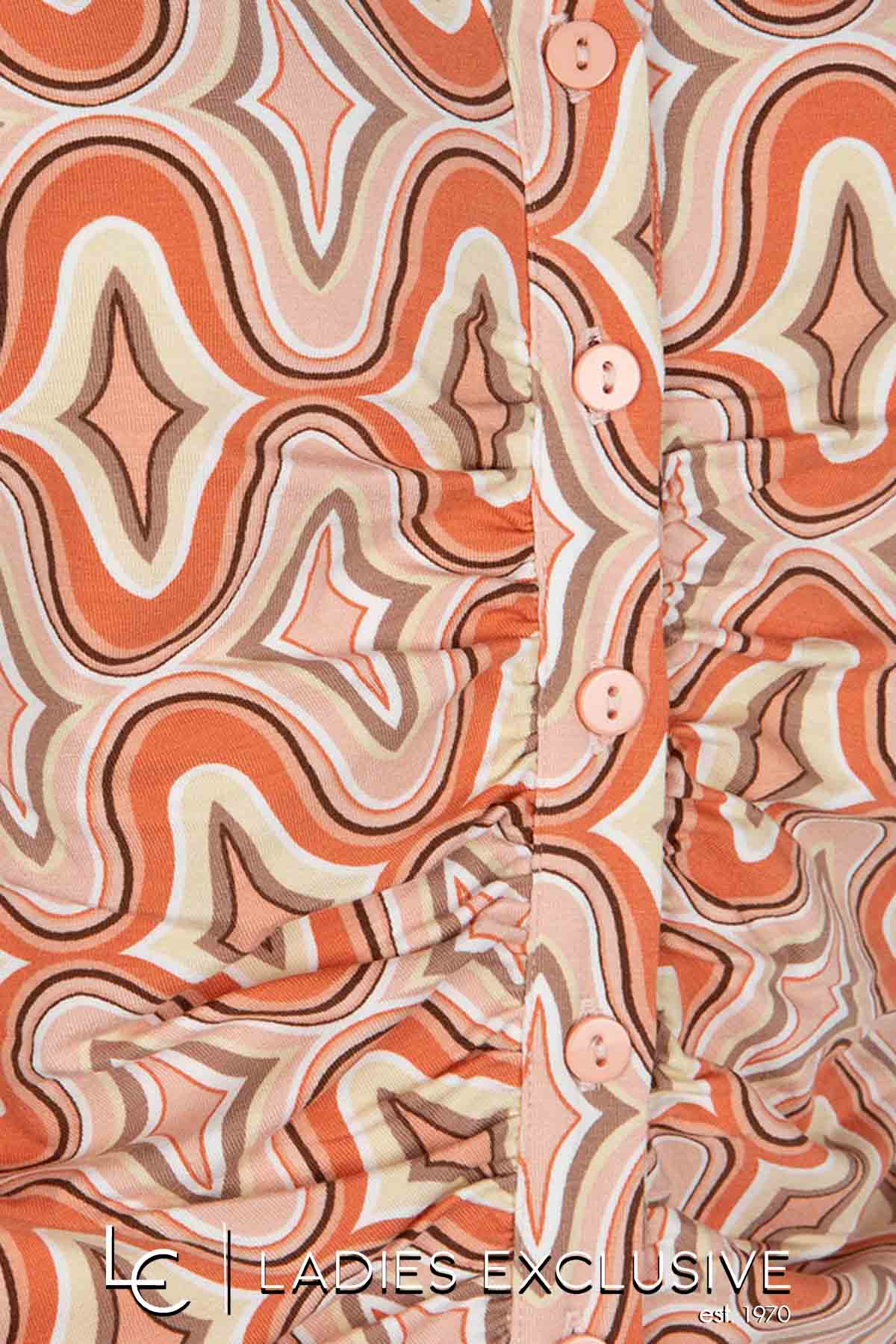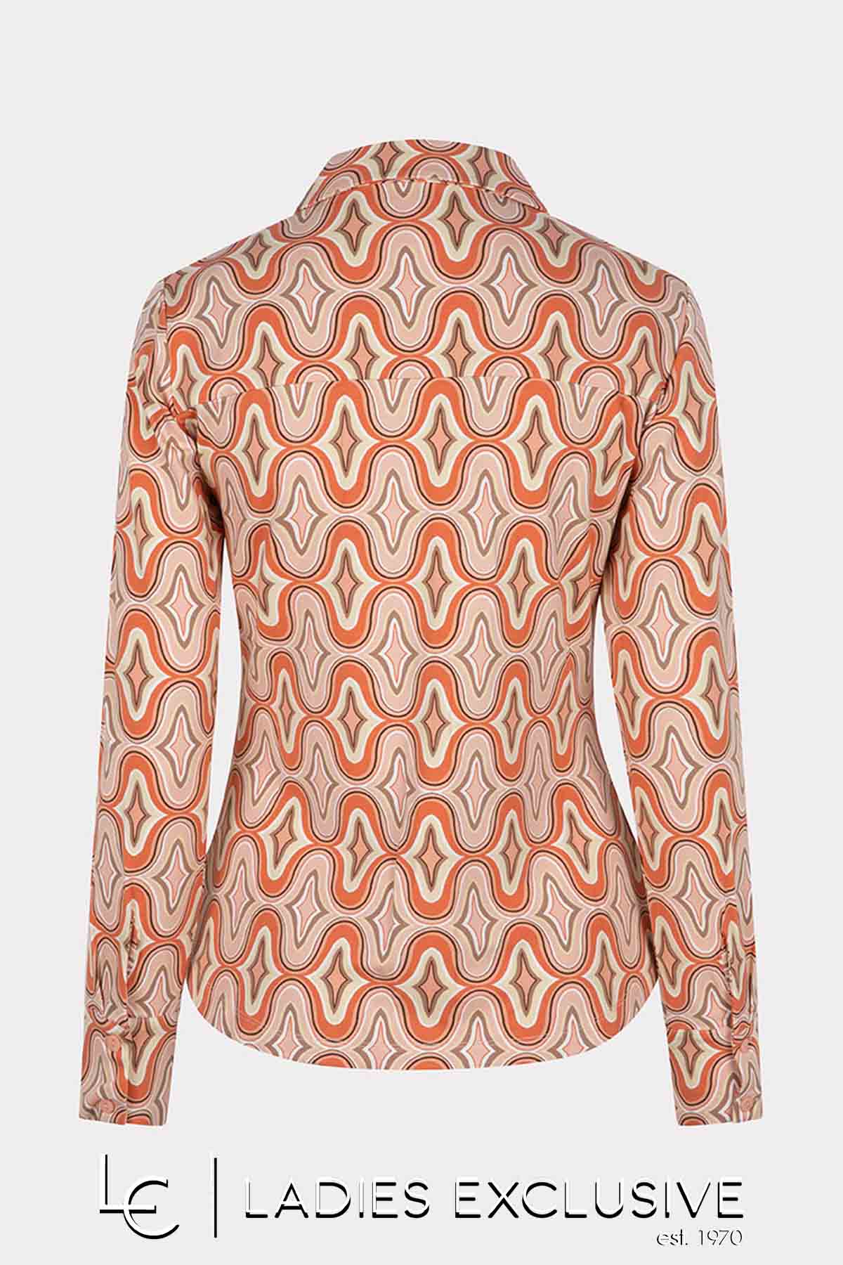 ESTEL Πουκάμισο πετρόλ με ταμπά γεωμετρικά σε άνετη γραμμή. Στο πίσω μέρος είναι πιο μακρύ.
