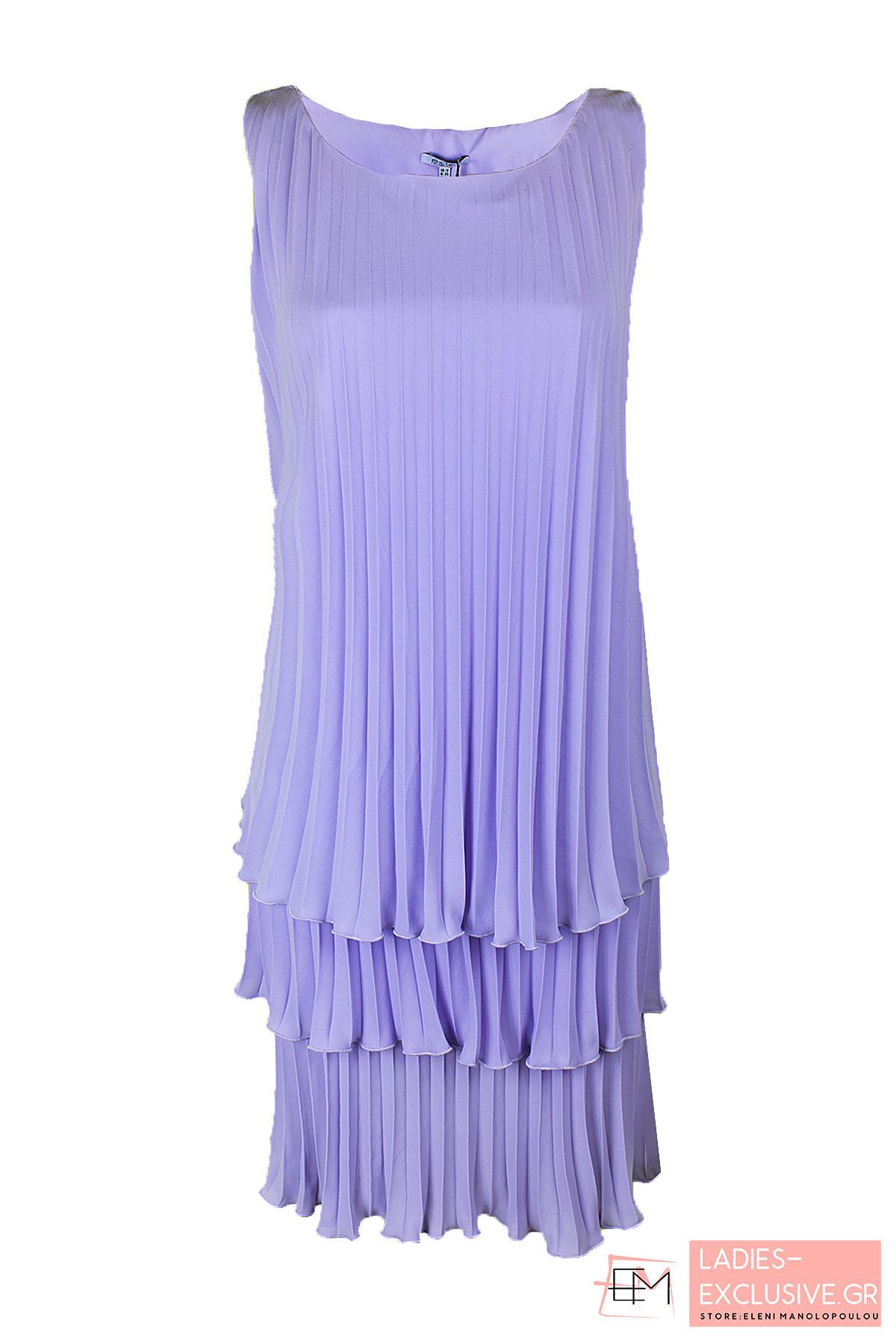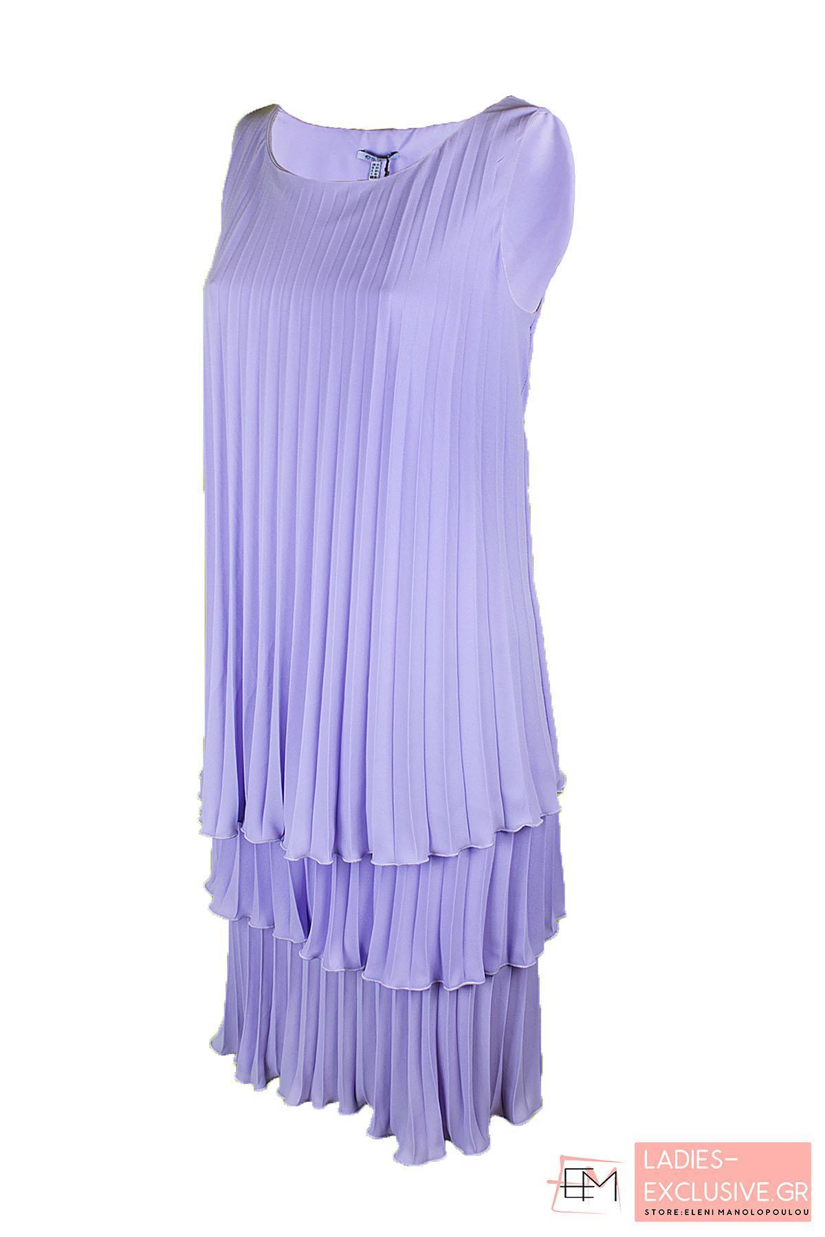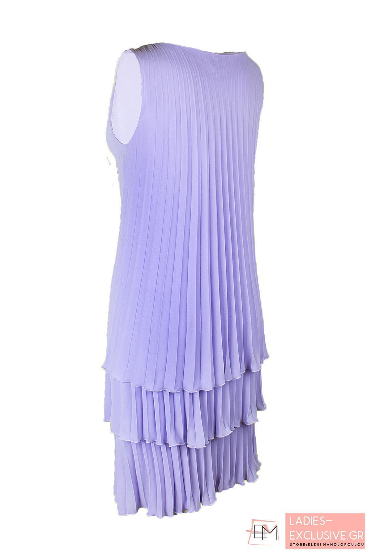 ESTEL Φόρεμα λιλά αμάνικο με τρία φύλλα πλισέ μέχρι το γόνατο.
