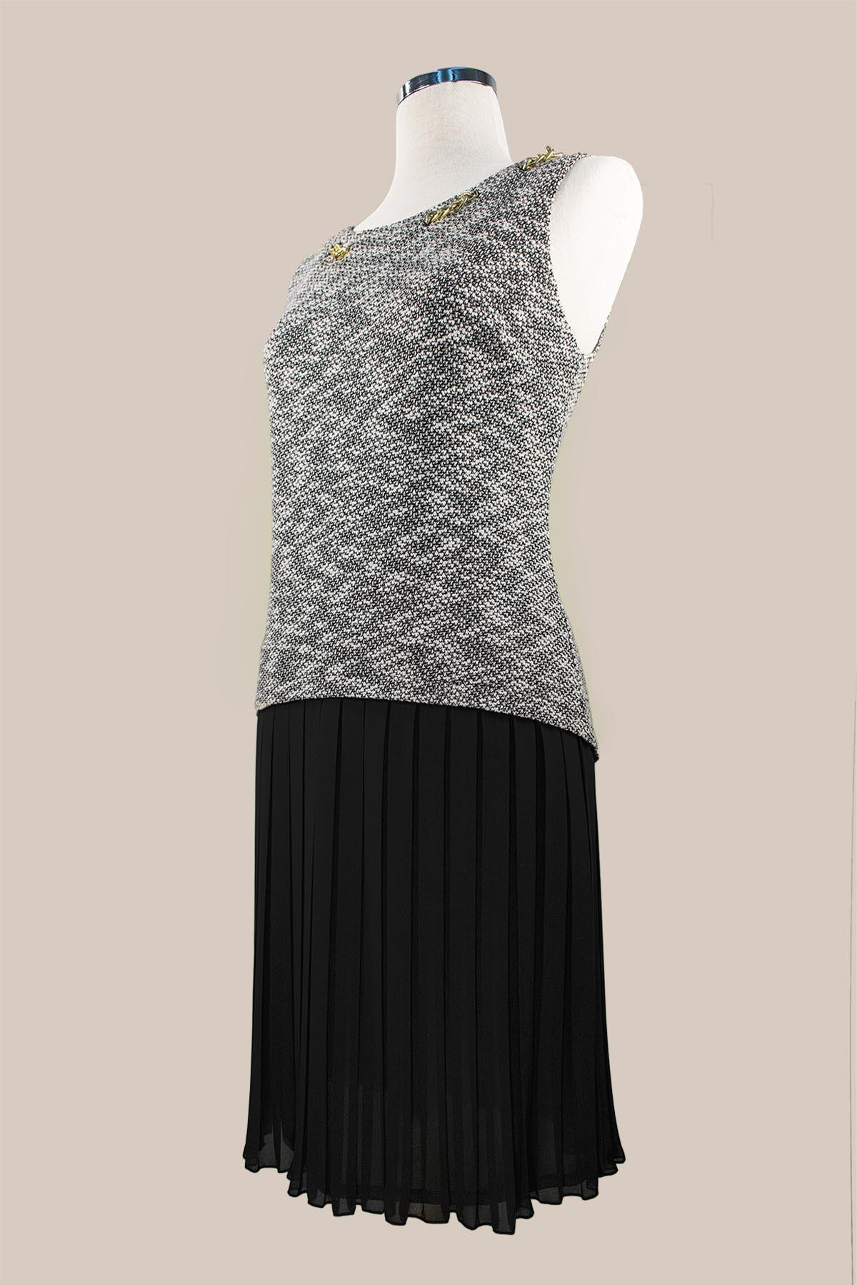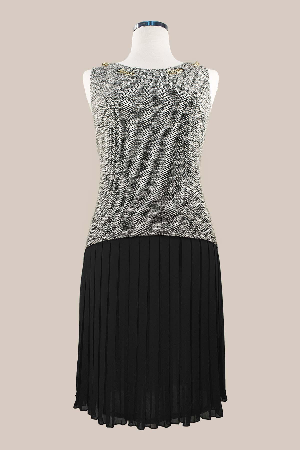 ESTEL Φόρεμα αμάνικο που δίνει την εντύπωση ότι είναι δυο κομμάτια. Το πάνω μέρος είναι ριχτό. Εσωτερικά έχει δεύτερο ύφασμα που καταλήγει σε πλισέ φούστα
