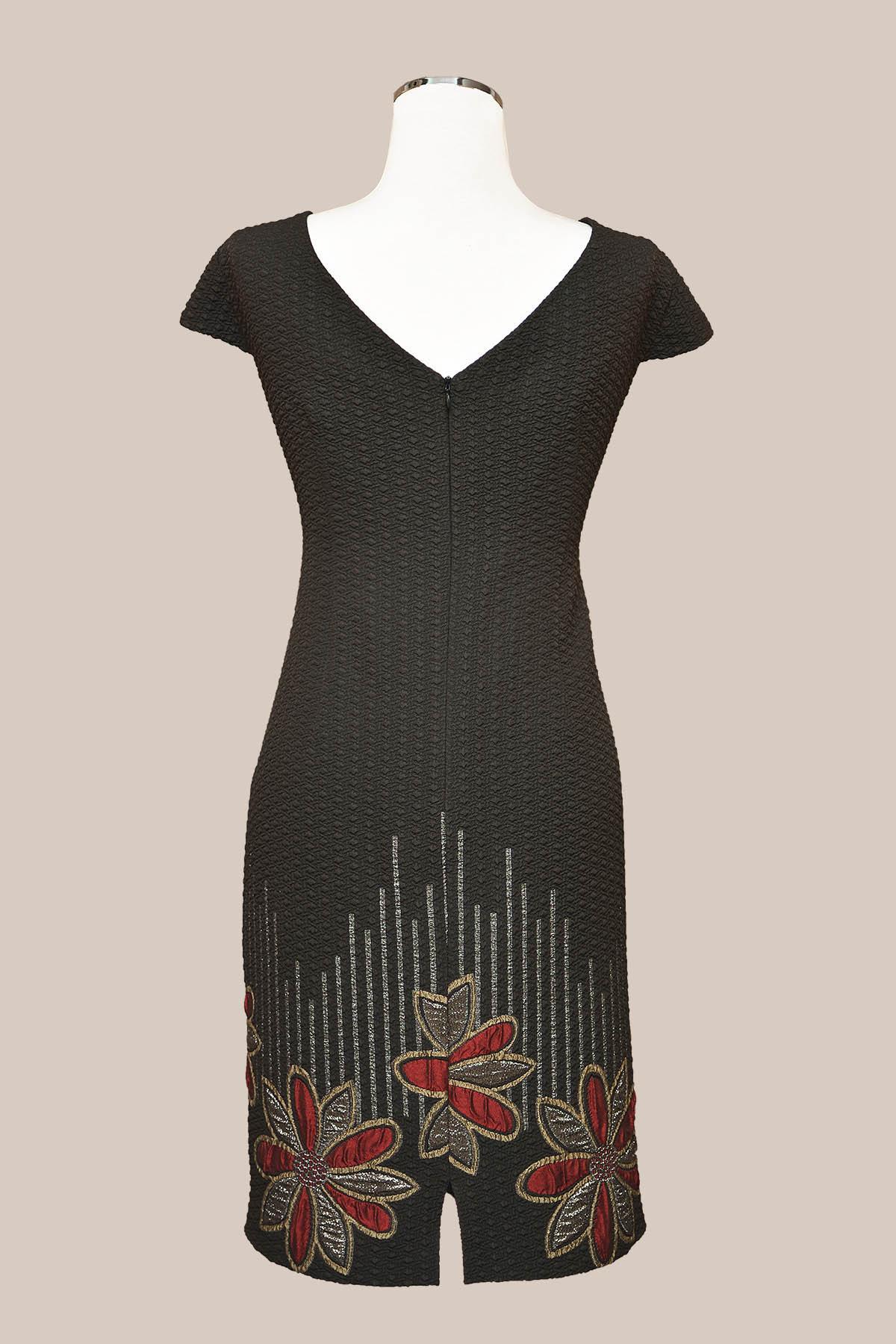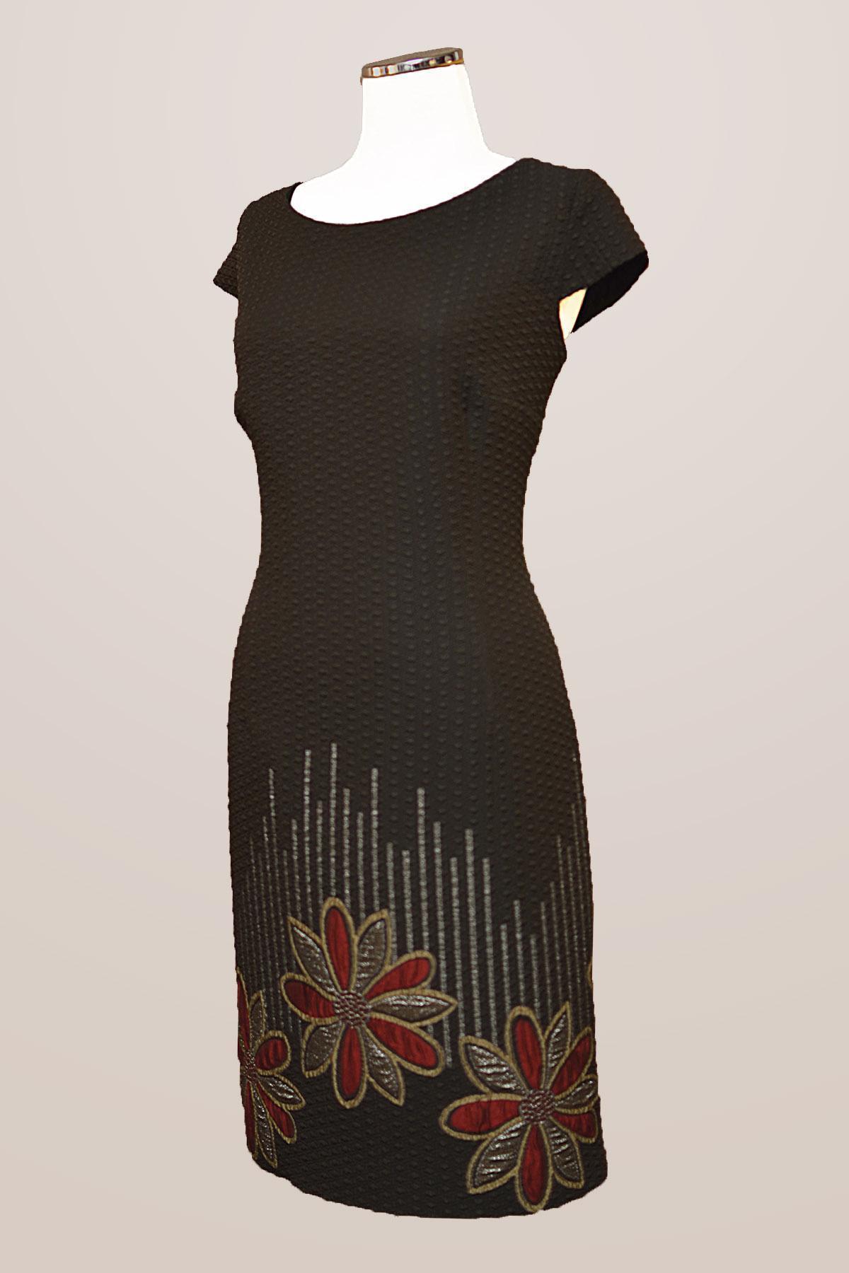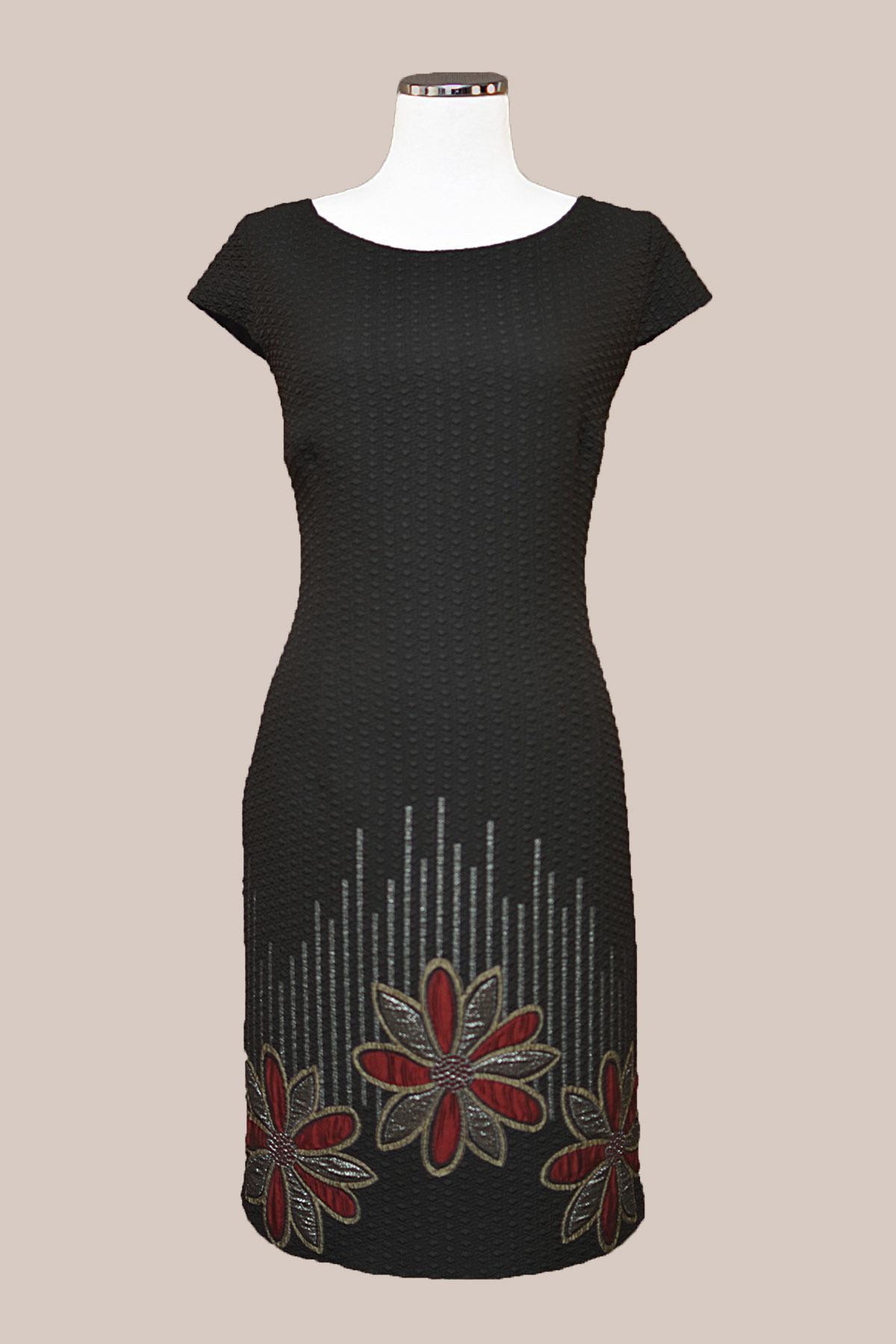 ESTEL Φόρεμα ανάγλυφο σε ίσια γραμμή με πλατιά λαιμόκοψη και μικρό μανίκι που σκεπάζει τον ώμο. Στο κάτω μέρος έχει ανάγλυφα λουλούδια.