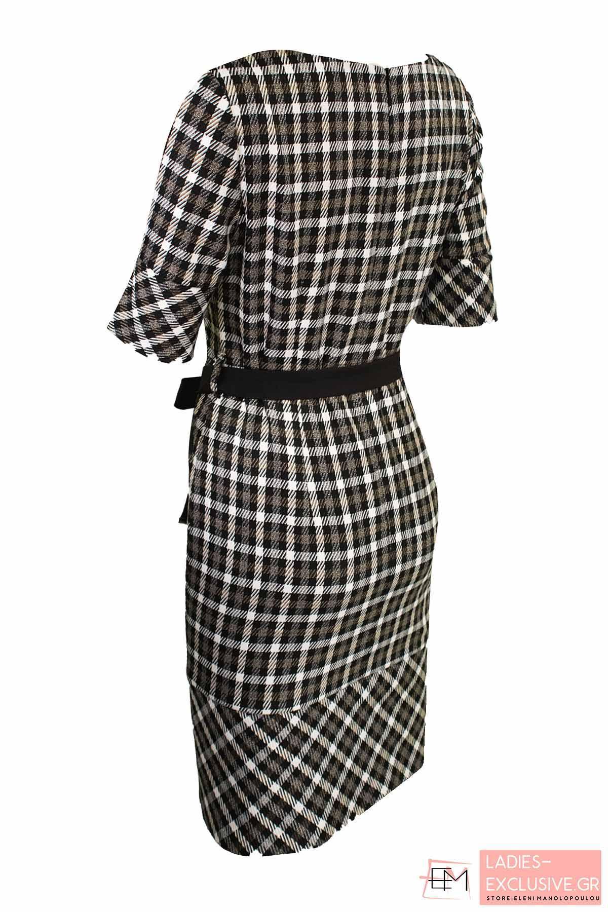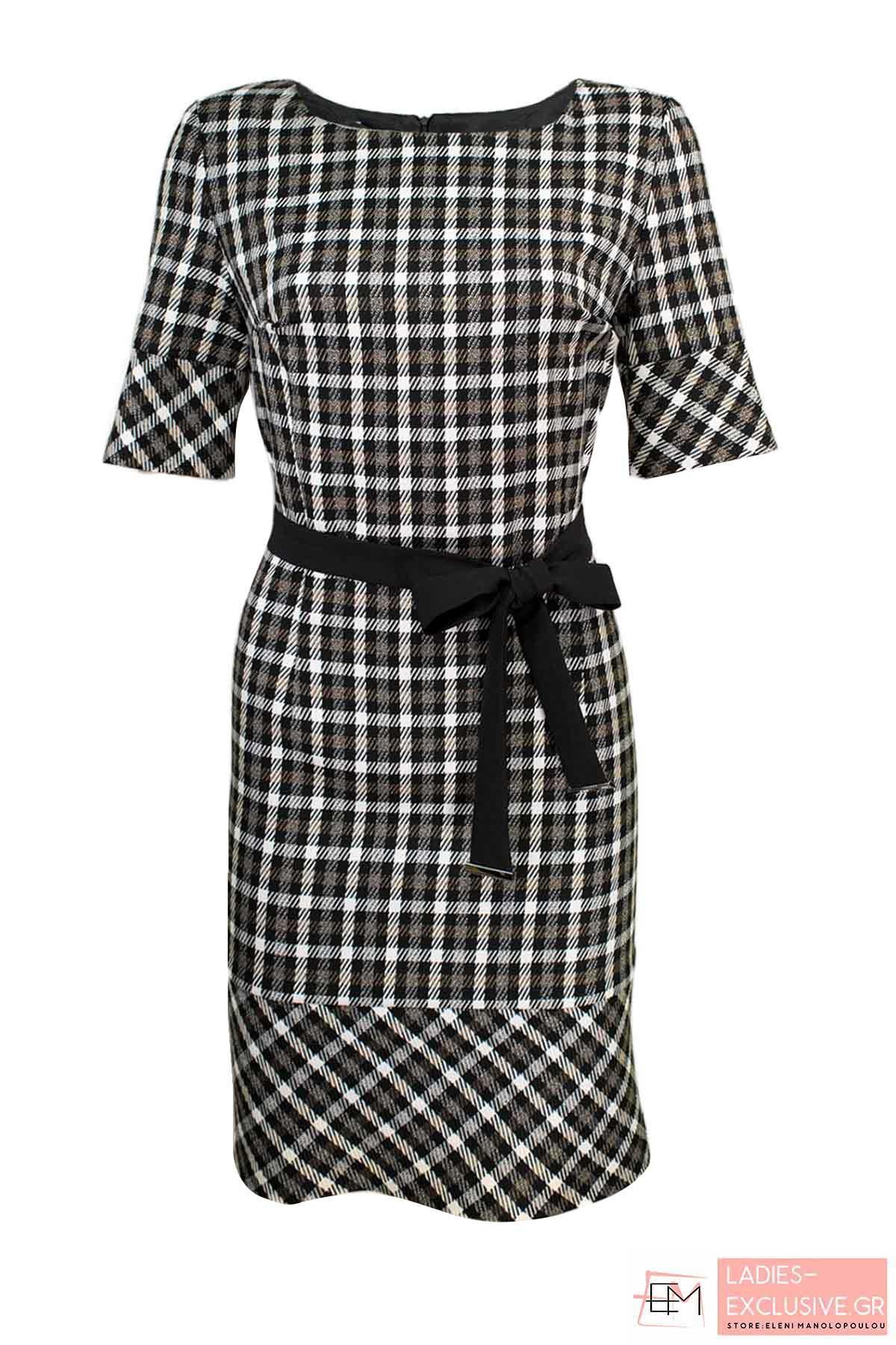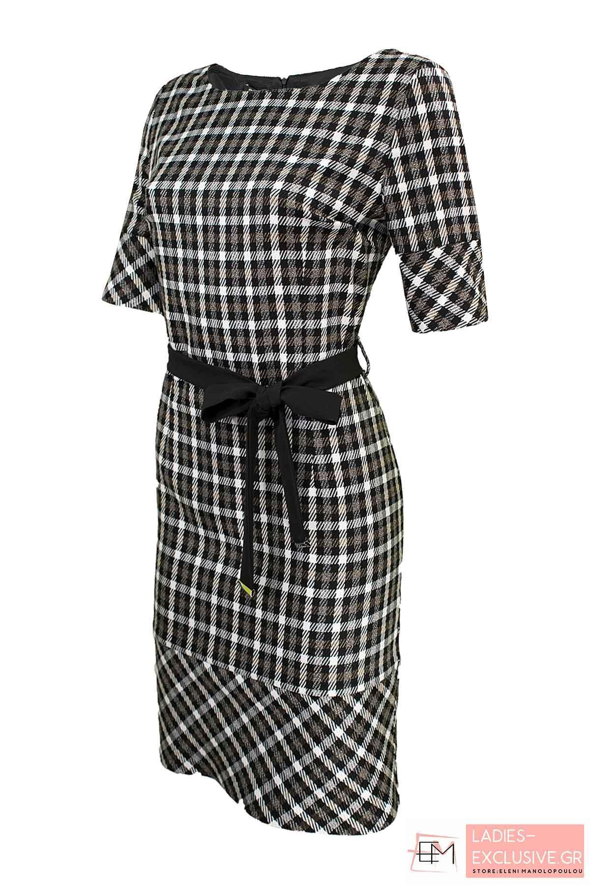 ESTEL Φόρεμα καρώ ασπρόμαυρο με 1/2 μανίκι και πλατιά λαιμόκοψη. Έχει ζωνάκι που αναδεικνύει τη μέση και το κάνει πιο κομψό.