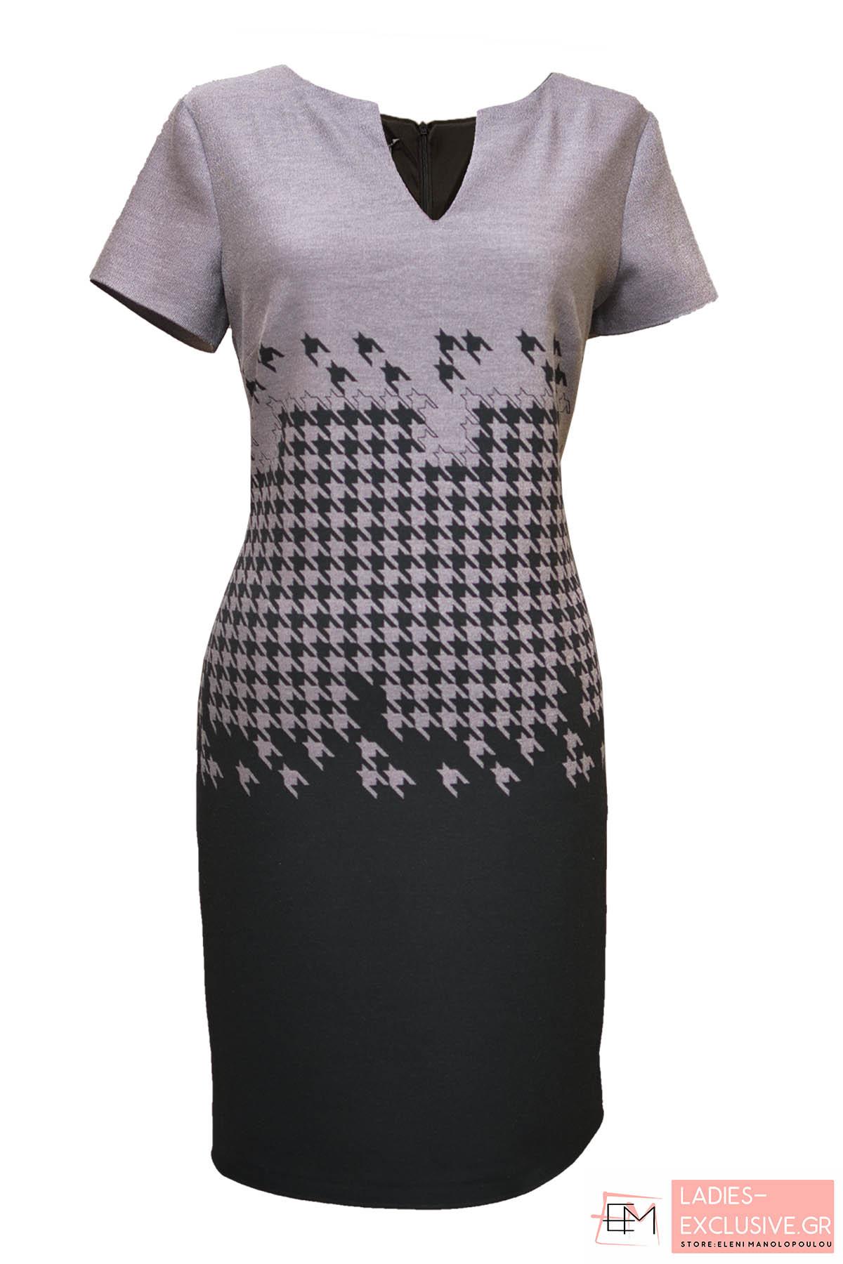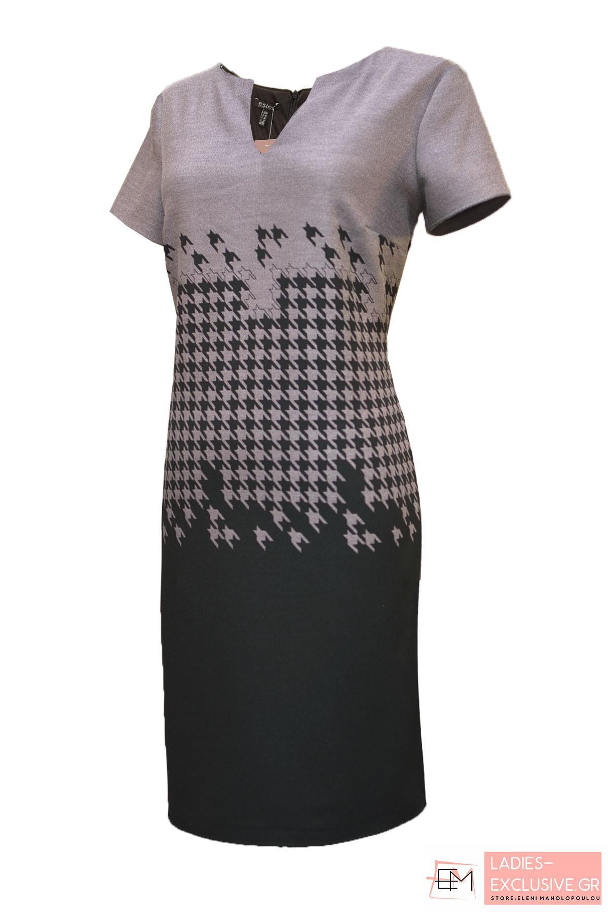 ESTEL Φόρεμα μέχρι το γόνατο, μεσάτο, κοντομάνικο με ιδιαίτερη λαιμόκοψη.