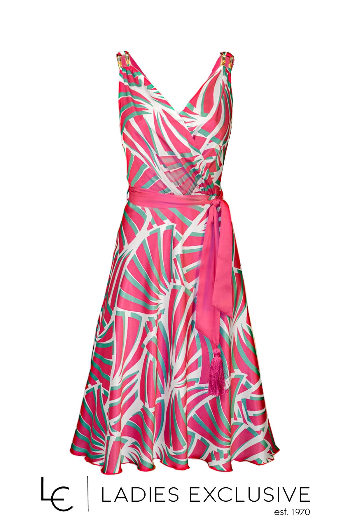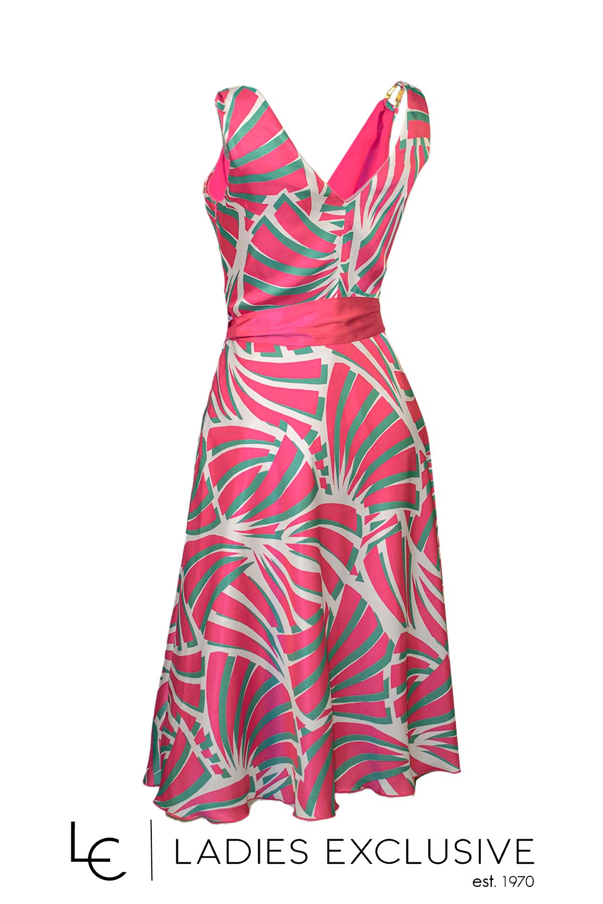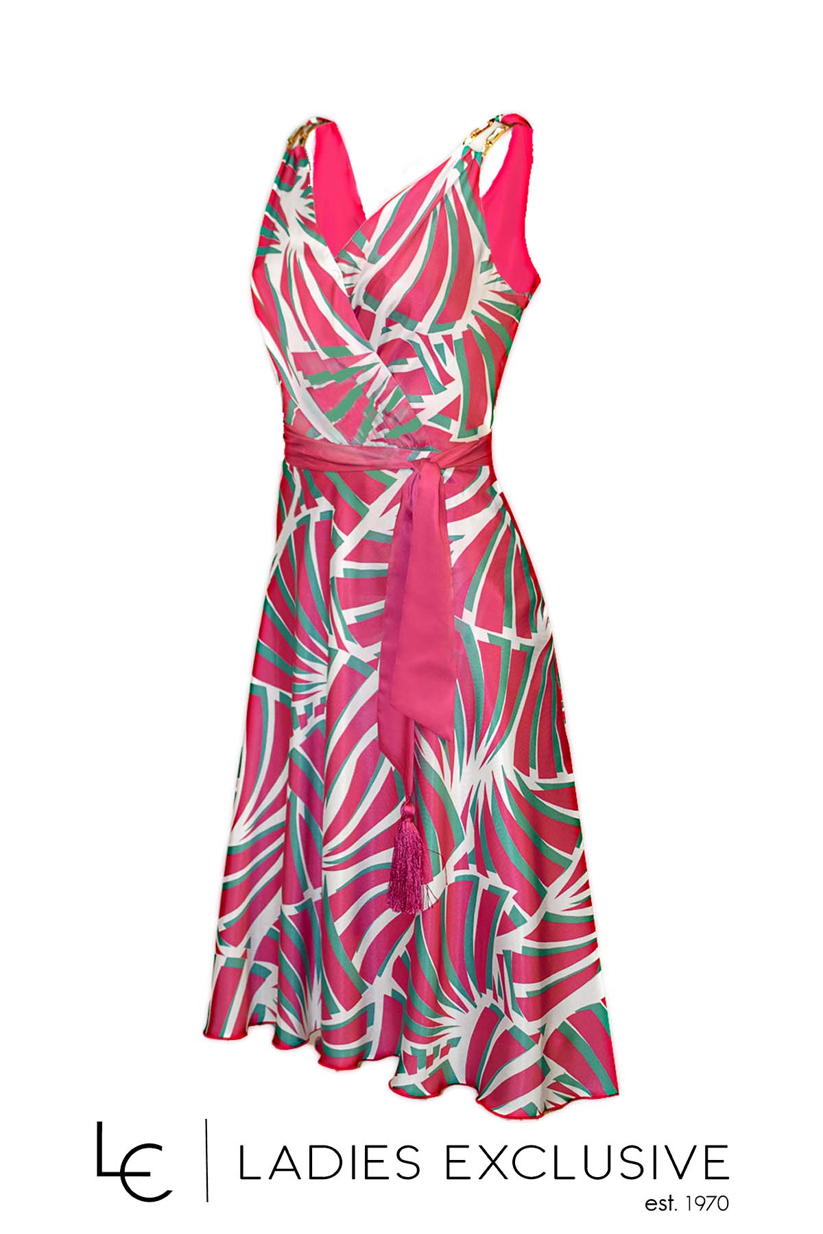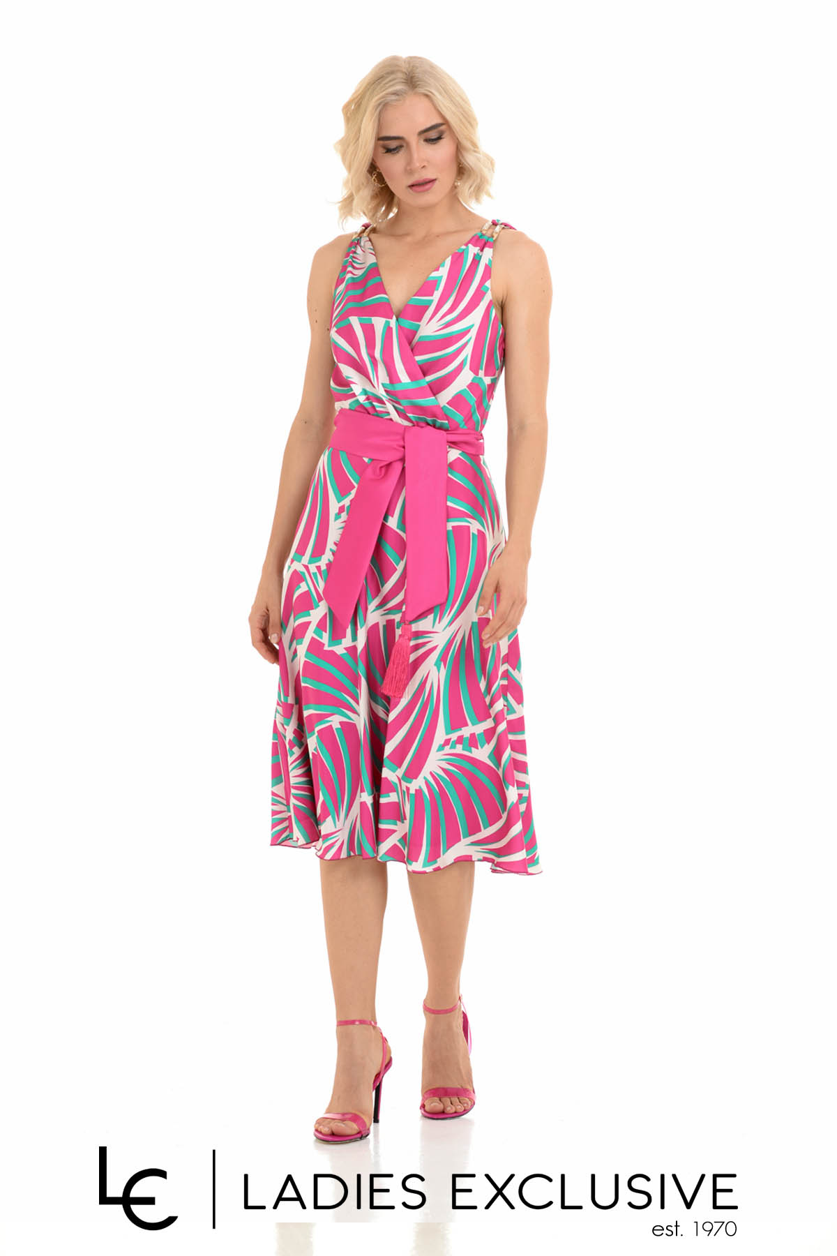 ESTEL Φόρεμα εμπριμέ κρουαζέ κλος με λεπτή ράντα και ζώνη από το ίδιο ύφασμα.