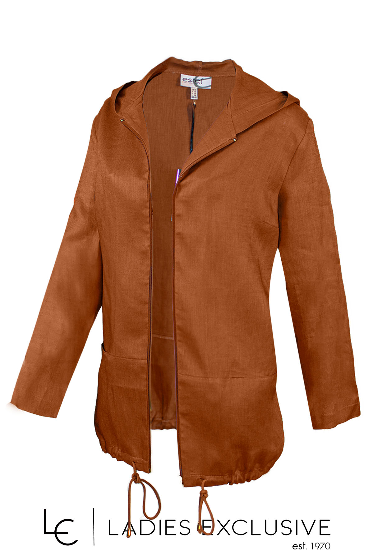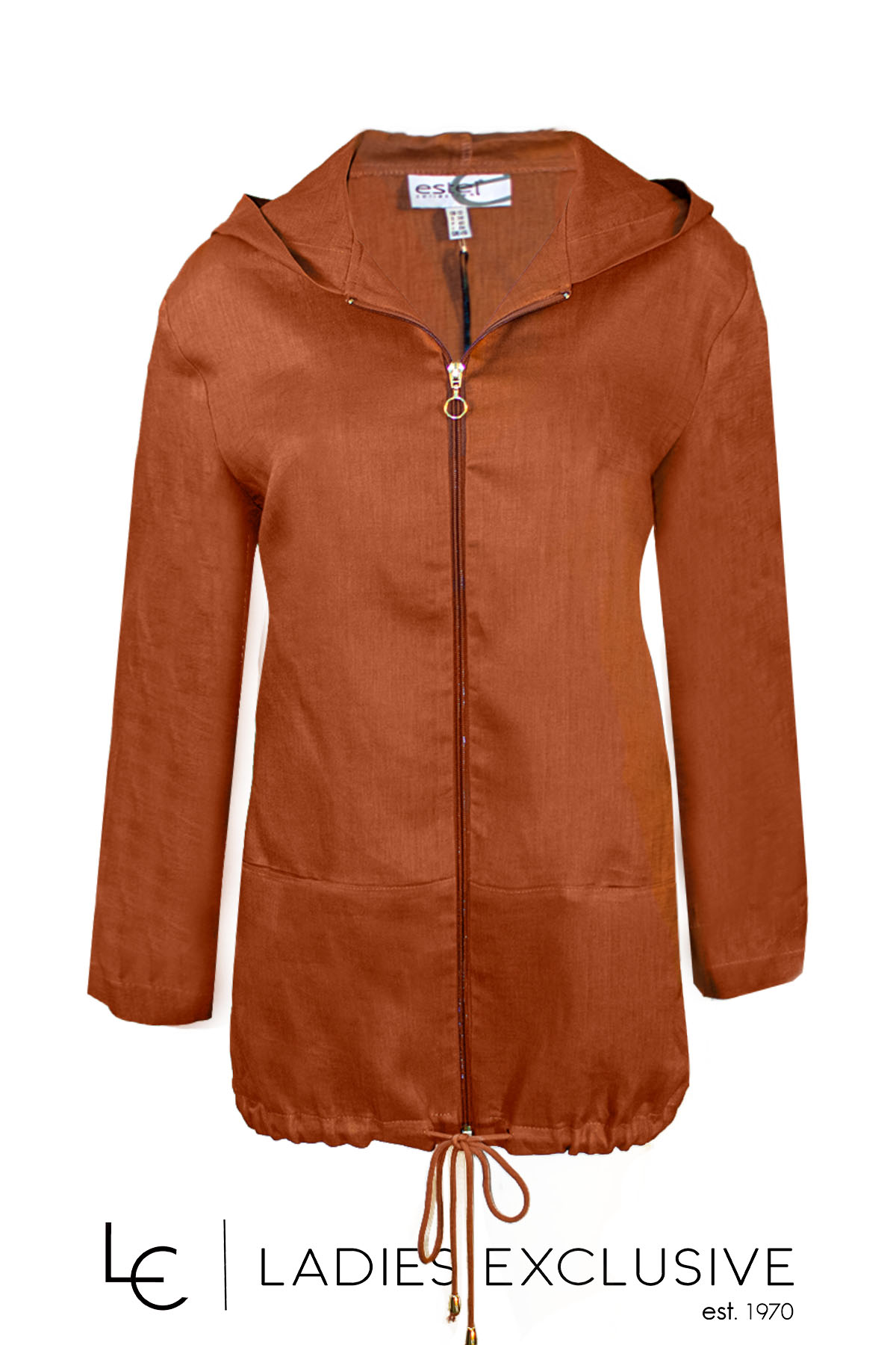 ESTEL Μπουφάν καφέ λινό με κουκούλα