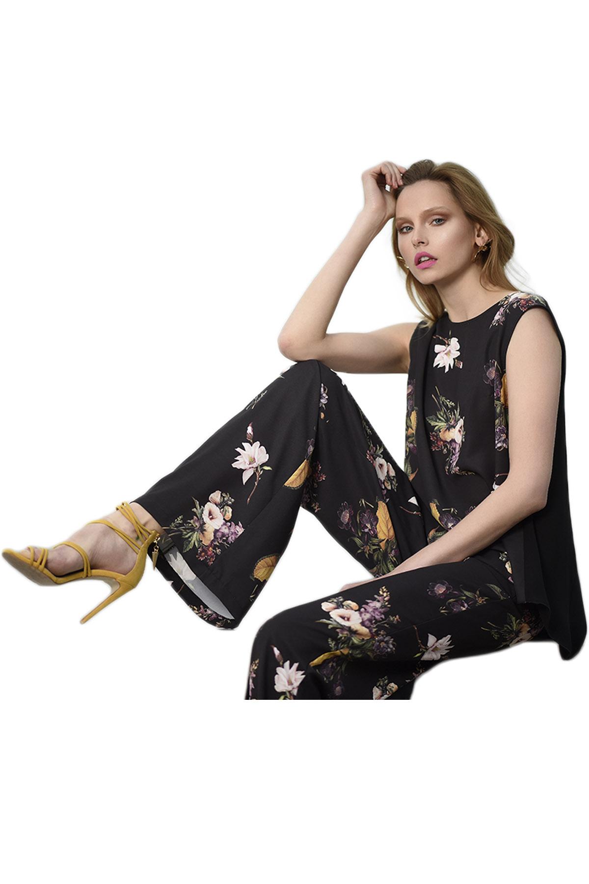ESTEL Παντελόνα ψηλόμεση φλοράλ σε φαρδιά γραμμή.