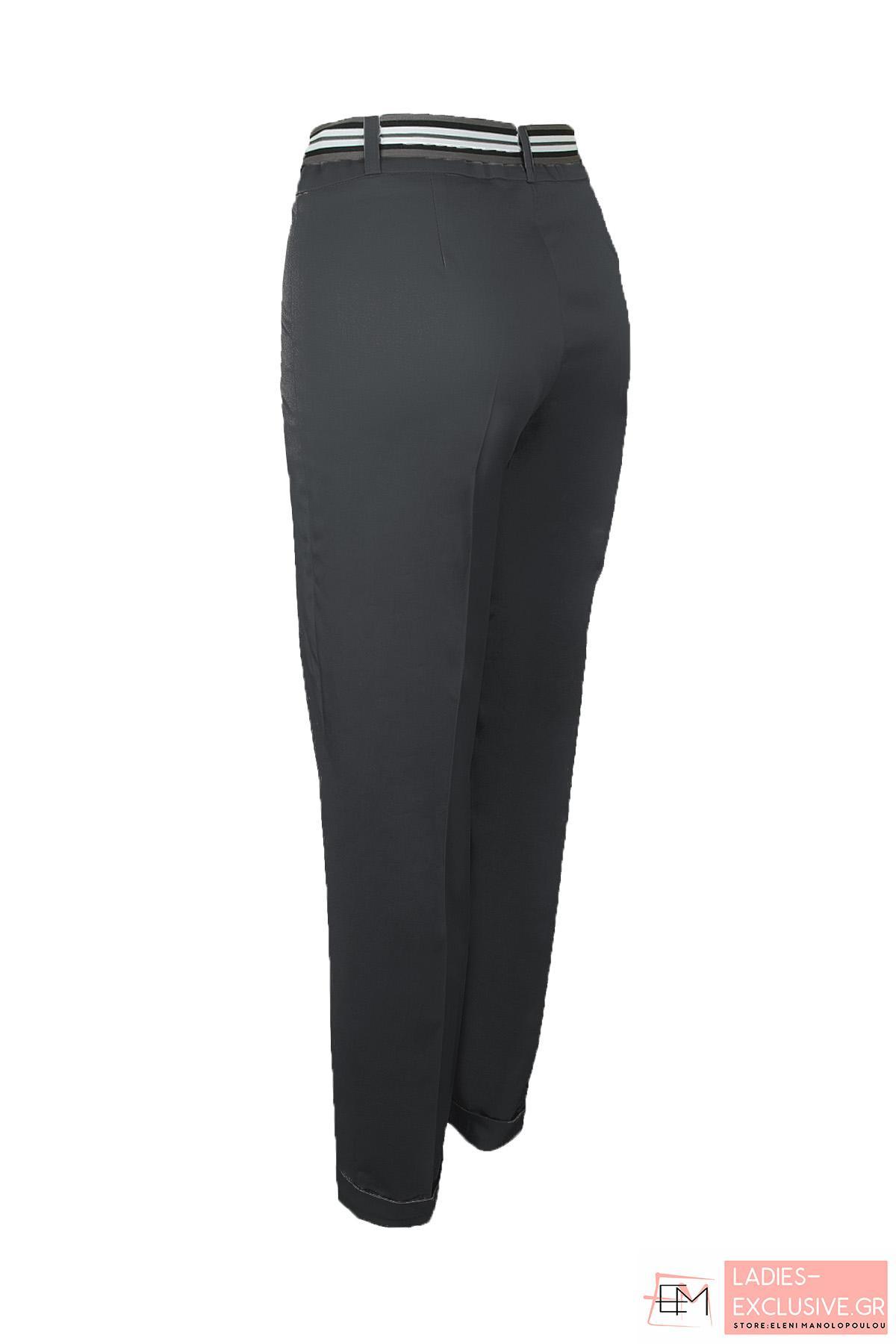 ESTEL Παντελόνι μαύρο αστραγάλου με ρεβέρ σε ίσια γραμμή με ζώνη ριγέ ελαστική.