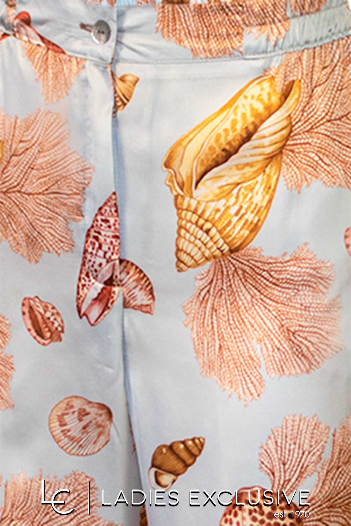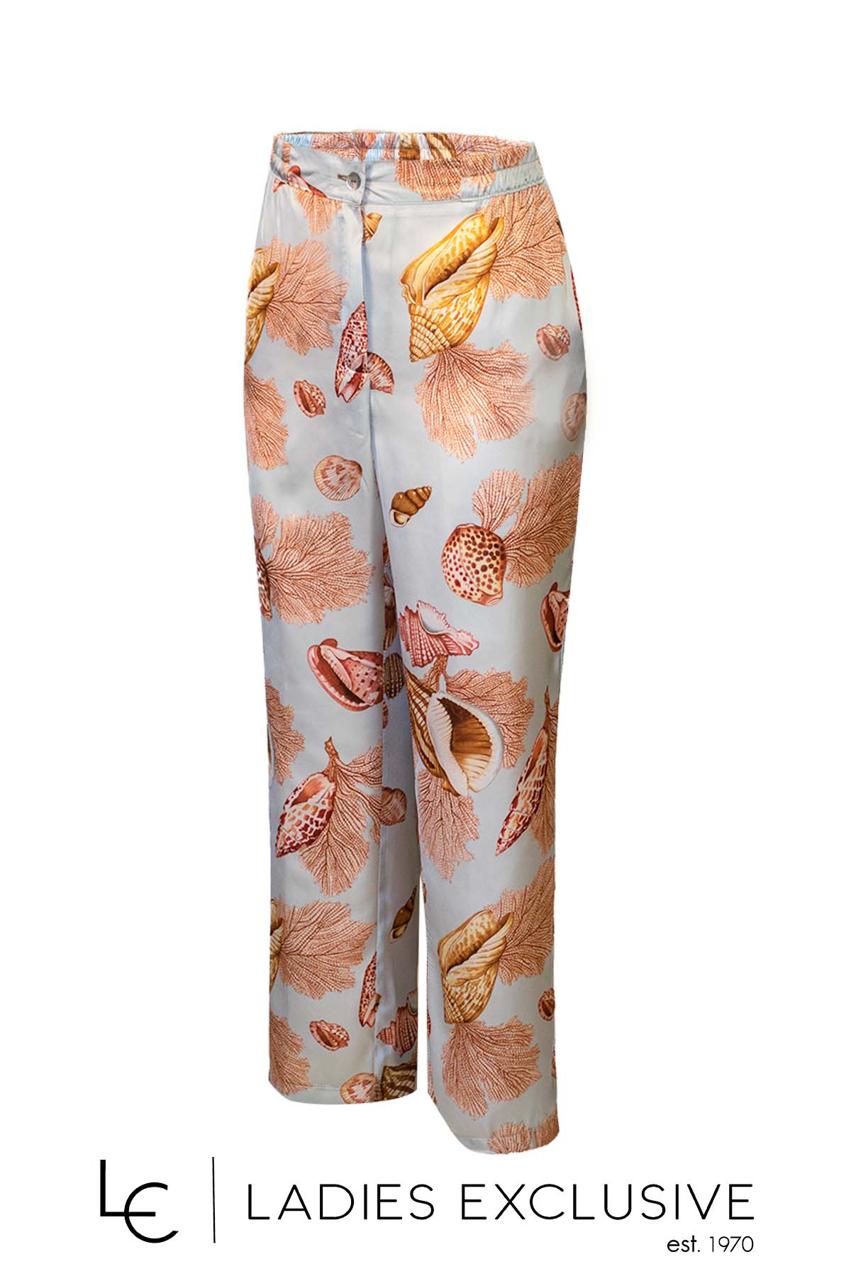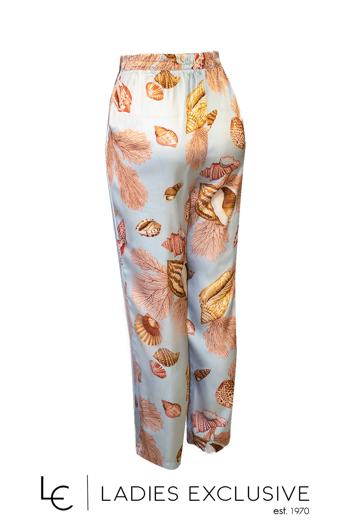 ESTEL Παντελόνι εμπριμέ αστραγάλου σατέν με λάστιχο στη μέση. Γίνεται σετ με την τουνίκ με κωδικό 07568-00.28.