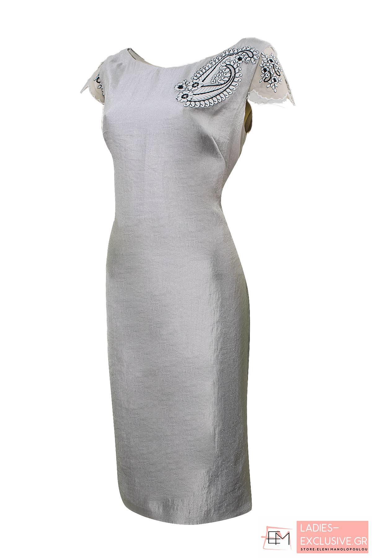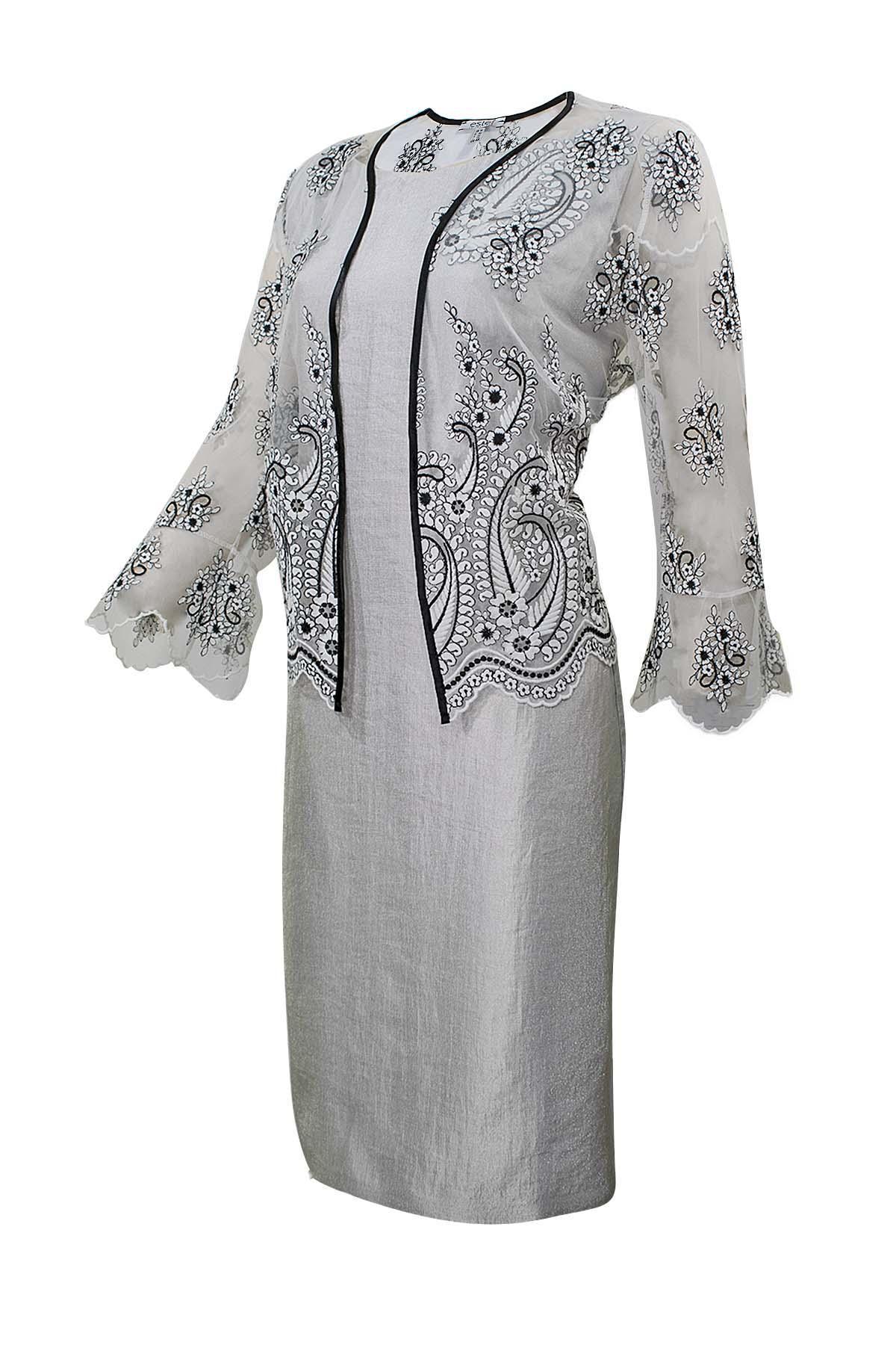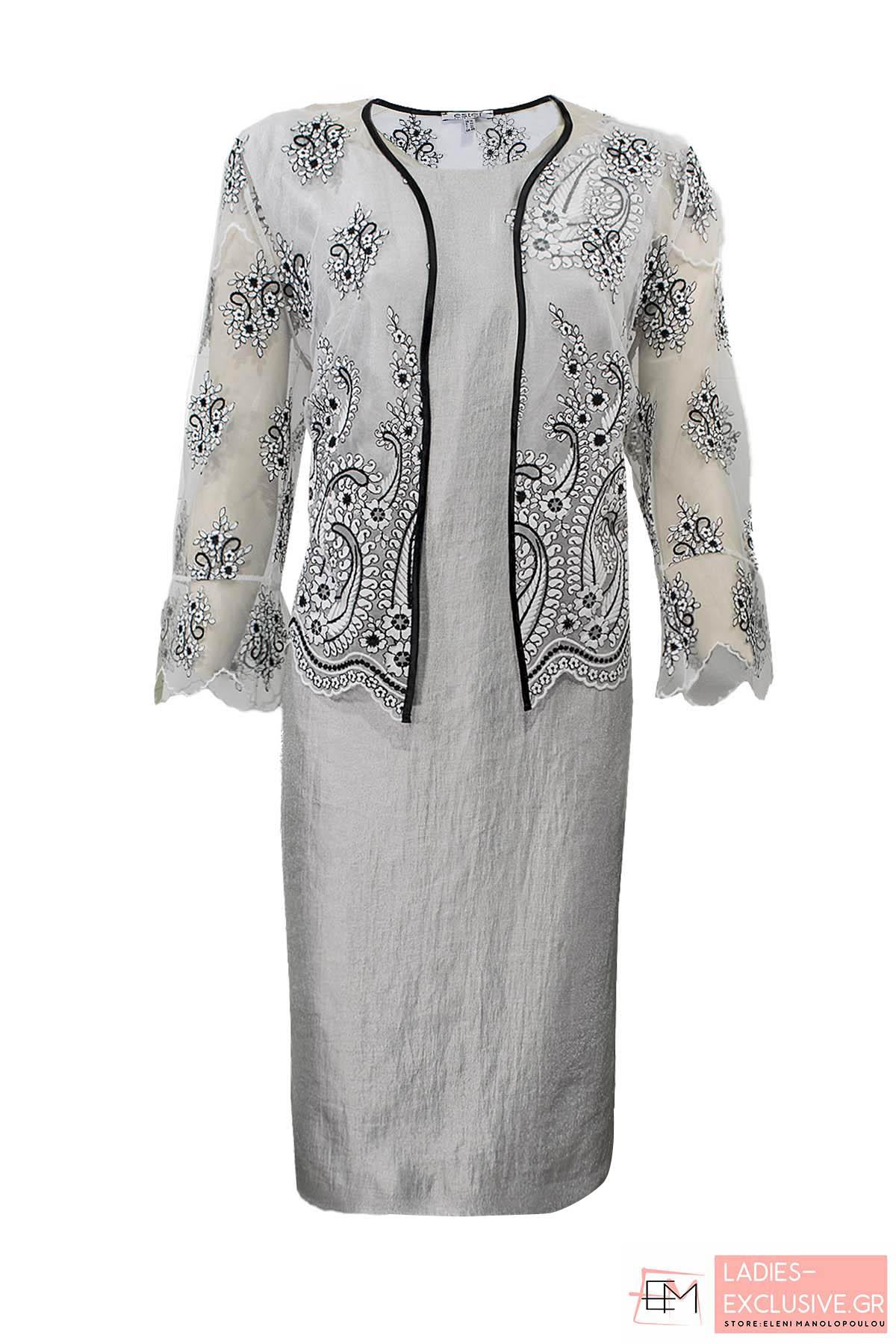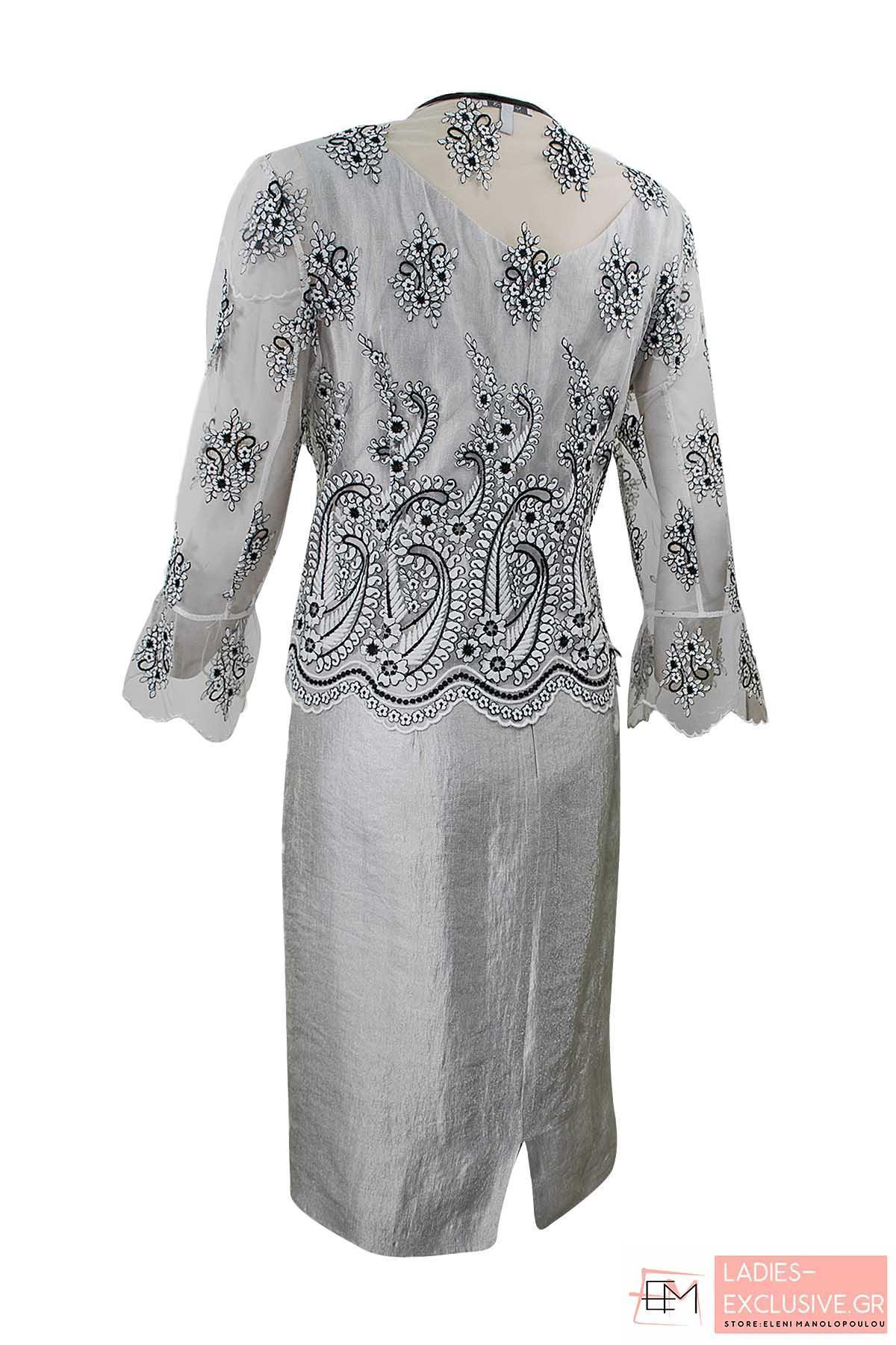 ESTEL Σετ 2 τεμαχίων που αποτελείται από φόρεμα μεταλίζε με σέ ίσια γραμμή με ζακέτάκι με ανάγλυφο κέντημα.