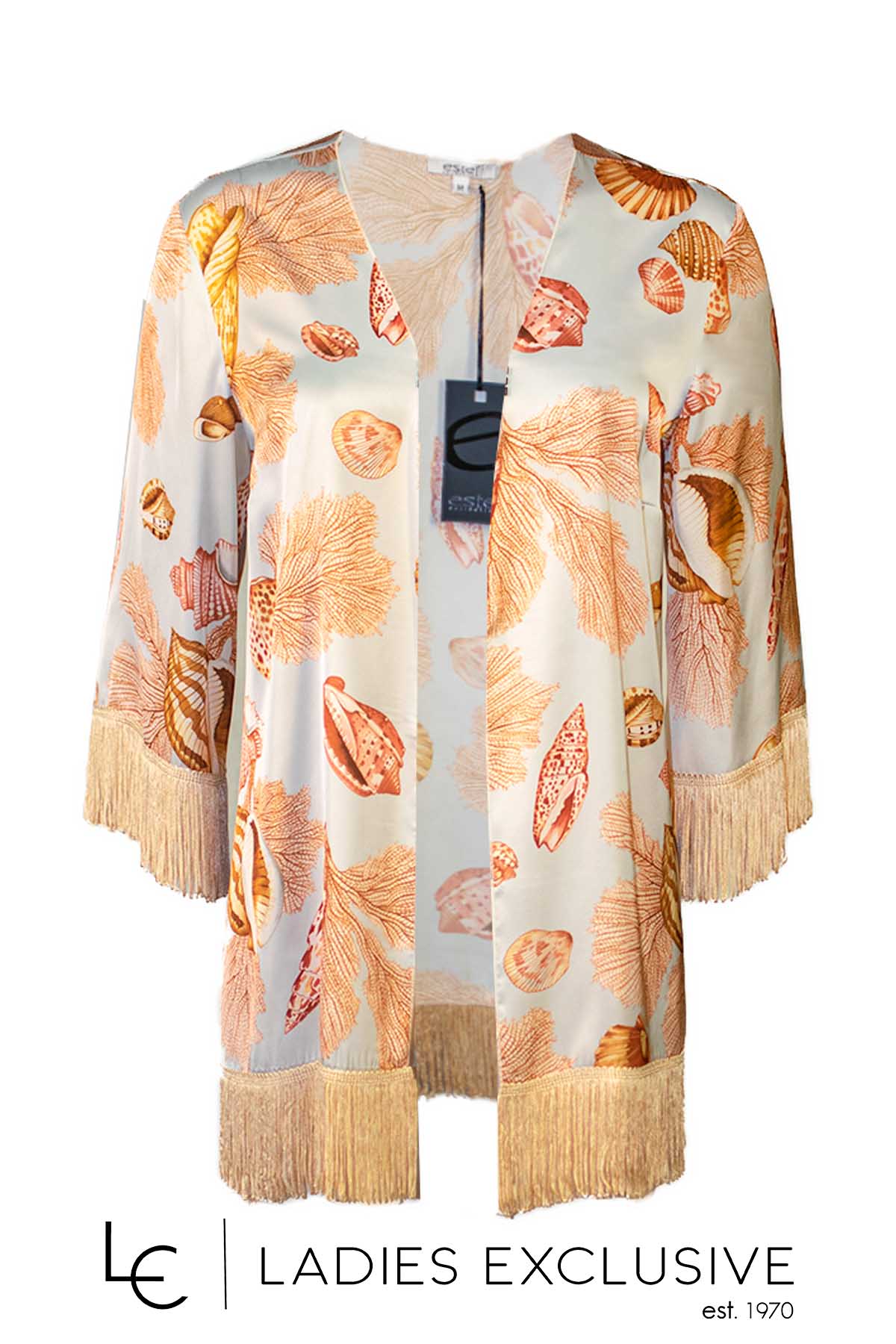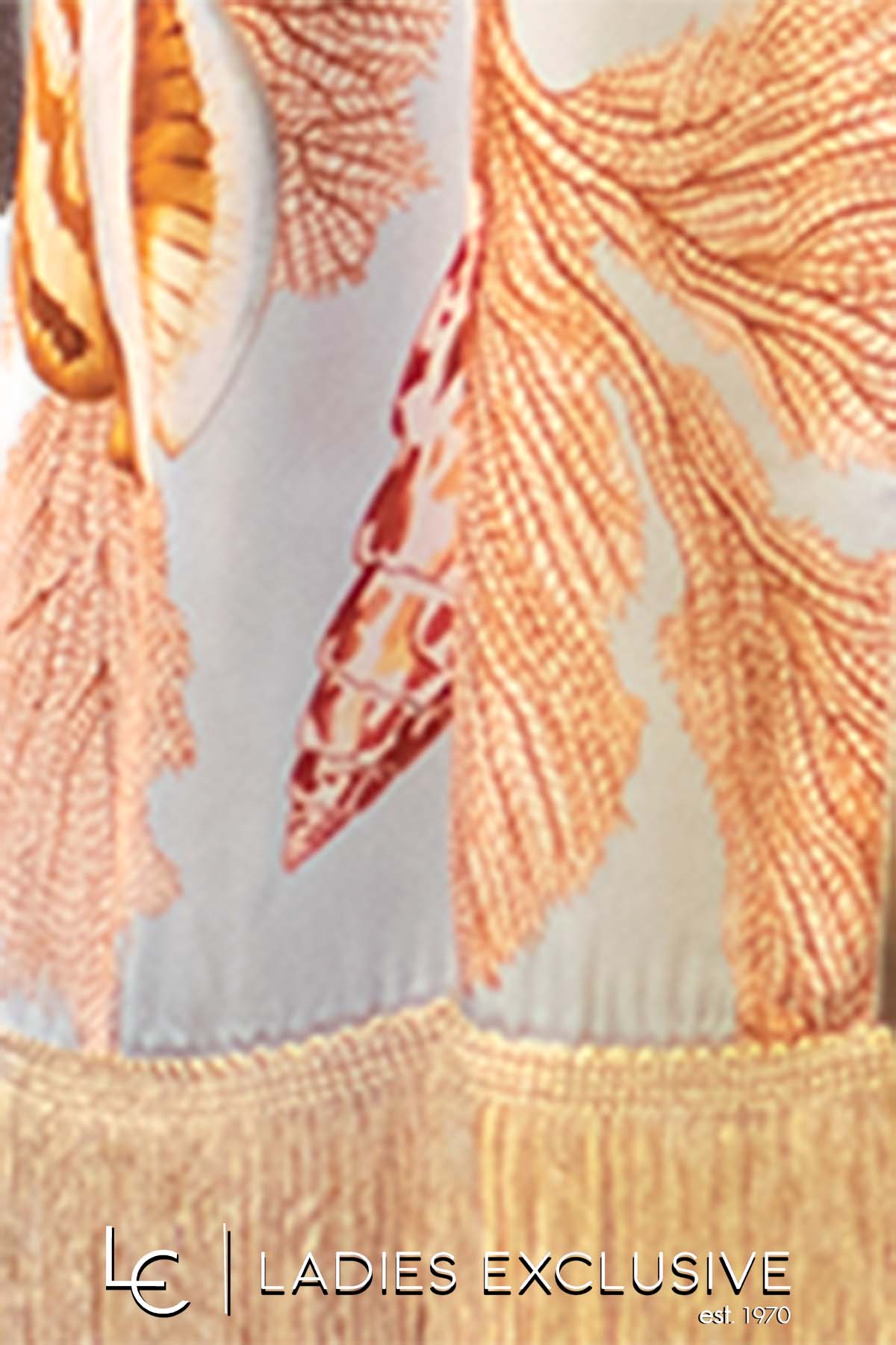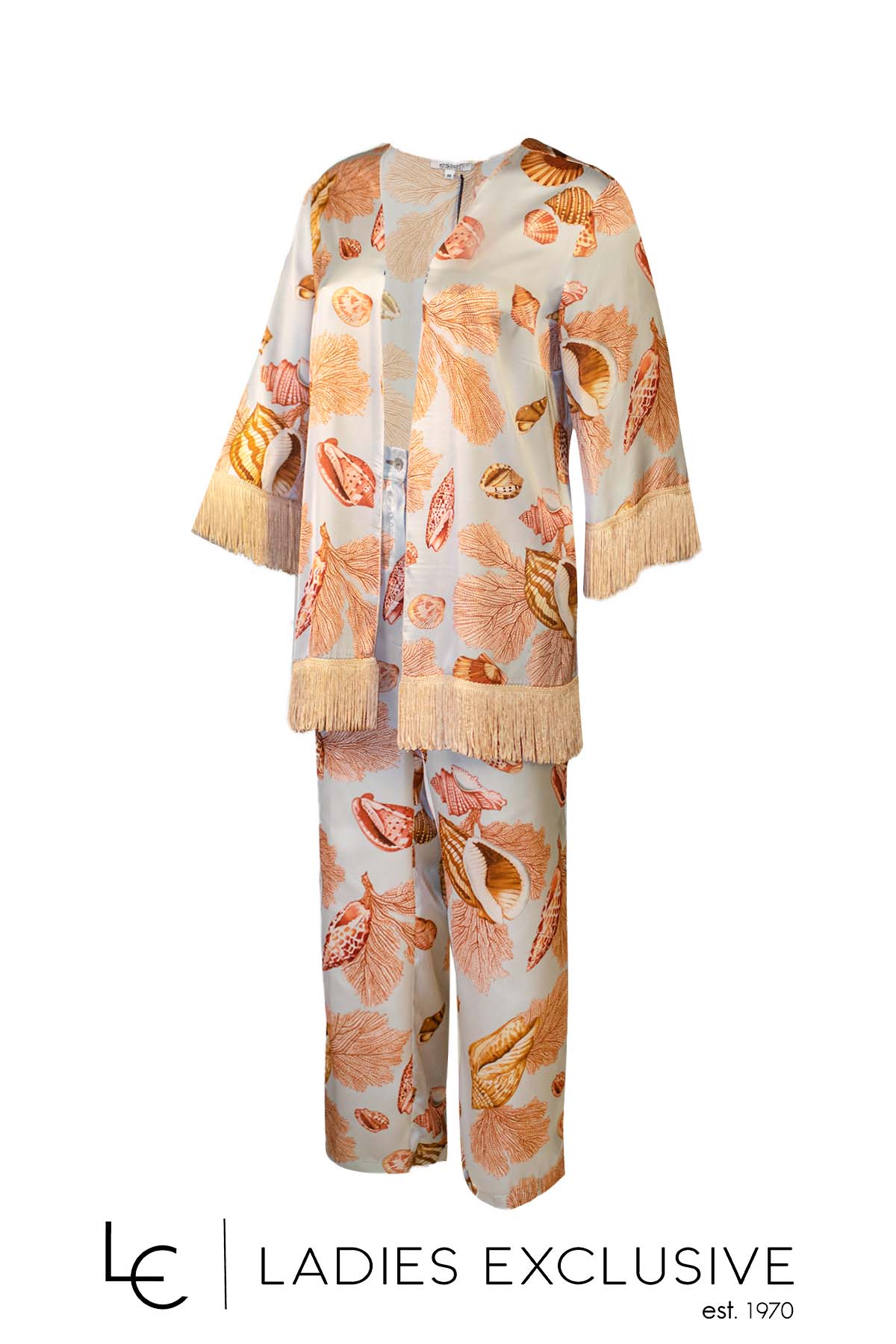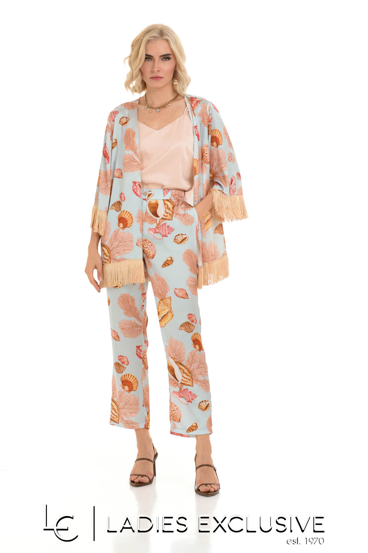 ESTEL Τουνίκ εμπριμέ σατέν με κρόσια στα τελειώματα. Γίνεται σετ με το παντελόνι με κωδικό 07572-00.28.
