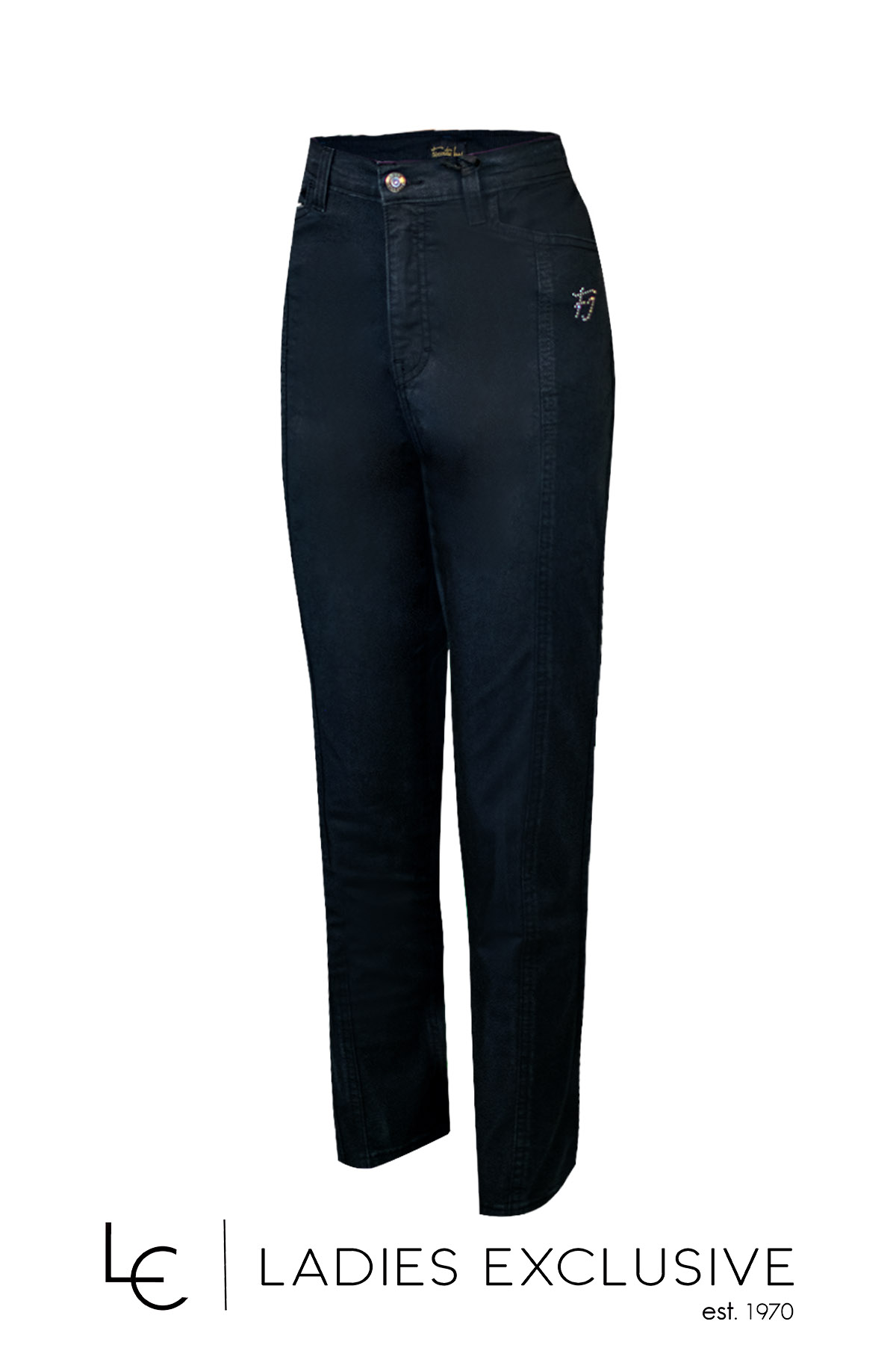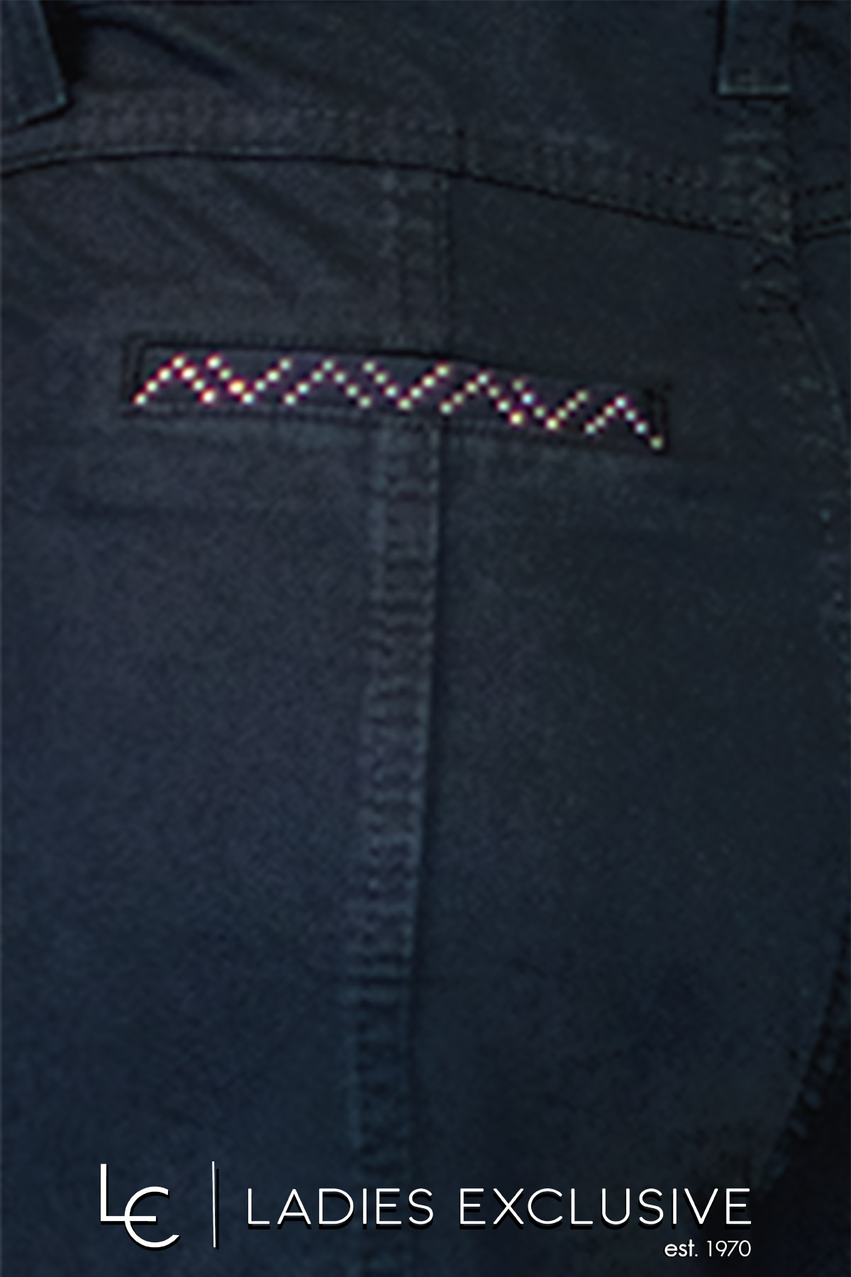 FIORENTINA JEANS Παντελόνι μαύρο βαμβακερό με διπλό γαζί στο μπροστινό μέρος και μικρά τσεπάκια με στρας πίσω.
