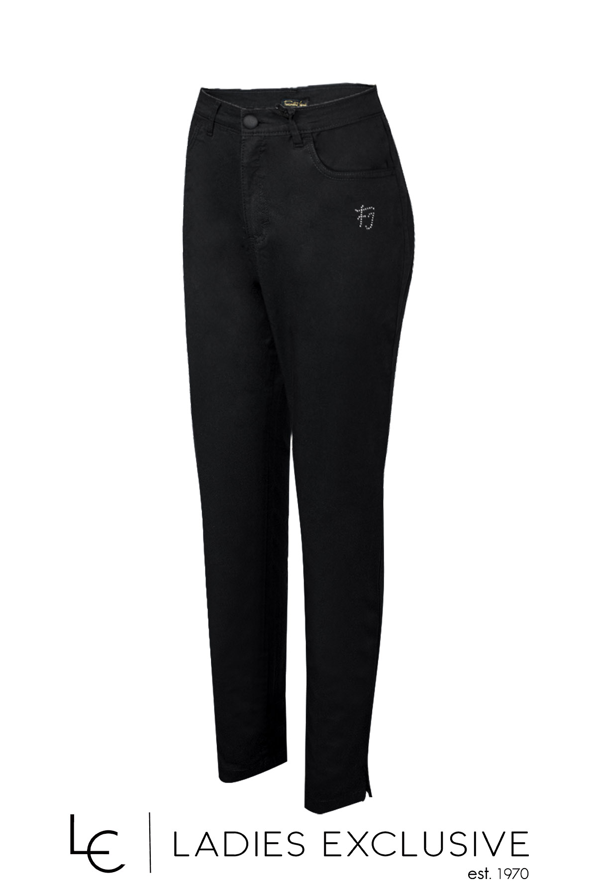 FIORENTINA JEANS Παντελόνι μαύρο καμπαρντίνα αστραγάλου με κουμπιά στο κάτω μέρος.