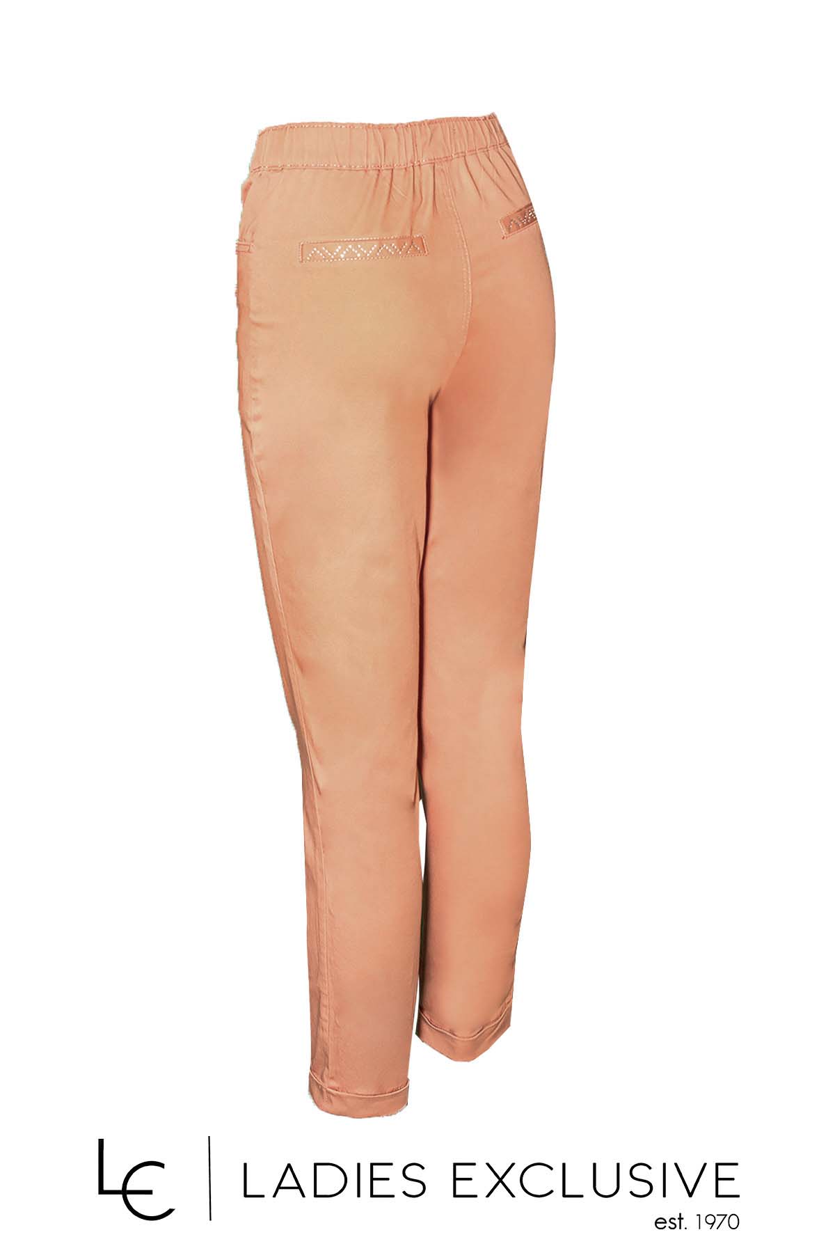 FIORENTINA JEANS Παντελόνι κοραλί καμπαρντίνα αστραγάλου με ρεβέρ και λάστιχο στη μέση.