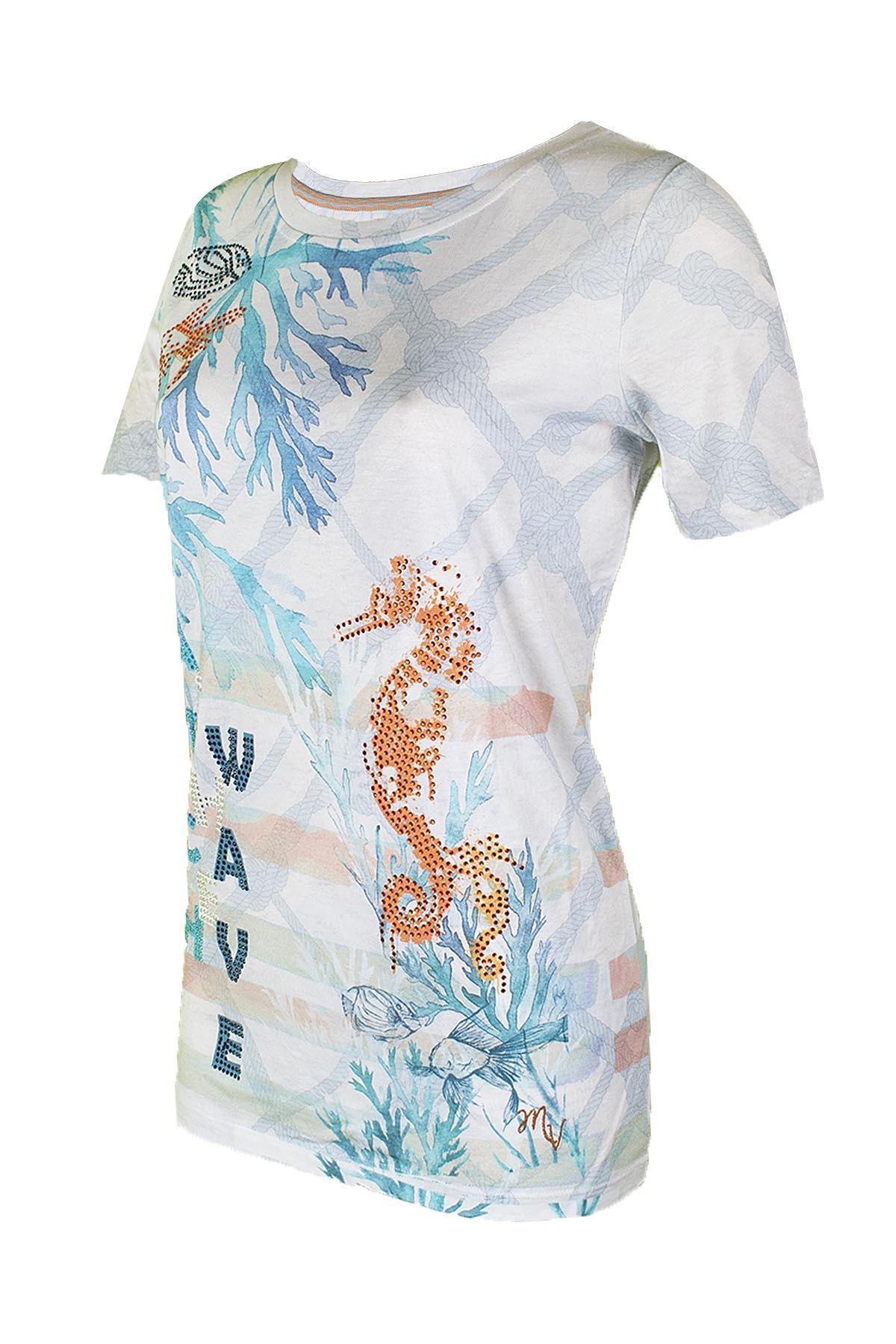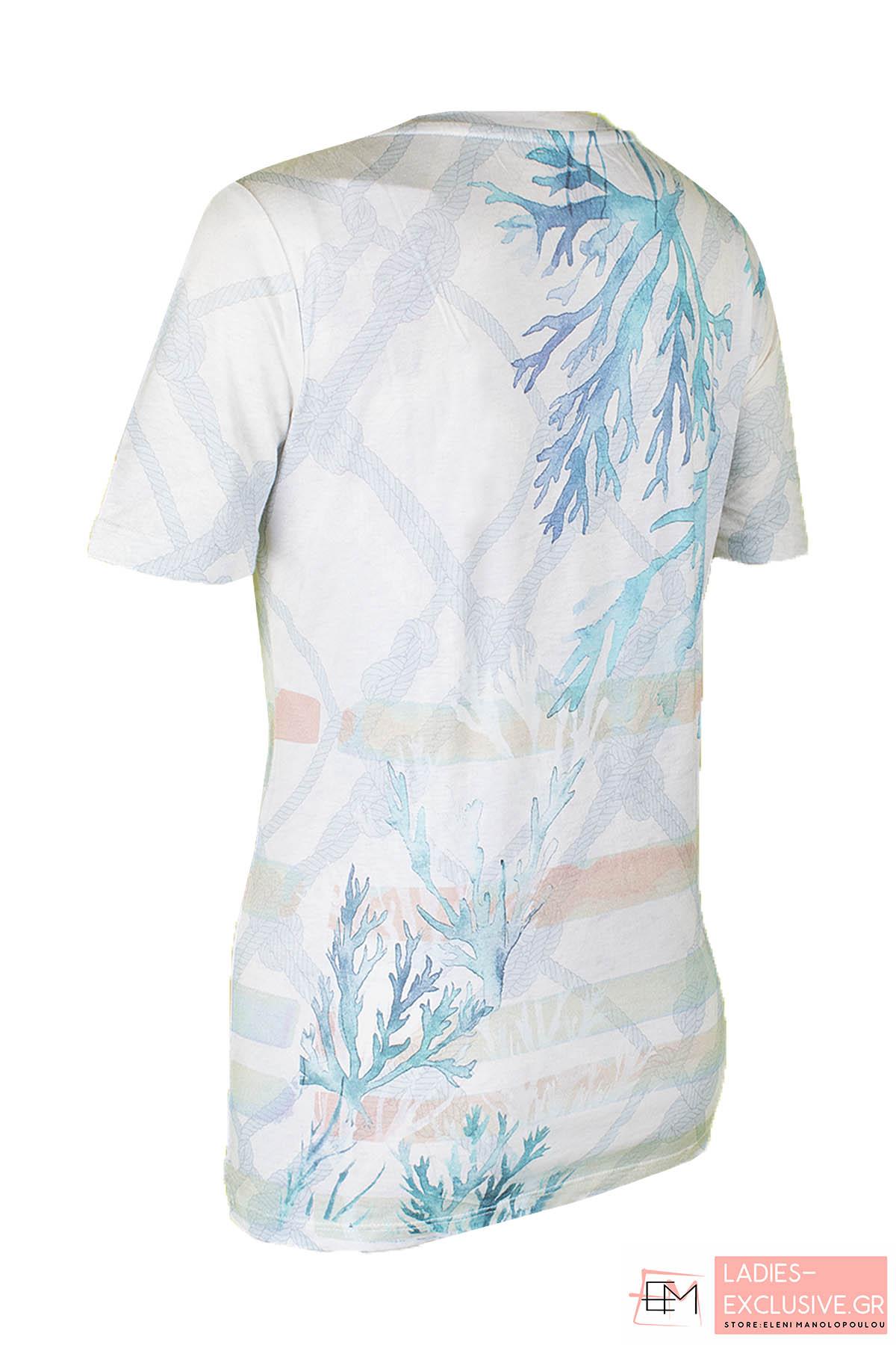 MALVIN Μπλούζα εμπριμέ κοντομάνικη με λαιμόκοψη και ιδιαίτερο σχέδιο με στρας στο μπροστινό μέρος.