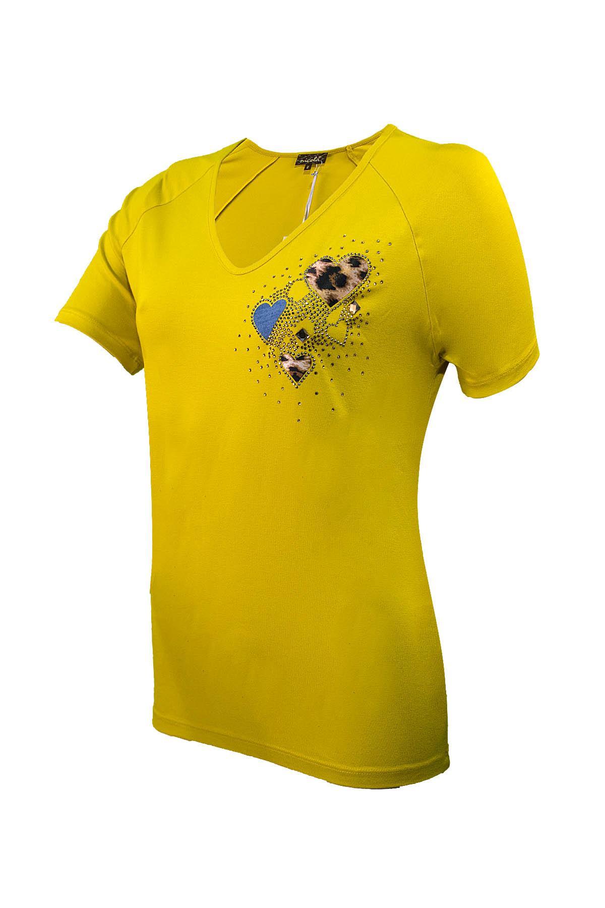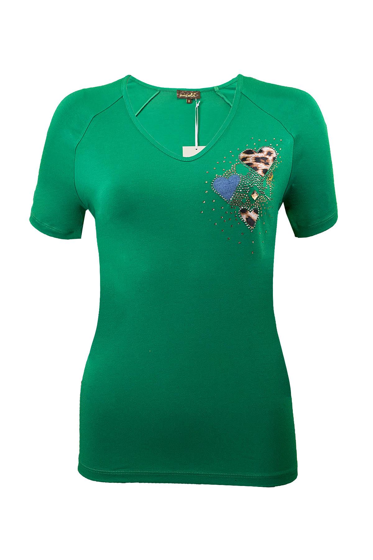 NICOLA Μπλούζα κοντομάνικη με V και καρδούλες στο στήθος.