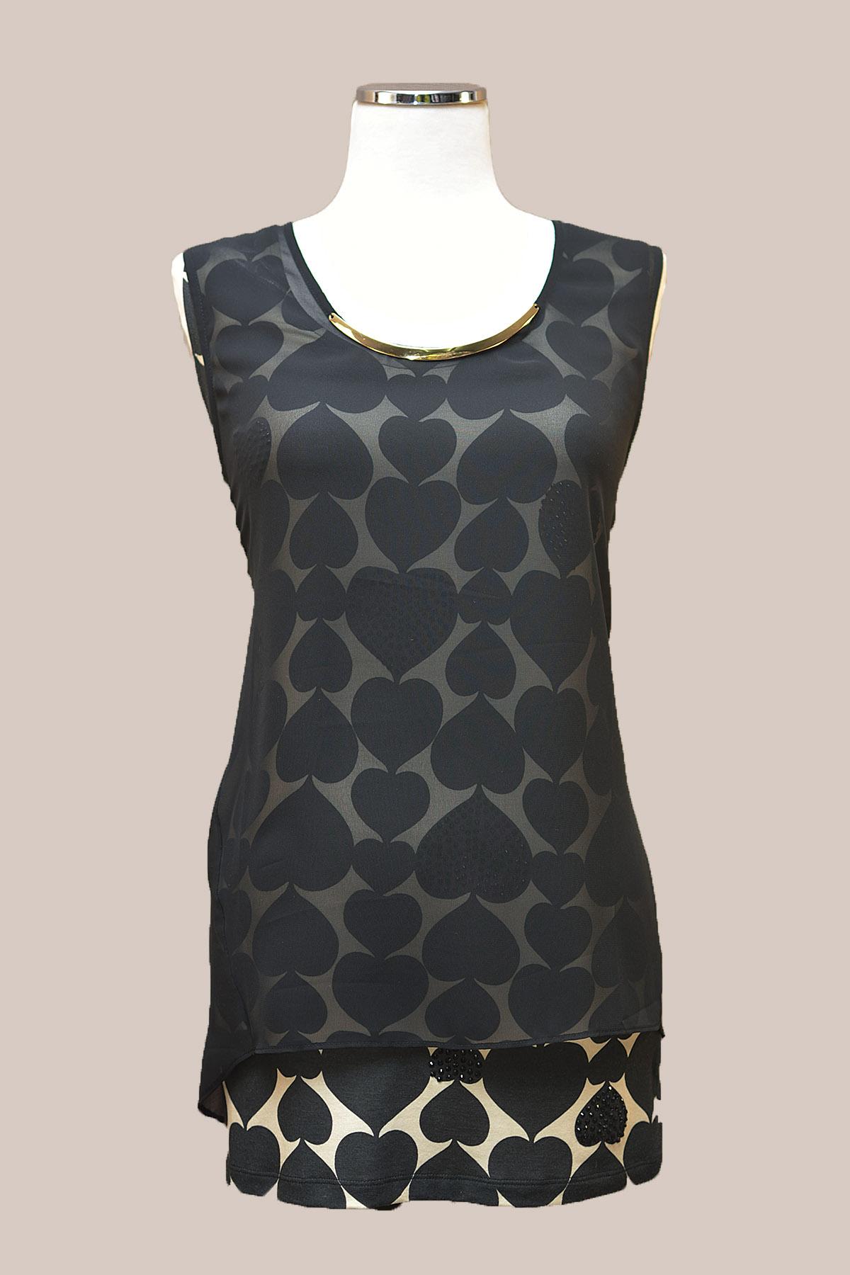 NICOLA Μπλούζα αμάνικη, διπλή από μέσα βισκόζ ελαστική, εξωτερικά ζορζέτα πιο μακρία πίσω.