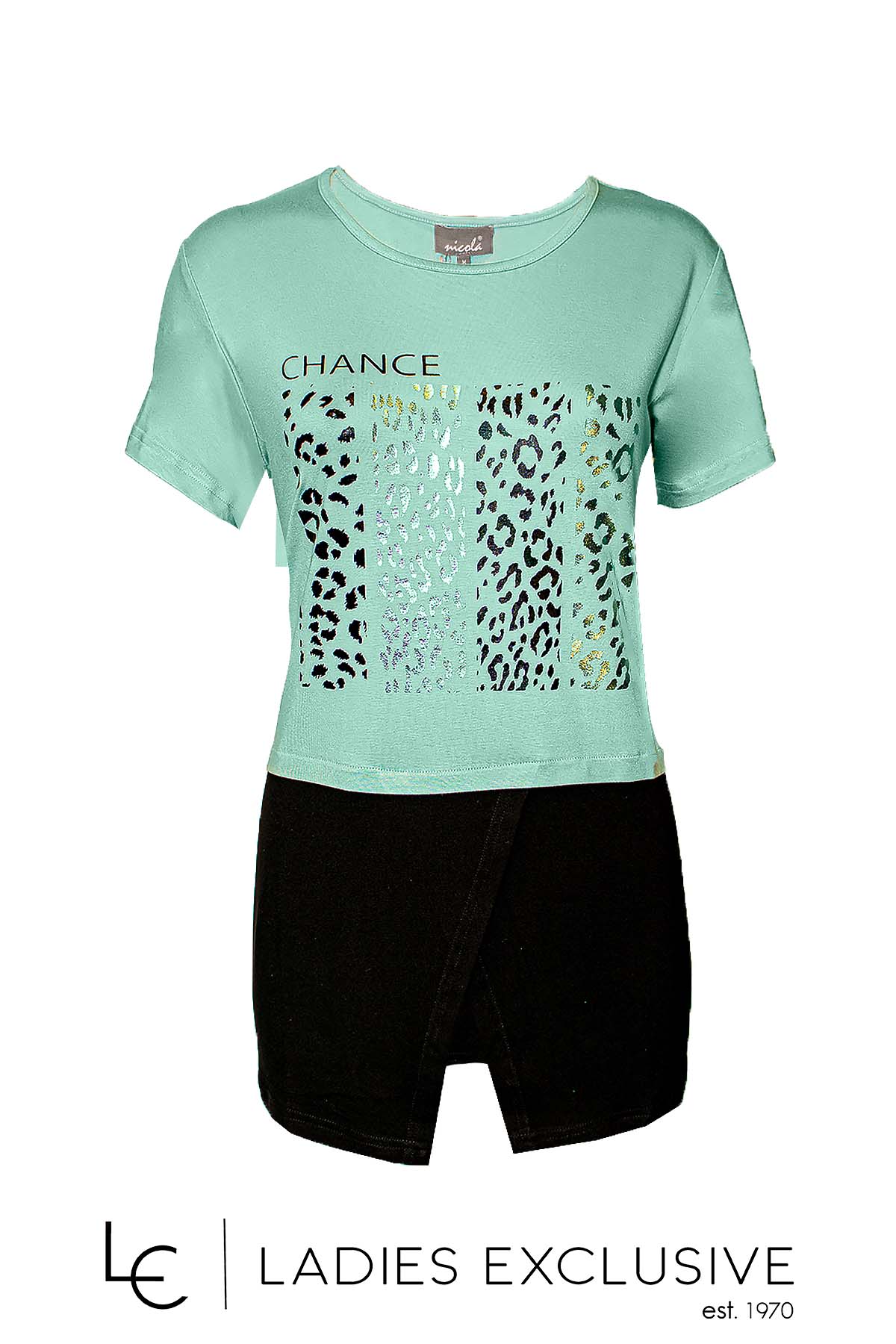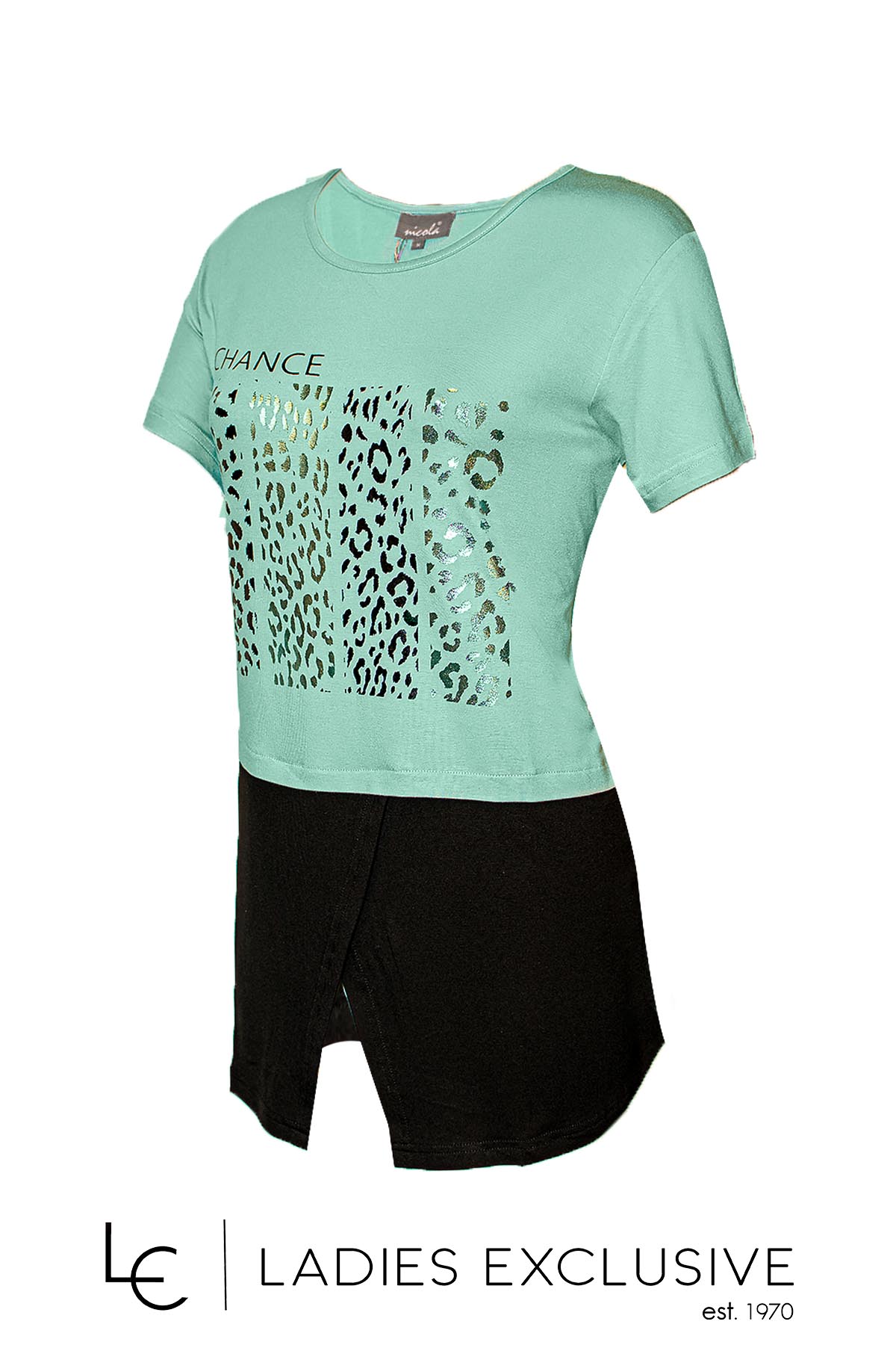 NICOLA Μπλούζα κοντομάνικη βεραμάν με στάμπα animal print και άνοιγμα στο μπροστινό μέρος.