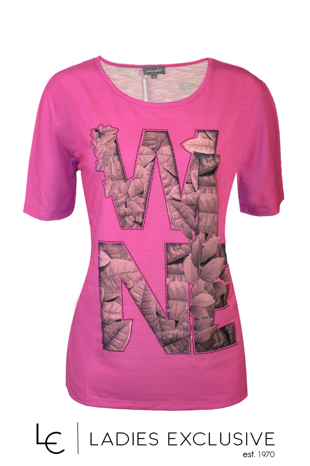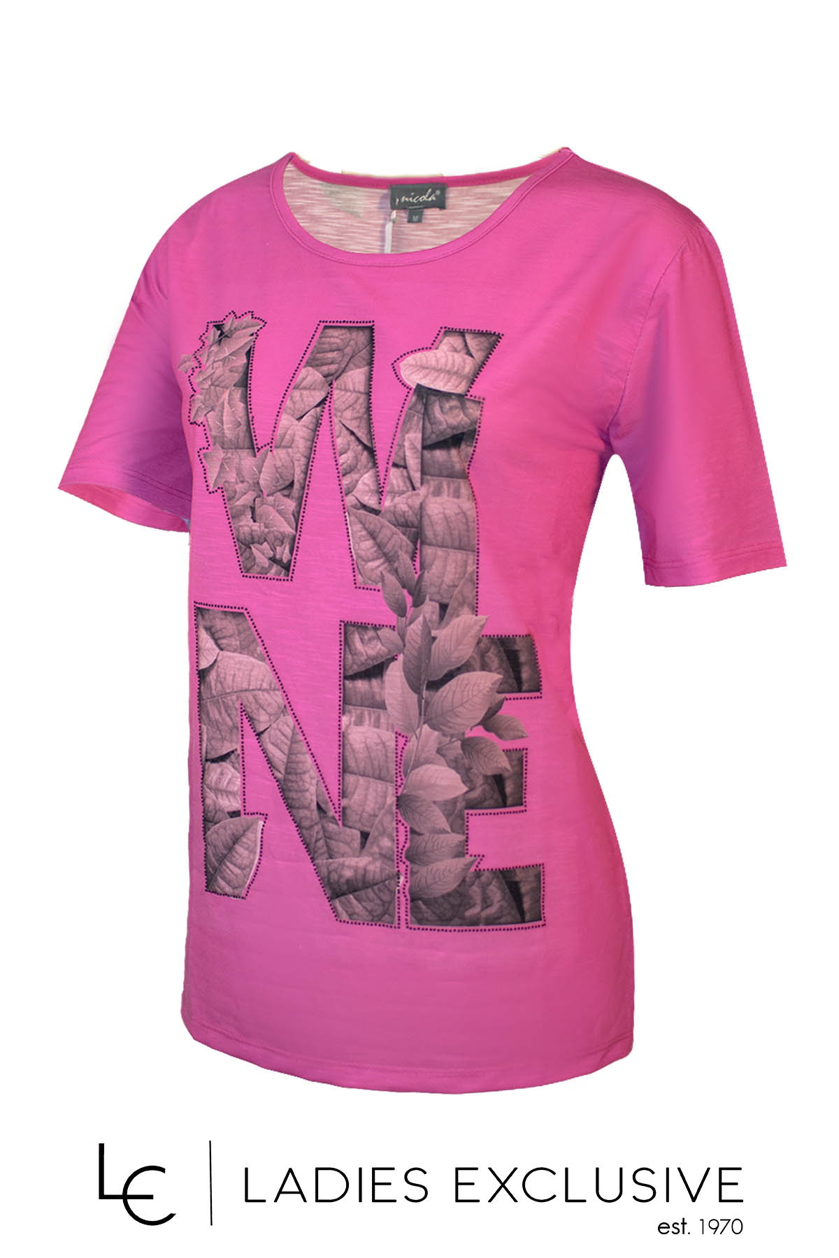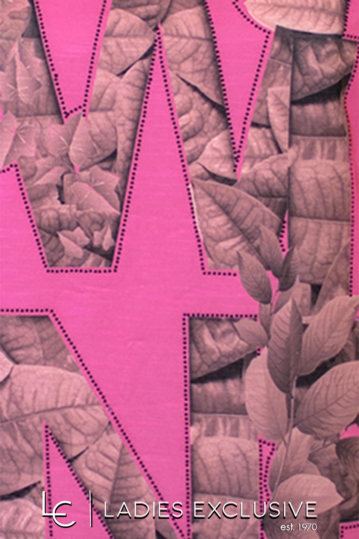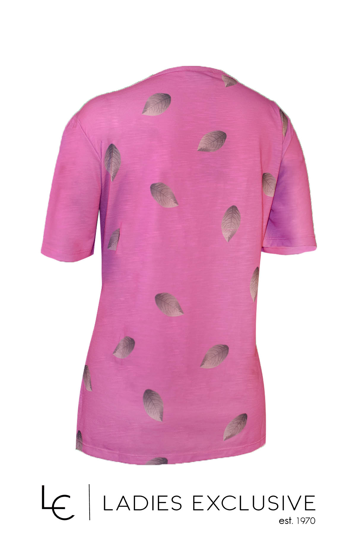 NICOLA Μπλούζα φούξια κοντομάνικη με σομόν στάμπα φύλλο.