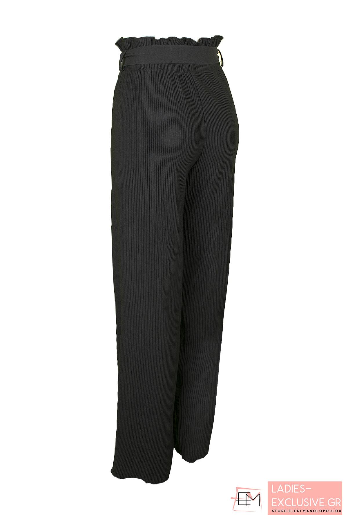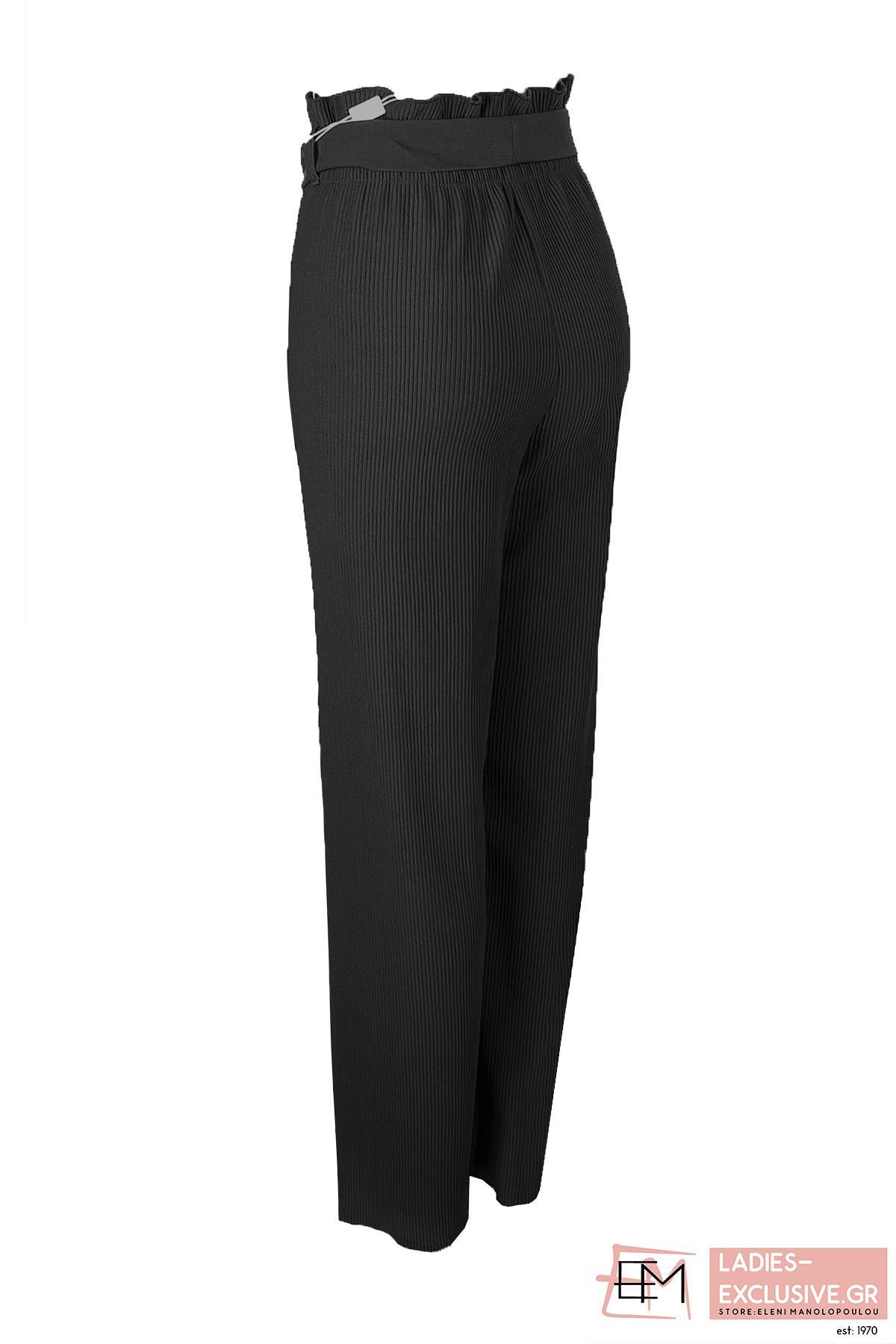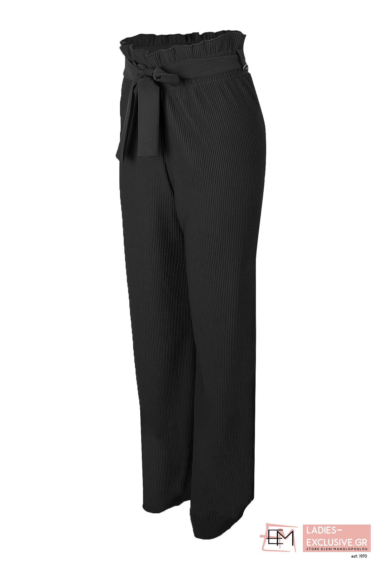 VETO Παντελόνα μαύρη σε άνετη γραμμή με ανάγλυφο ριγέ στην ύφανσή της και ζώνη στη μέση.
