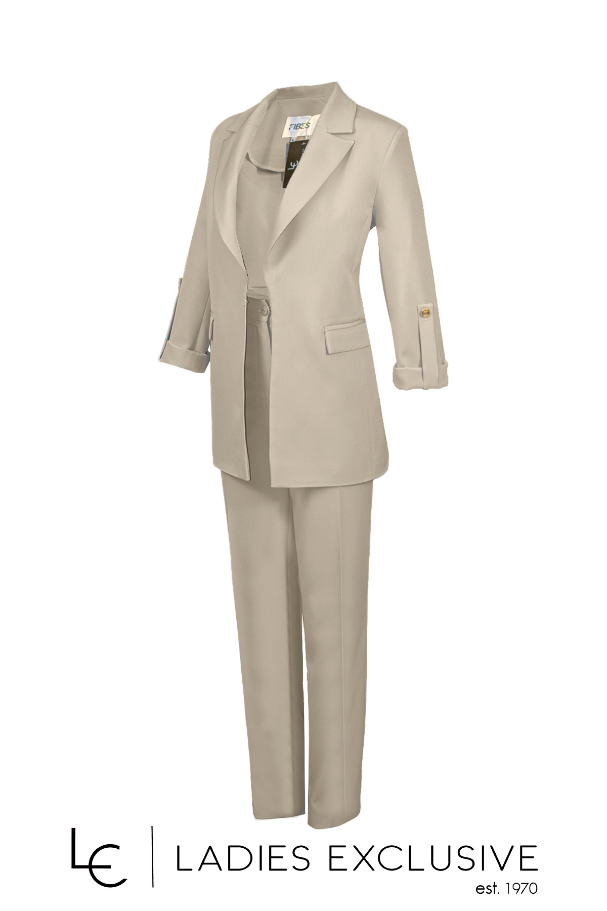 VETO Παντελόνι κρεπ μπεζ με λάστιχο στη μέση σε κλασική γραμμή. Γίνεται σετ με το σακάκι με κωδικό 01-5600.09.