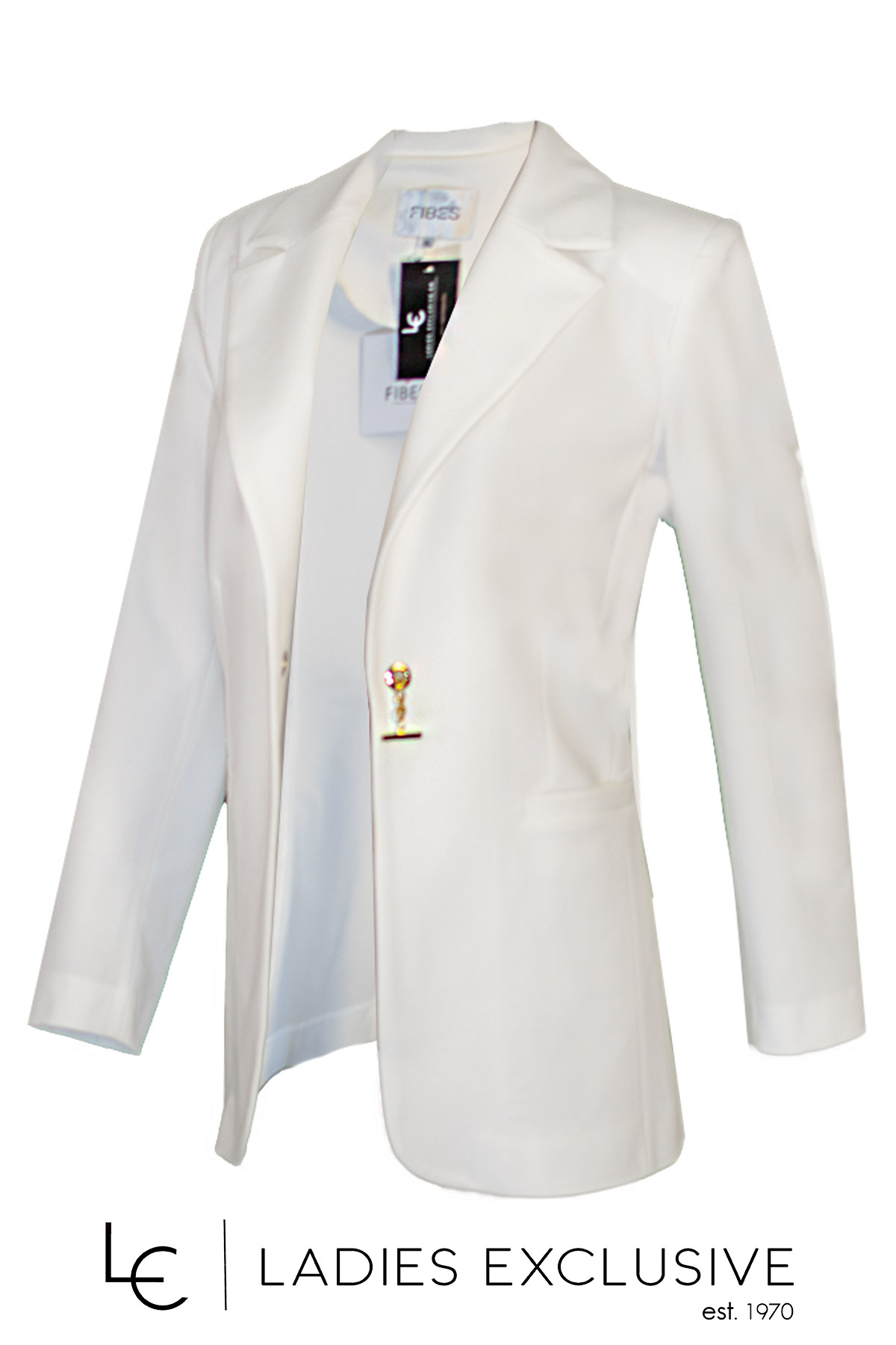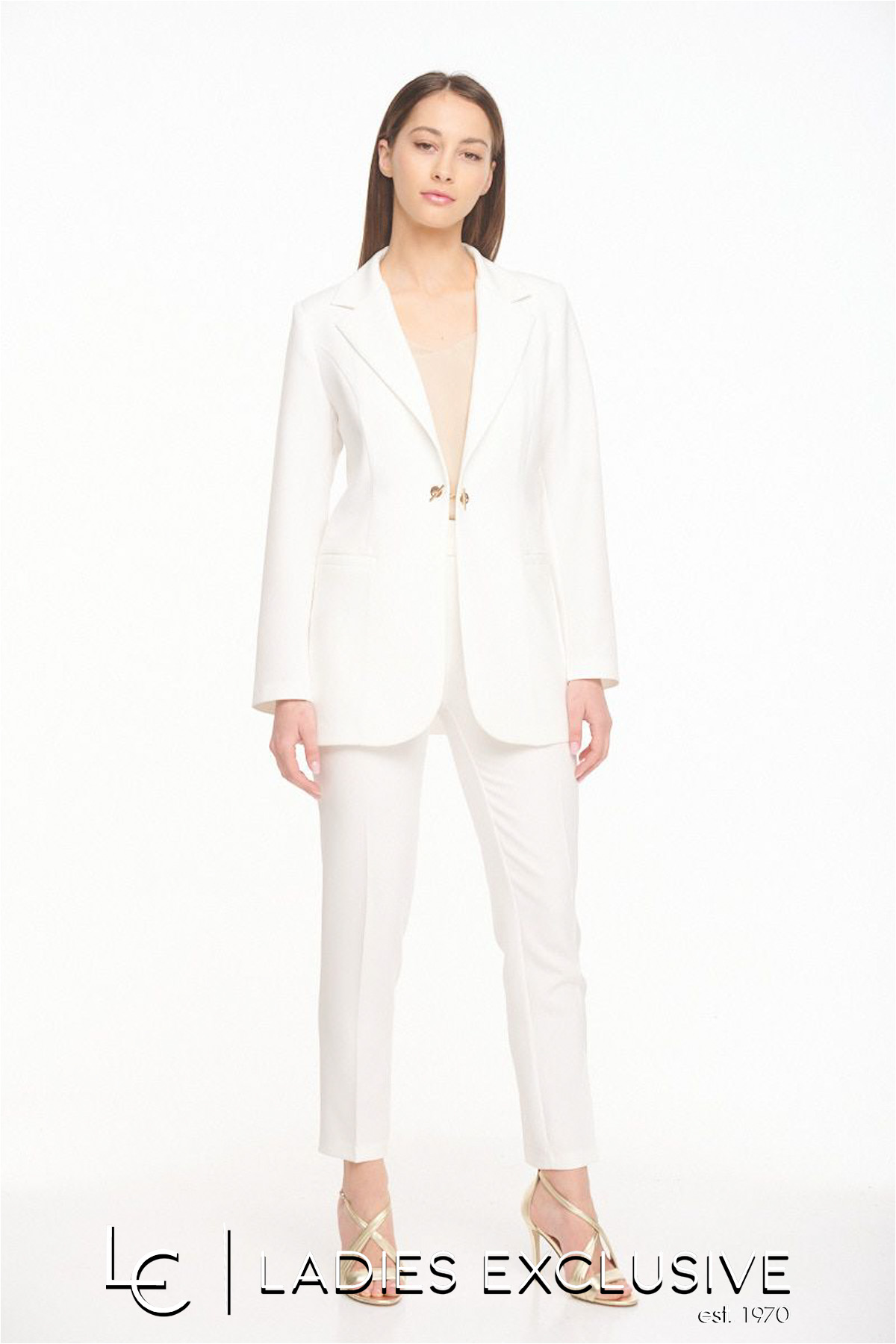 VETO Σακάκι λευκό κρεπ blazer με ιδιαίτερο κούμπωμα.Κοστούμι με παντελονι κωδικός 04-7103.06
