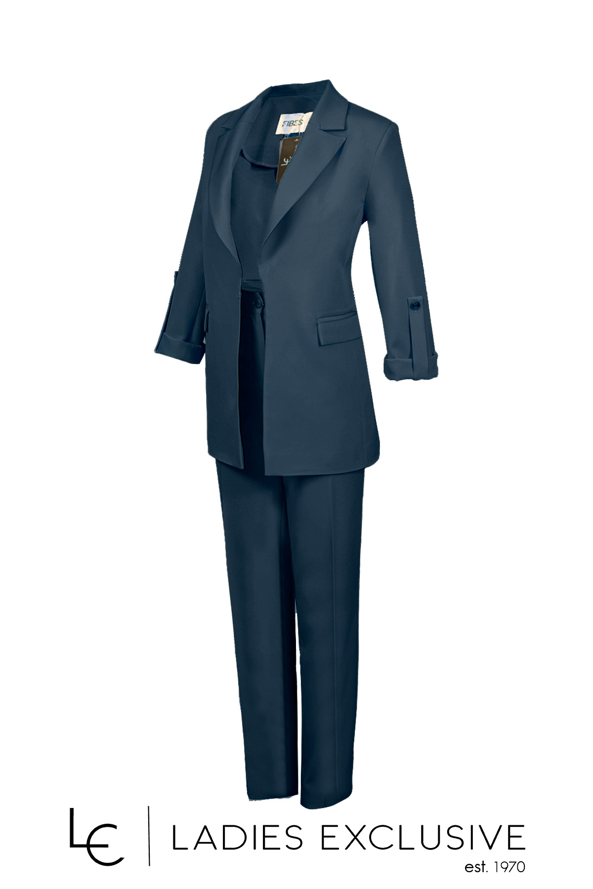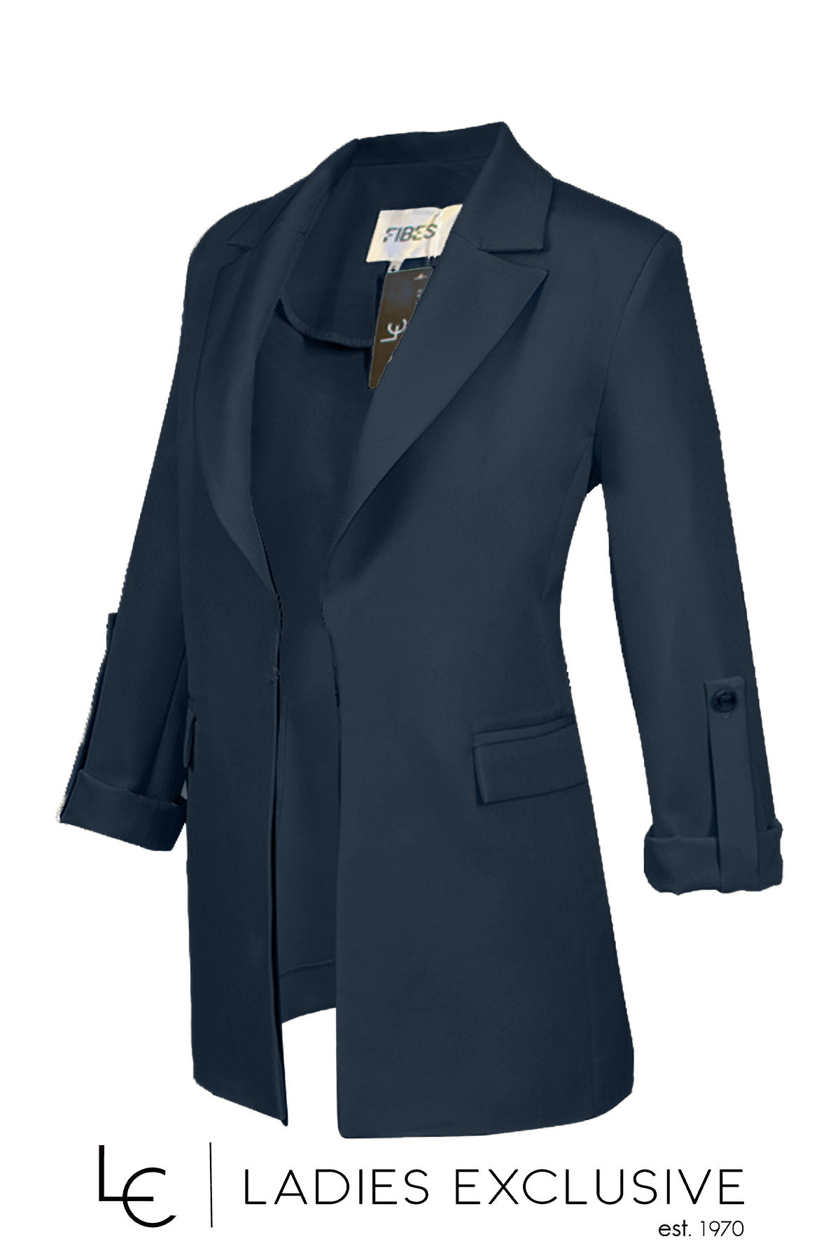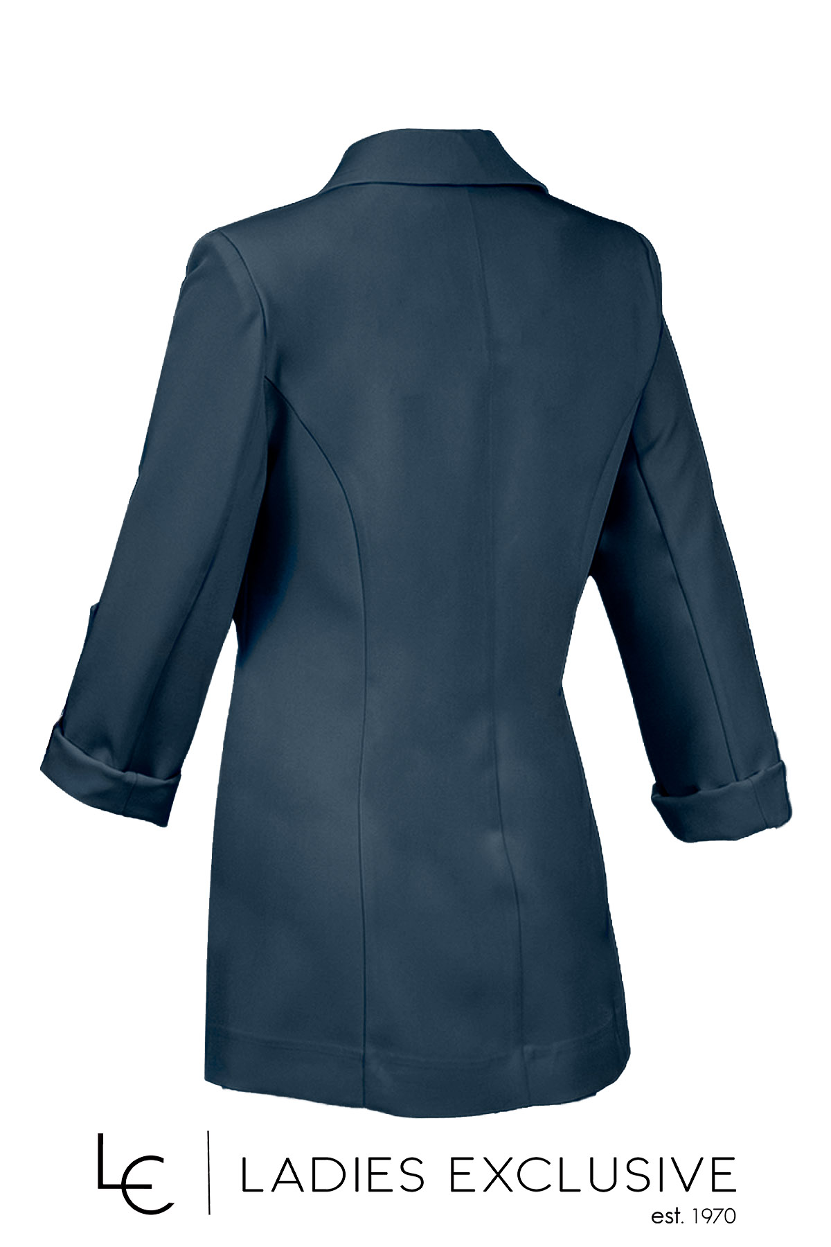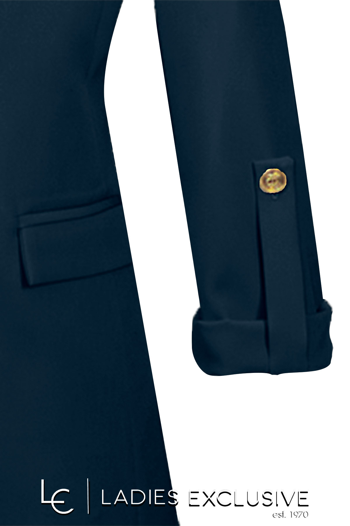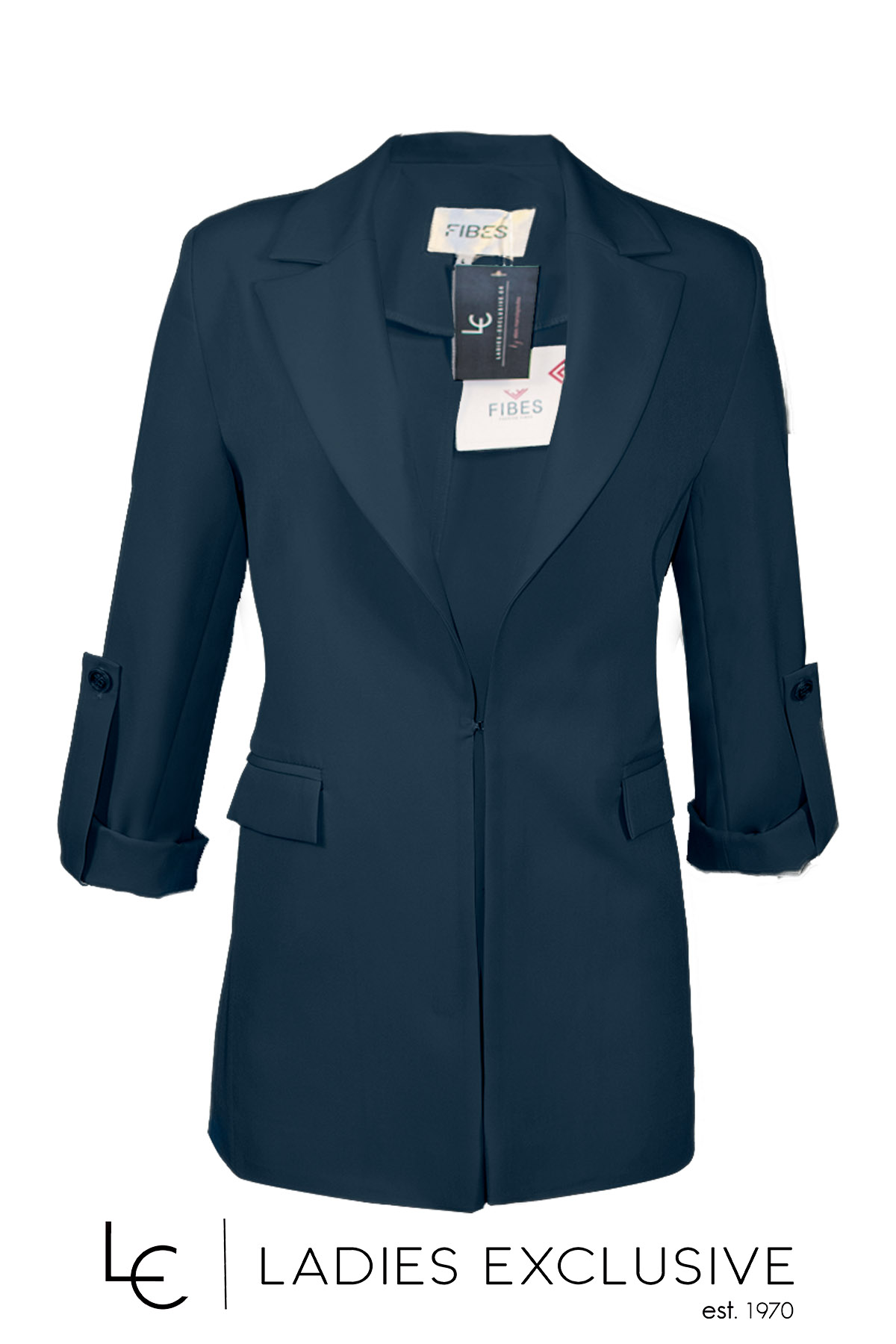 VETO Σακάκι κρεπ μπλε με αναδιπλούμενο μανίκι στυλ σαφάρι και τσέπες με καπάκια. Γίνεται σετ με τη φούστα με κωδ. 04-7102.03 και με το παντελόνι με κωδ. 04-7101.03.