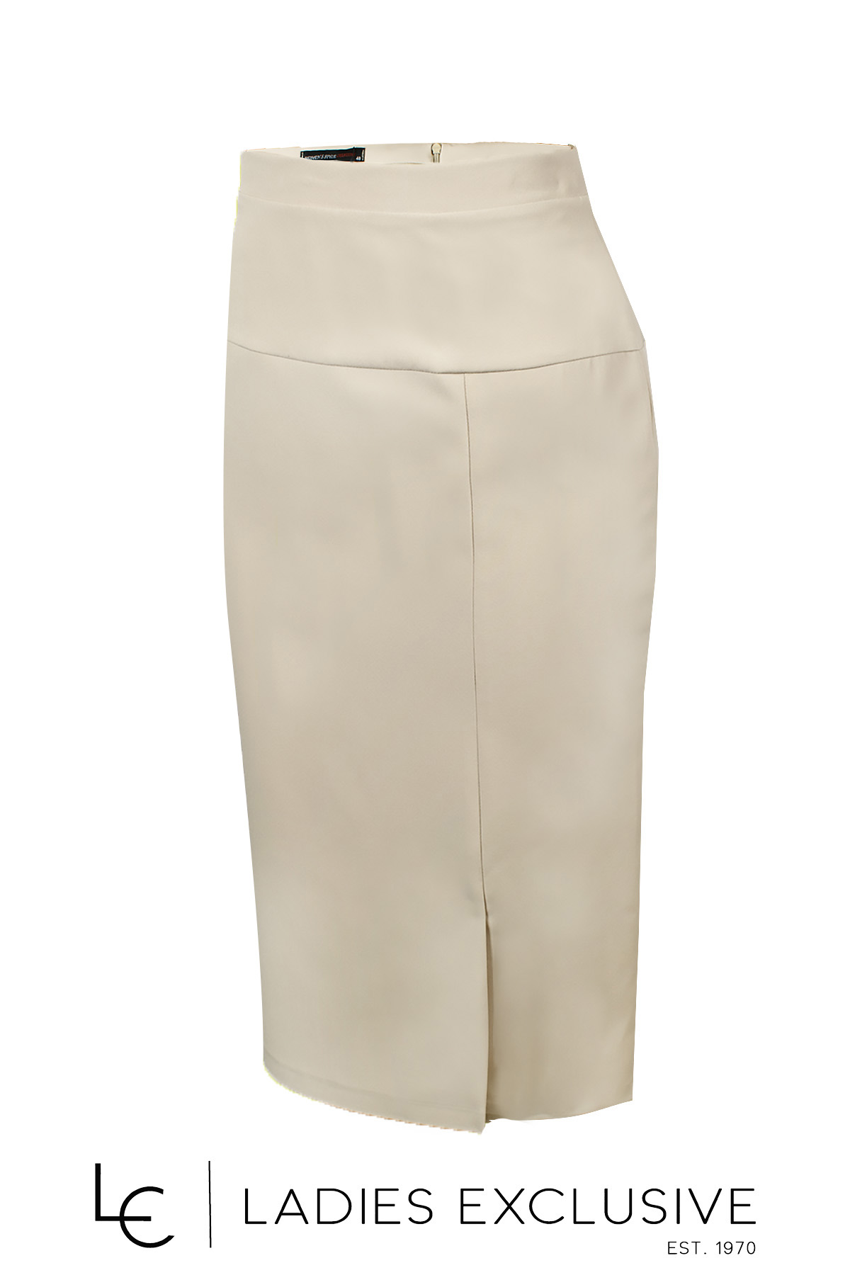 WOMEN'S STYLE Φούστα μπεζ κρεπ σε ίσια γραμμή με μικρό άνοιγμα στο μπροστινό μέρος.