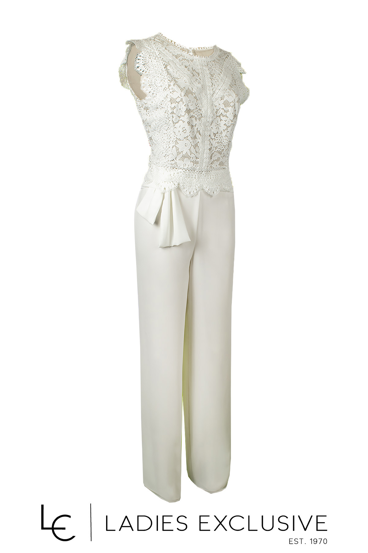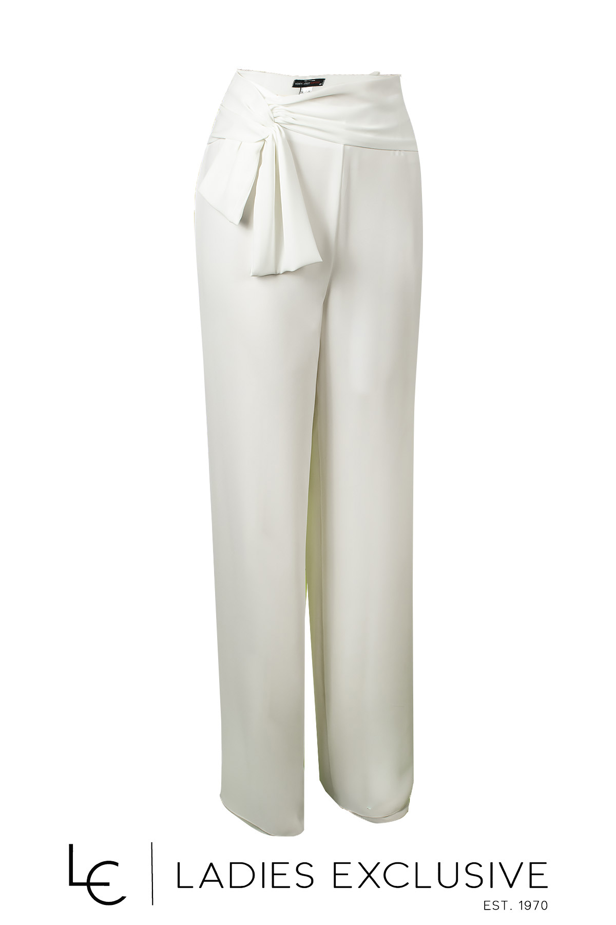 WOMEN'S STYLE Παντελόνα λευκή από διπλή μουσελίνα με ιδιαίτερο δέσιμο κάτω από τη μέση.