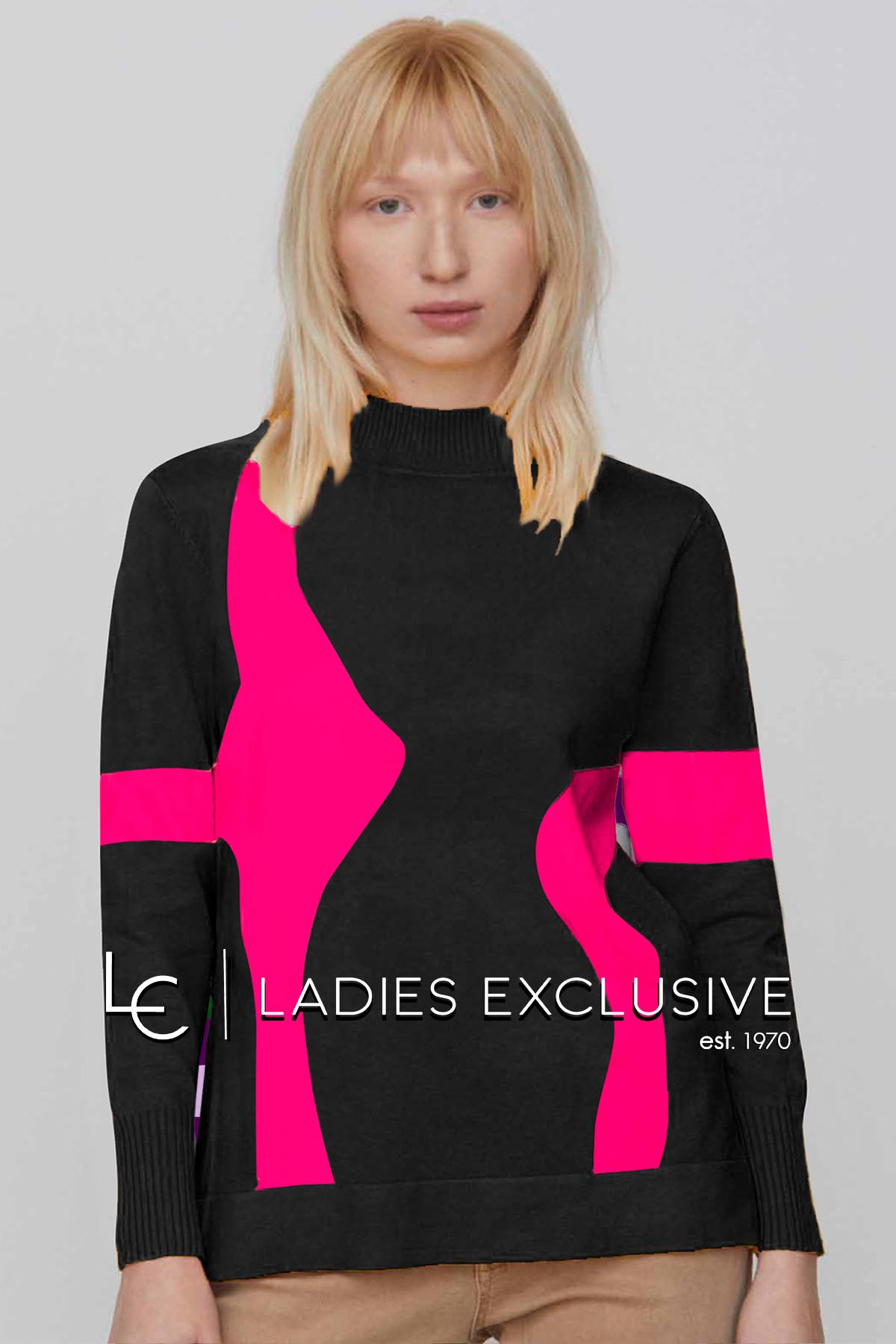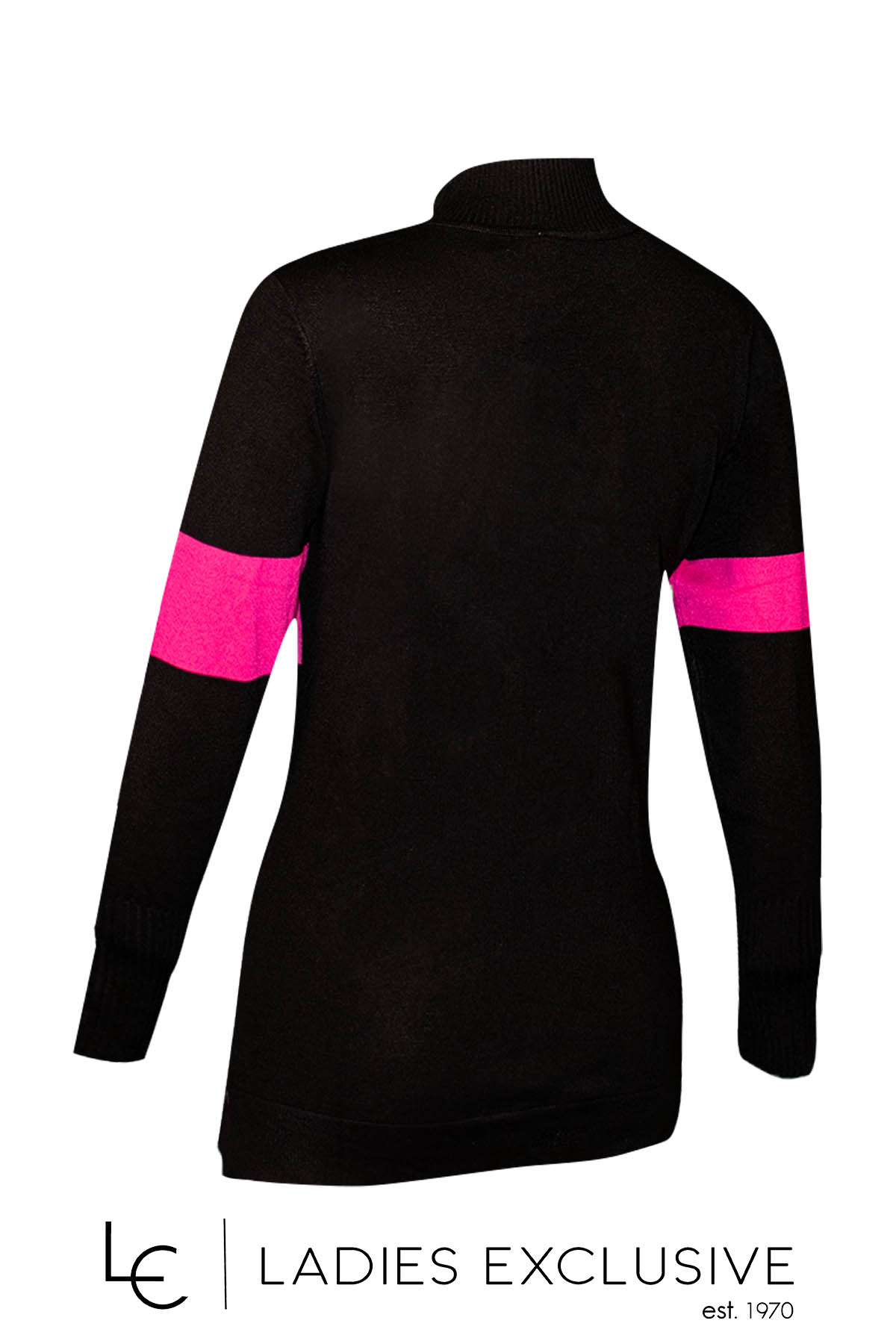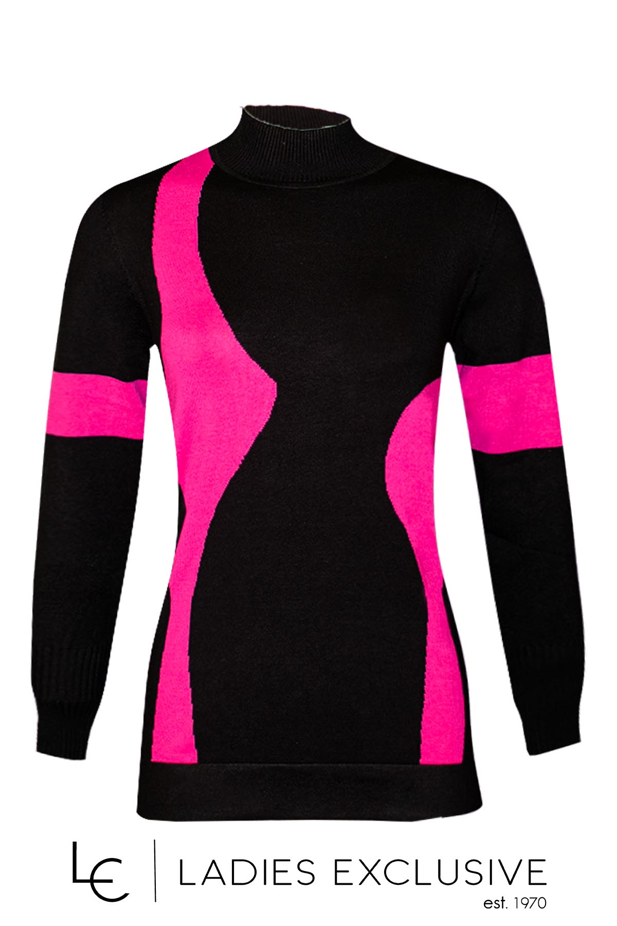 ÊTRE Μπλούζα πλεκτή δίχρωμη, μαύρο με φούξια και όρθιο λαιμό.