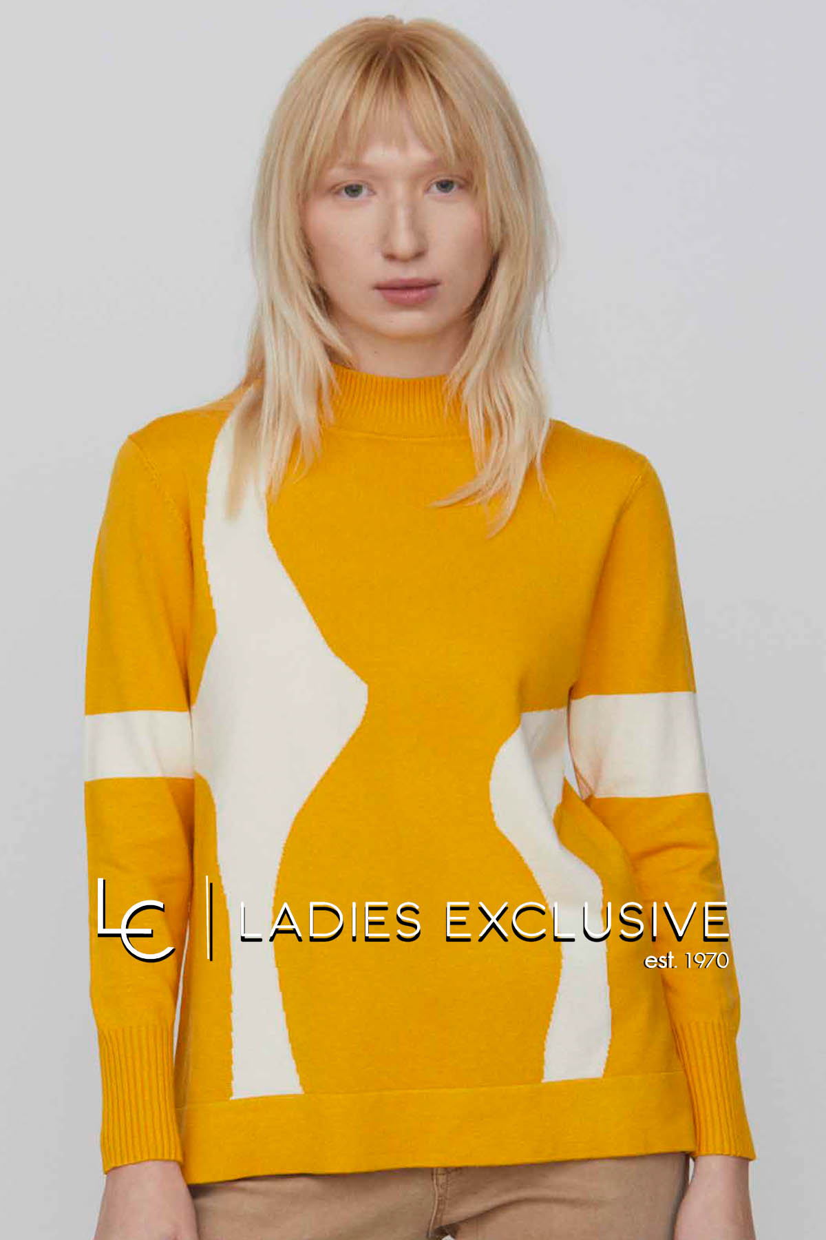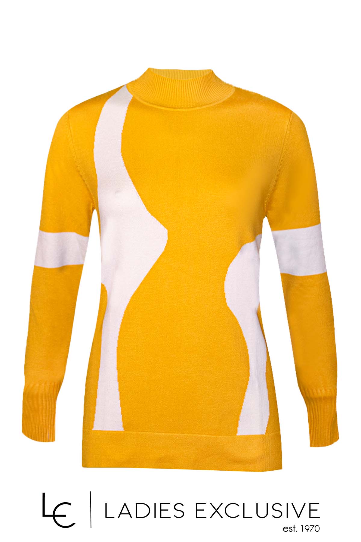 ÊTRE Μπλούζα πλεκτή δίχρωμη, κίτρινο με εκρού και όρθιο λαιμό.