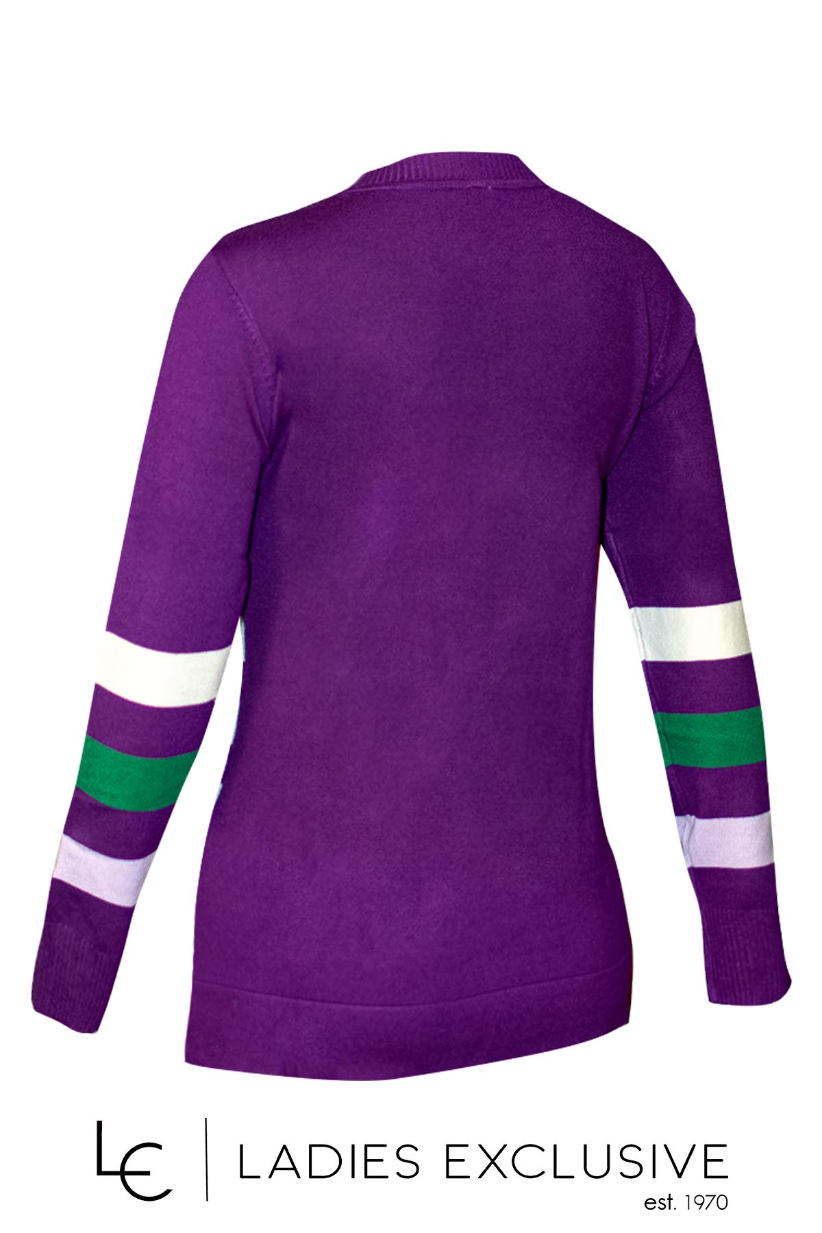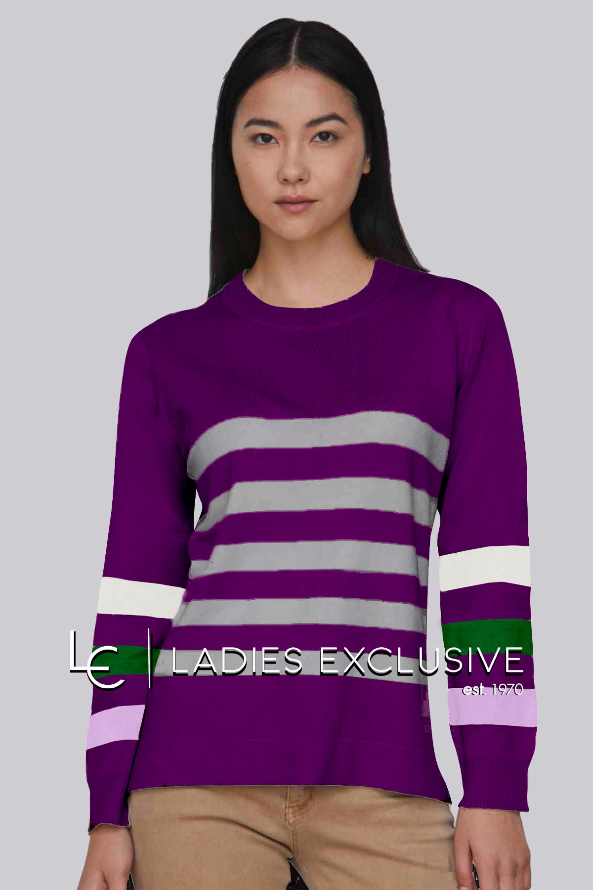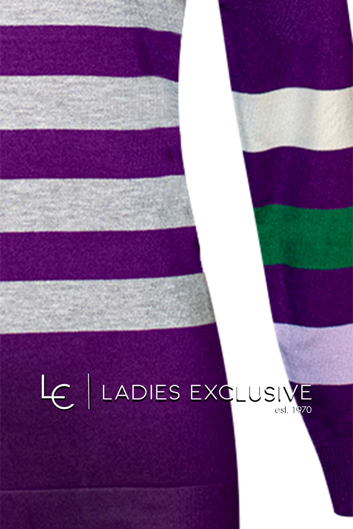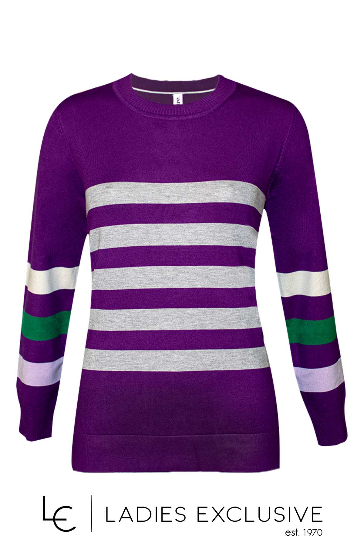ÊTRE Μπλούζα πλεκτή ριγέ μωβ με γκρι, με πράσινη ρίγα στα μανίκια.