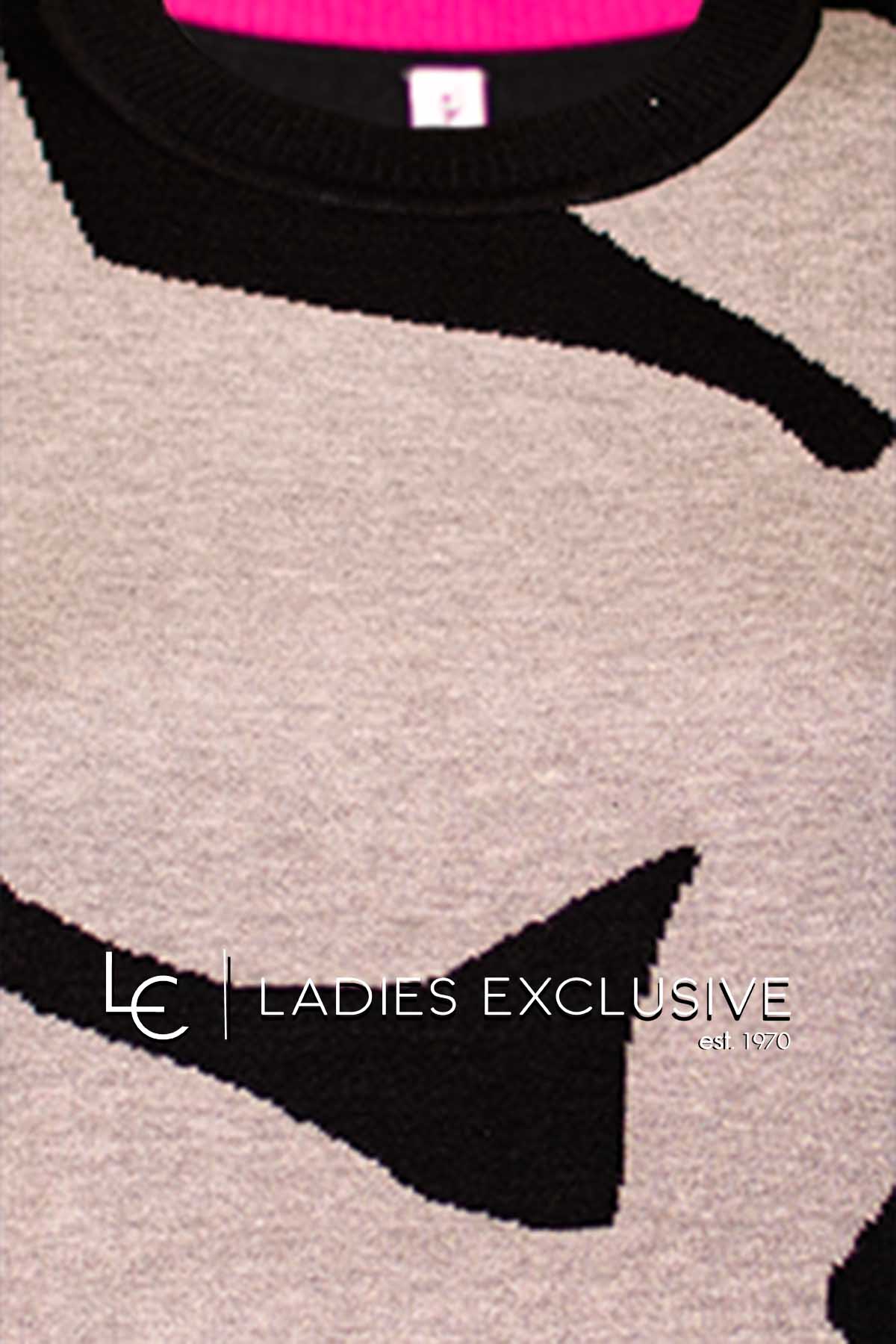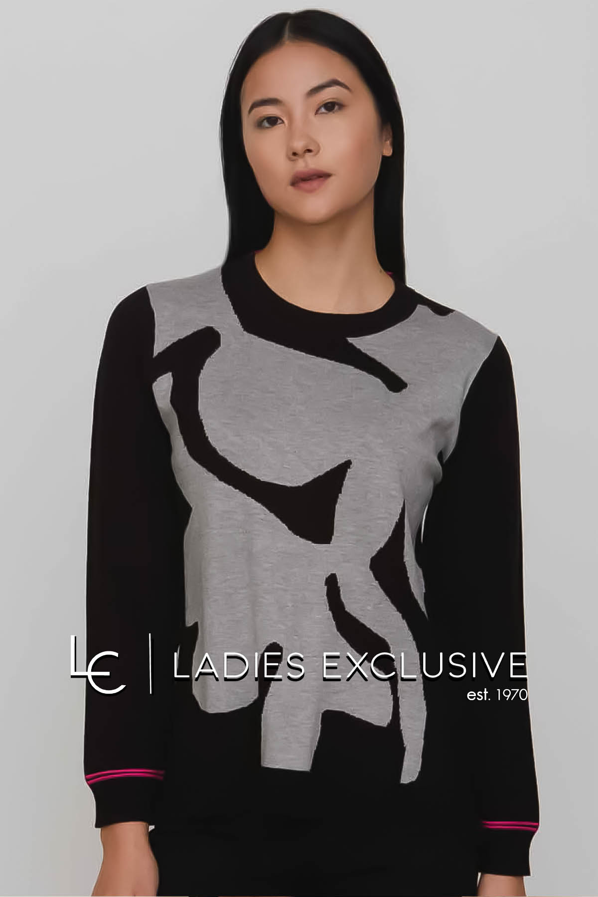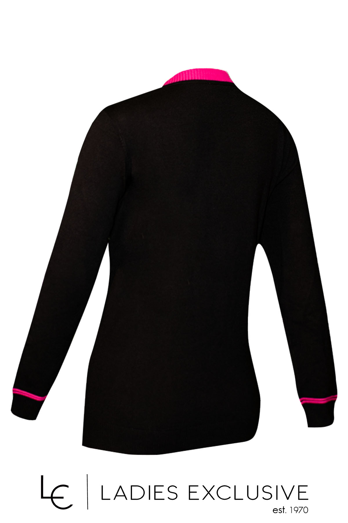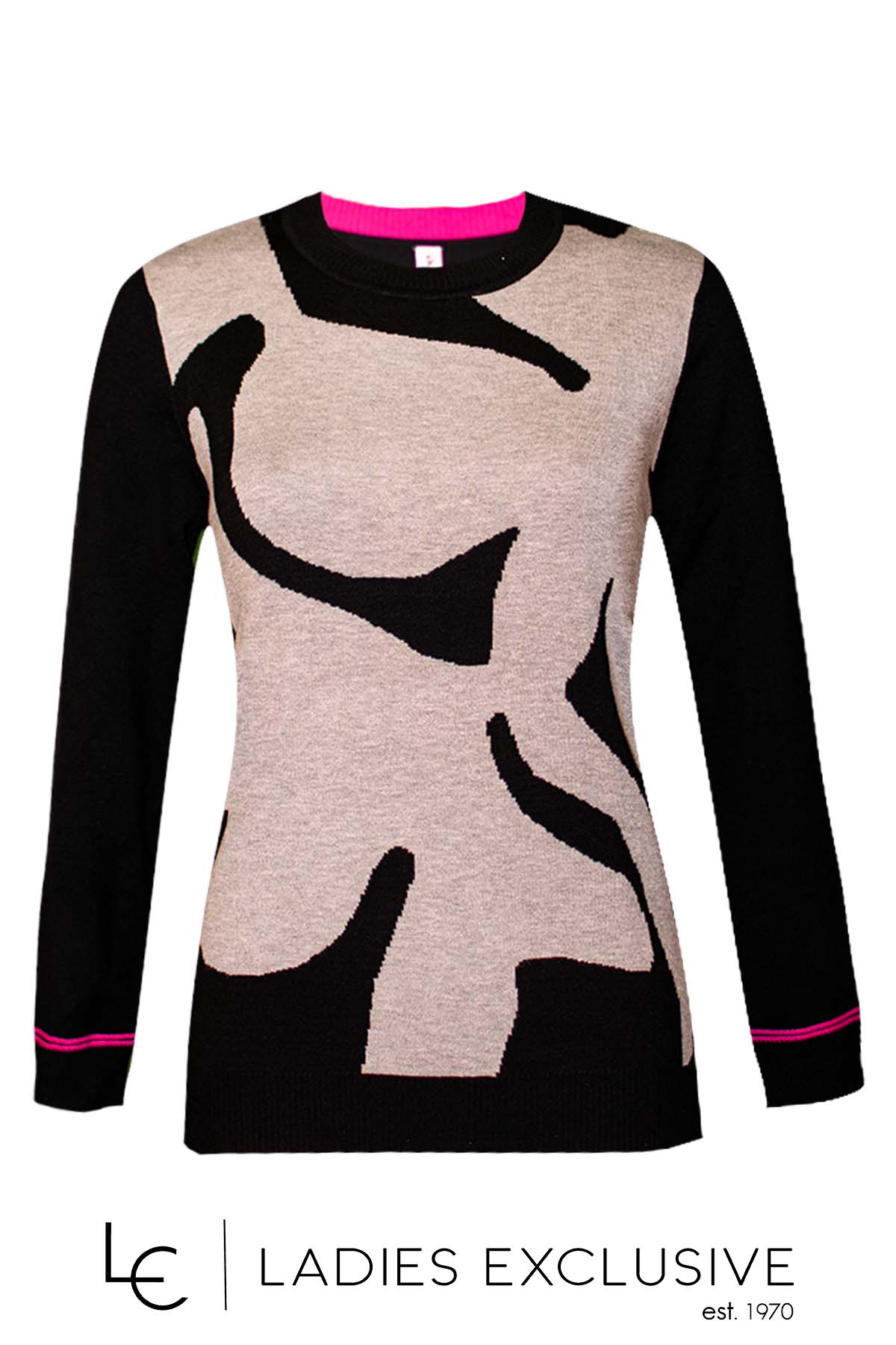 ÊTRE Μπλούζα πλεκτή τρίχρωμη μαύρο με γκρί και φούξια λεπτομέρεια στη λαιμόκοψη.