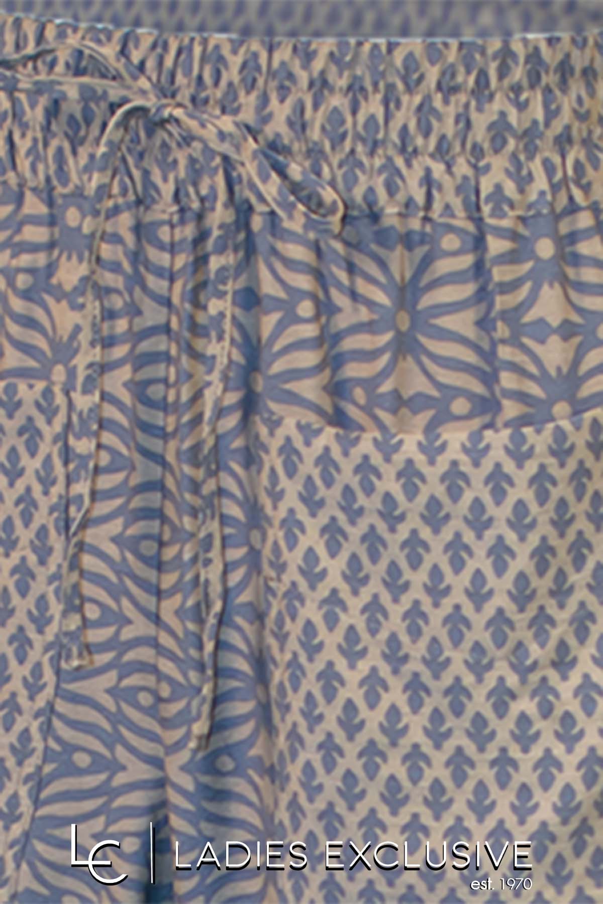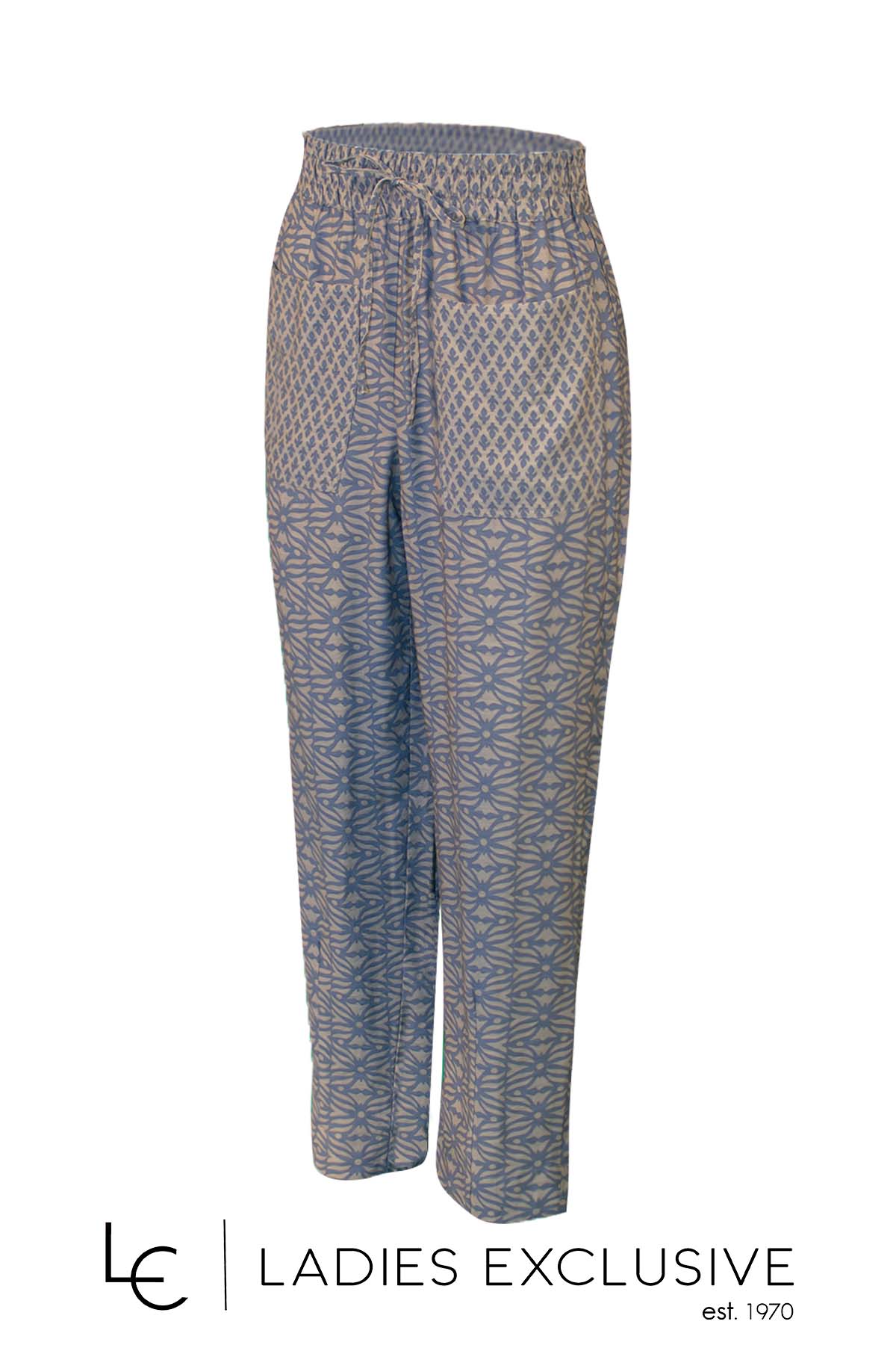 COSTA MANI Παντελόνι σε γήινα χρώματα με λάστιχο στη μέση και κορδόνι που δένει. Έχει τσέπες μπροστά και πίσω.