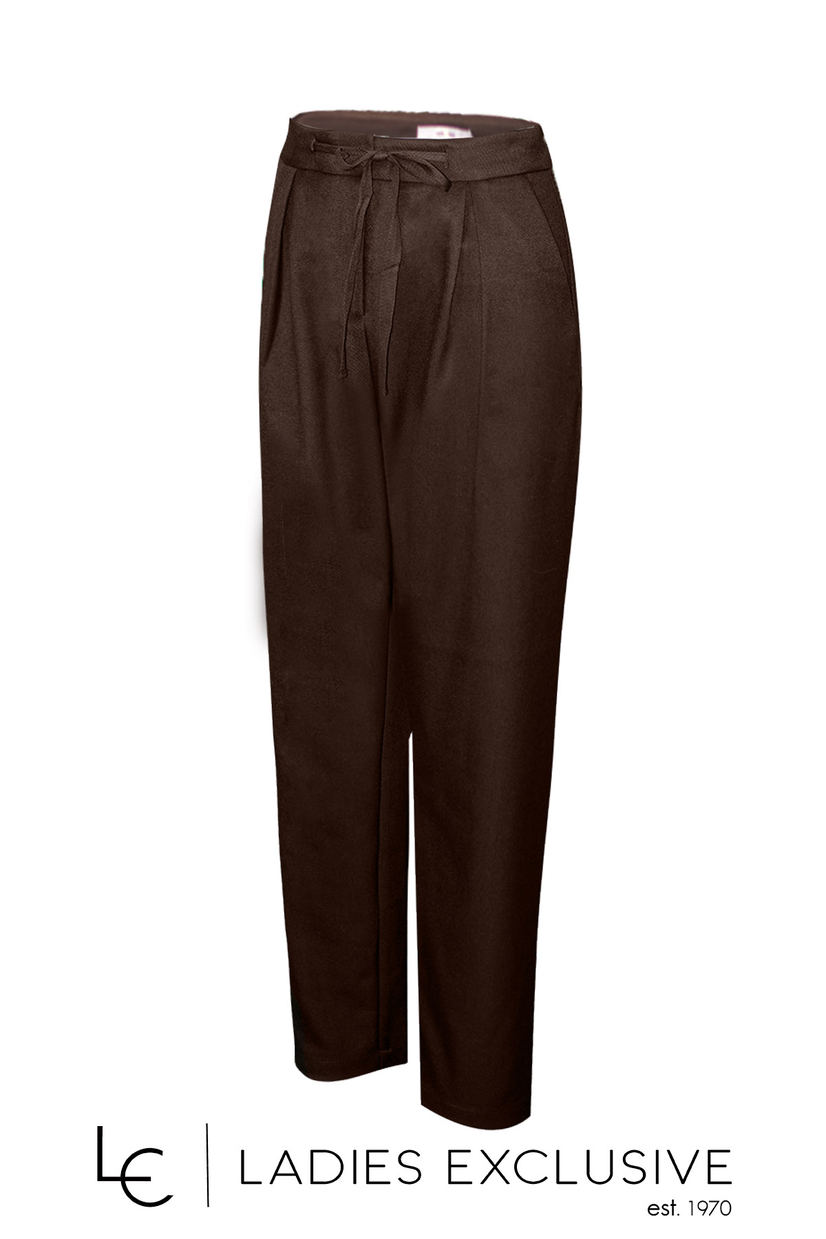 COSTA MANI Παντελόνι καφέ με πιέτες σε άνετη γραμμή και δέσιμο με κορδόνι στη μέση.