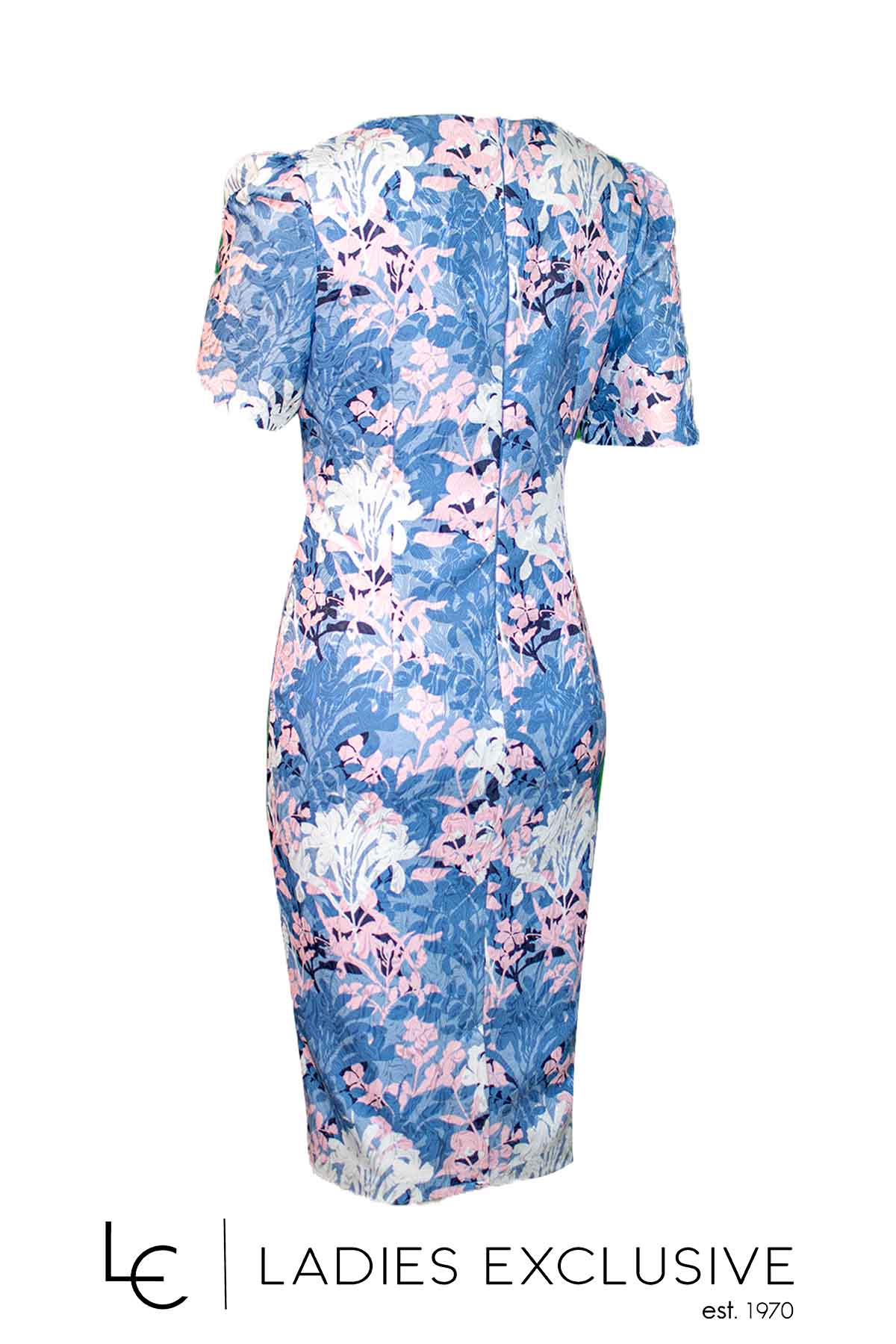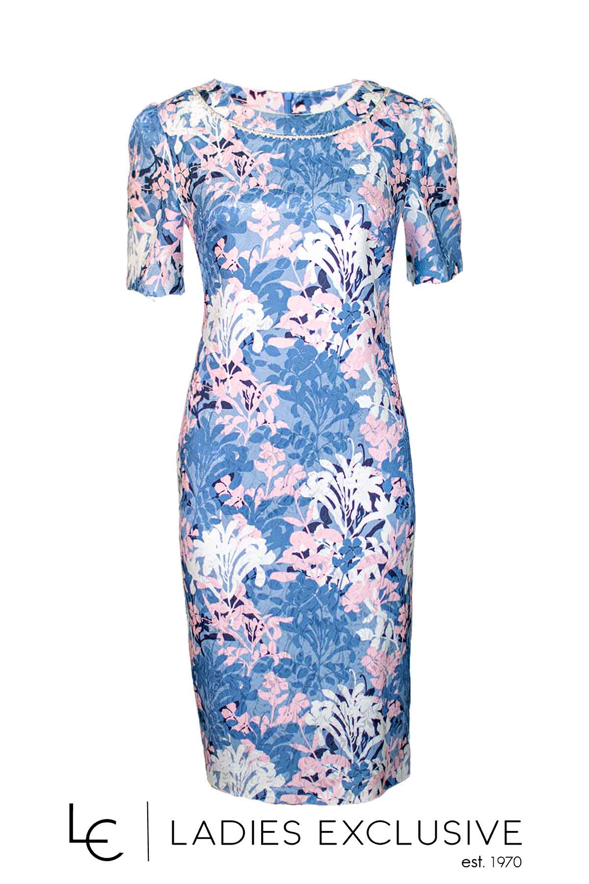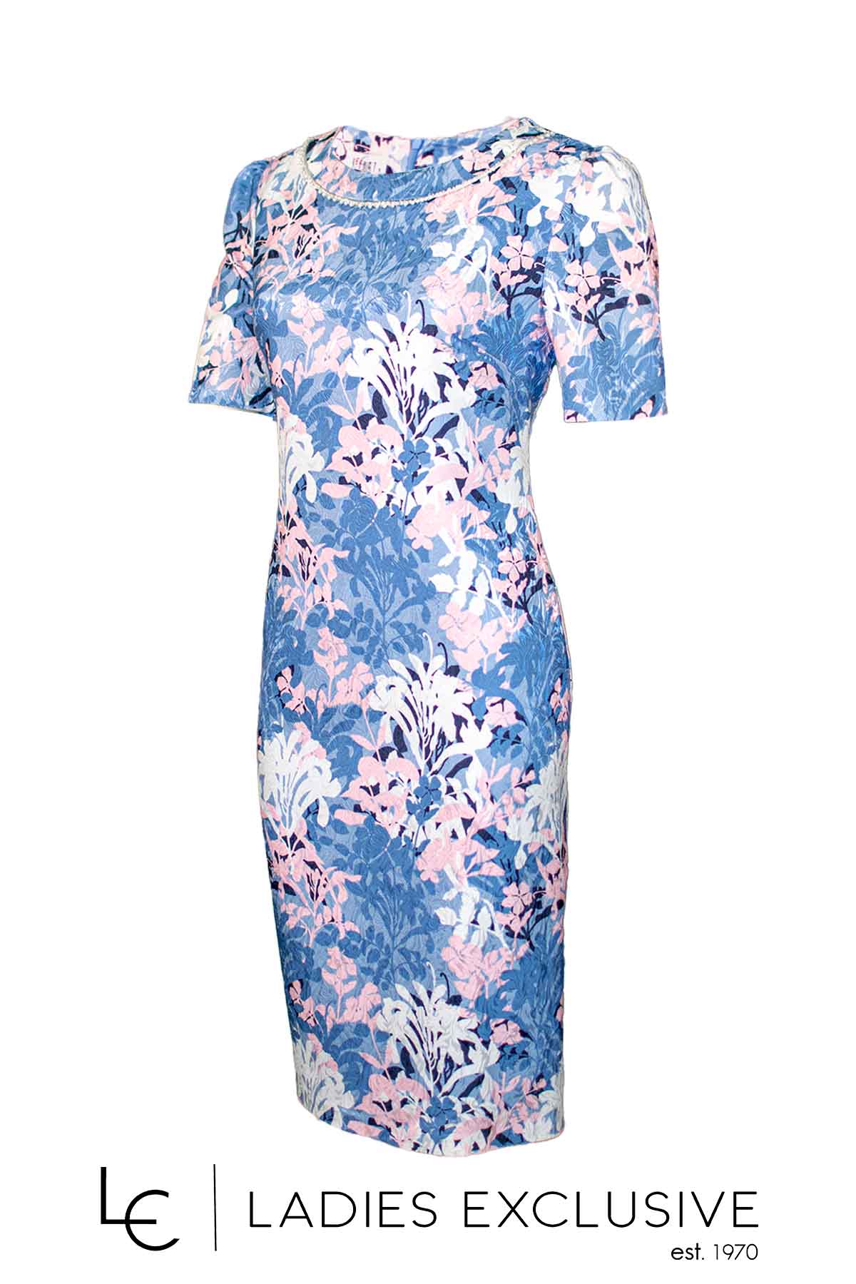 EFFECT Φόρεμα εμπριμέ κοντομάνικο με διακοσμητικές πέρλες στη λαιμόκοψη και ανάγλυφα σχέδια στην ύφανση.