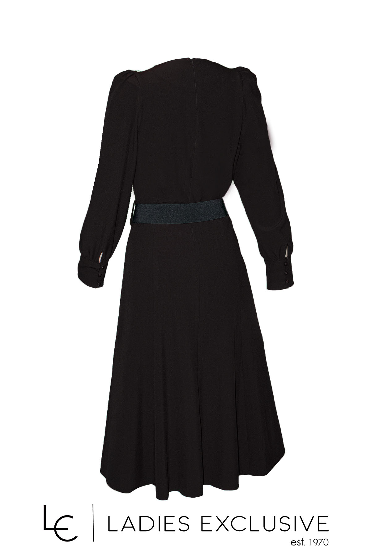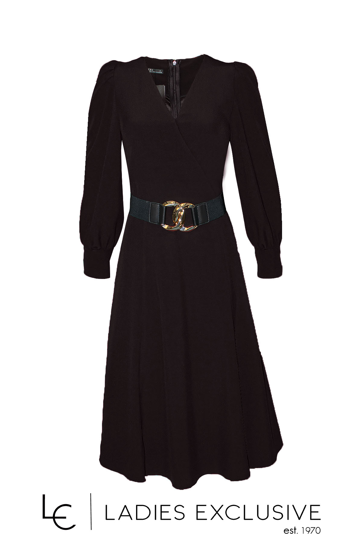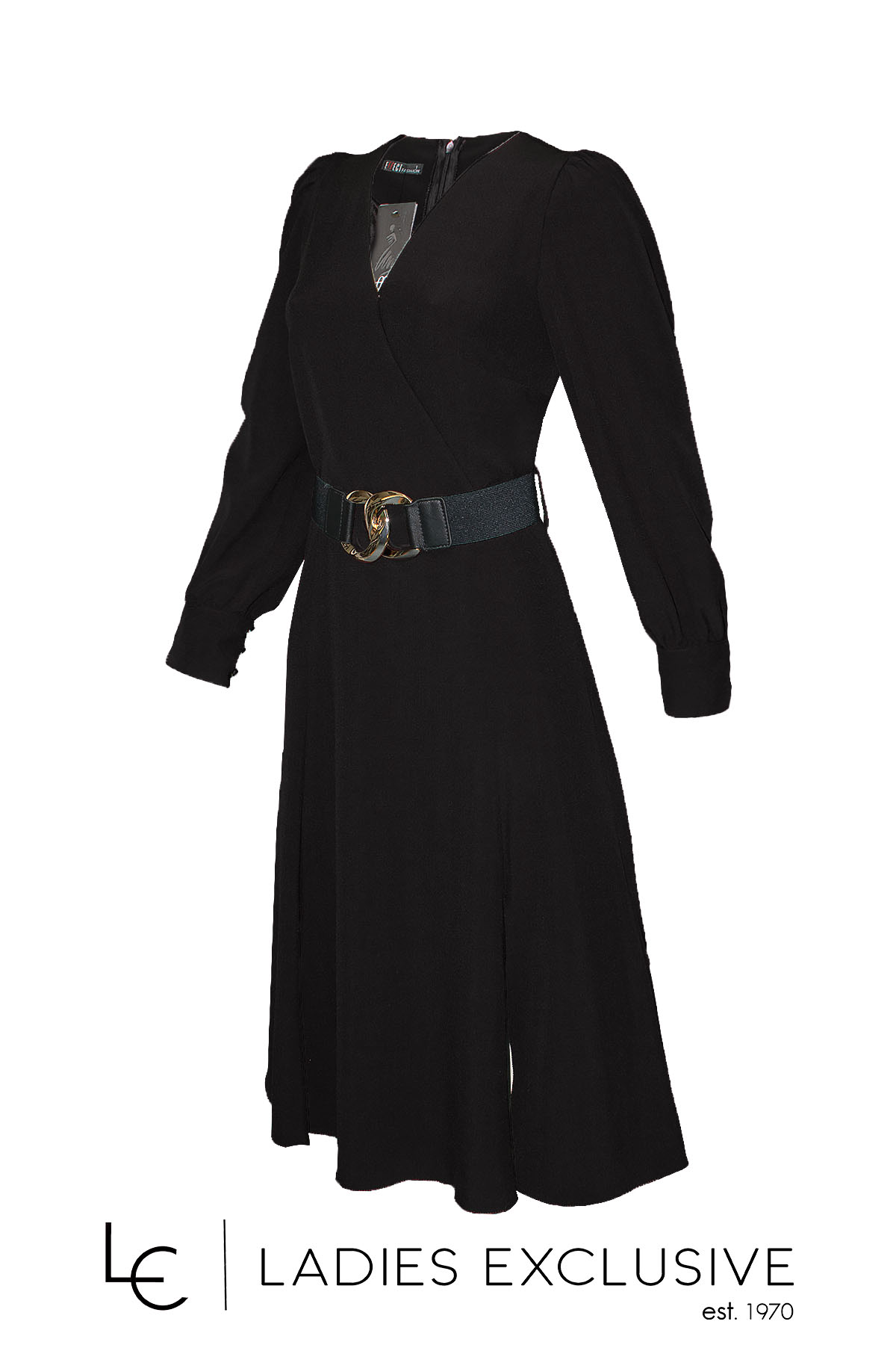EFFECT Φόρεμα μαύρο κρουαζέ με ελαστική ζώνη και μανίκι φούσκα με μανσέτα.