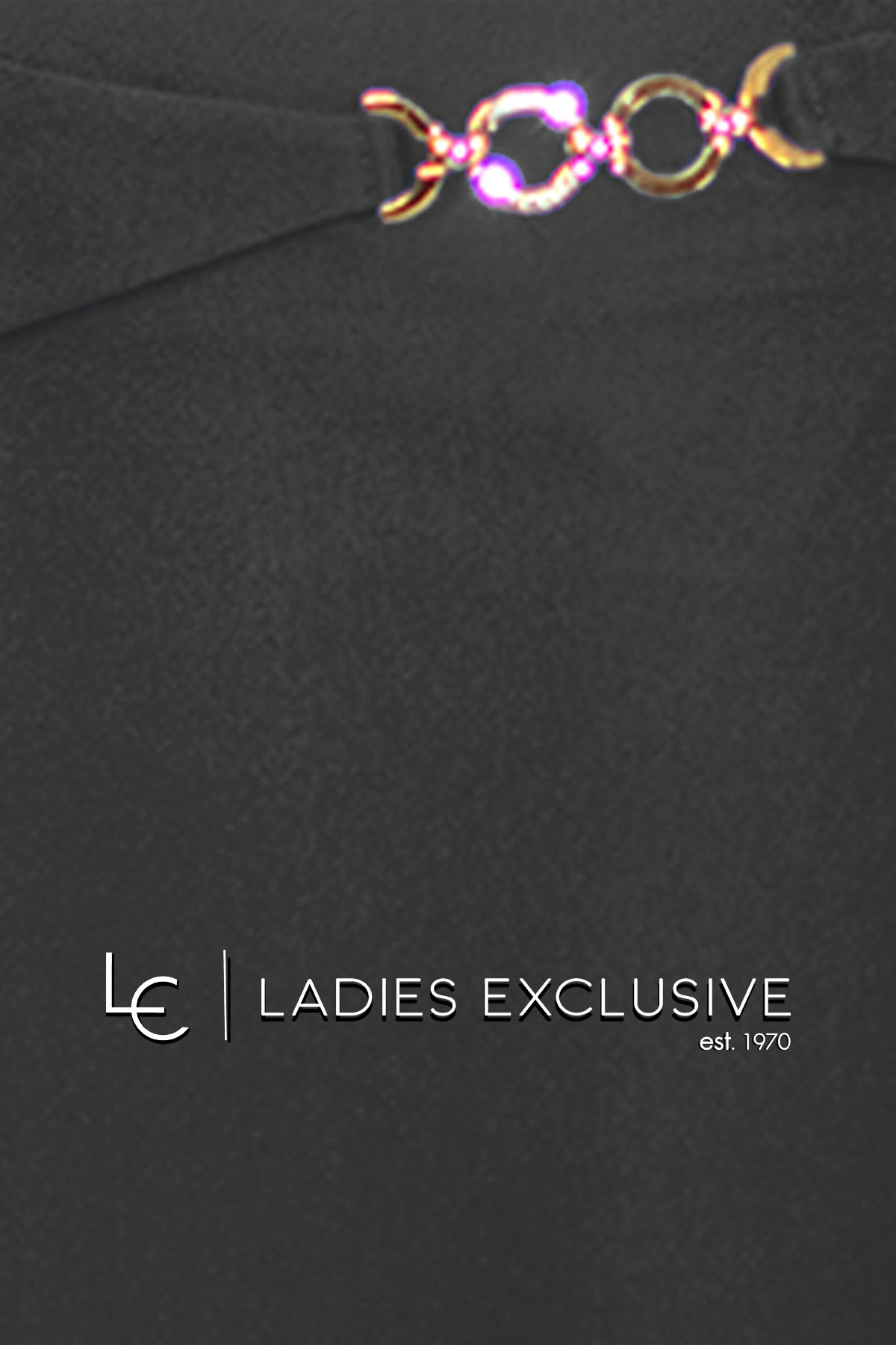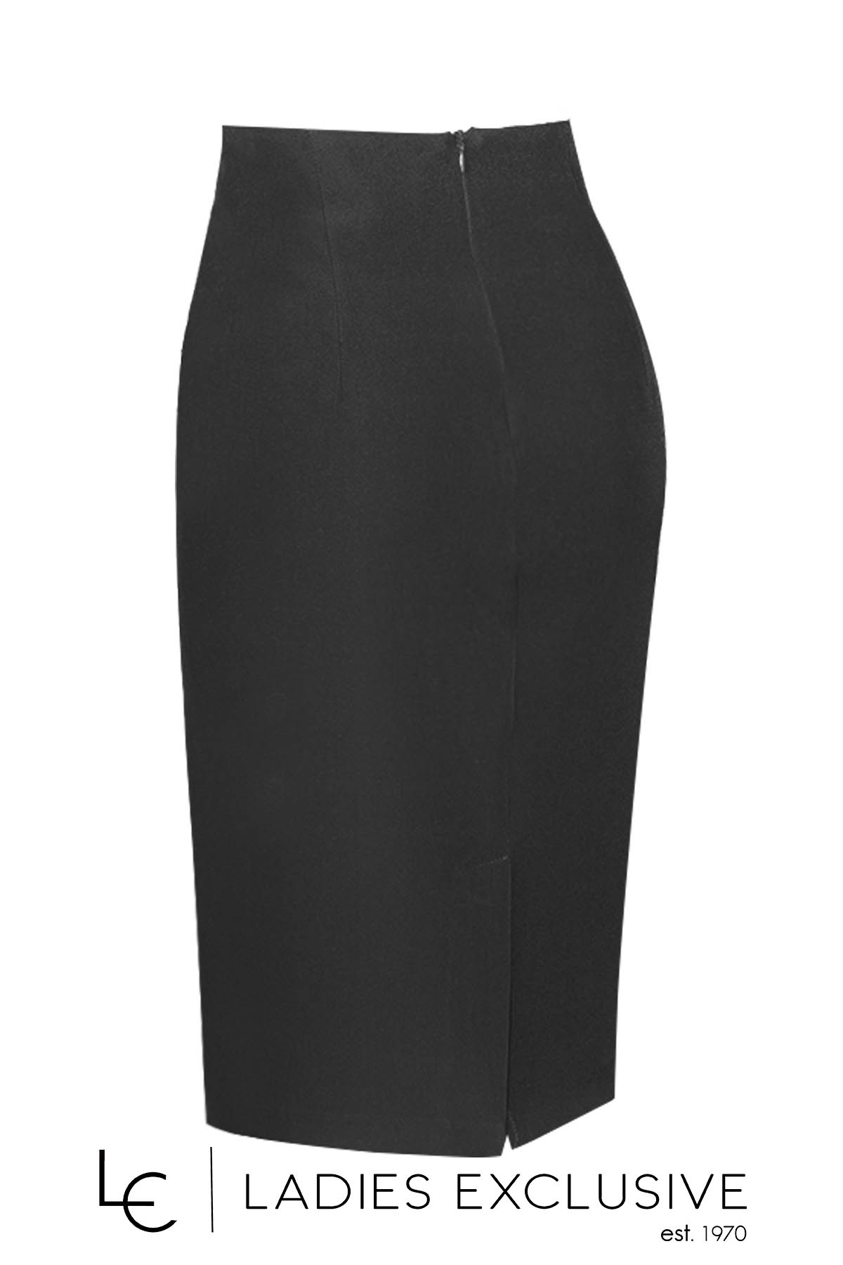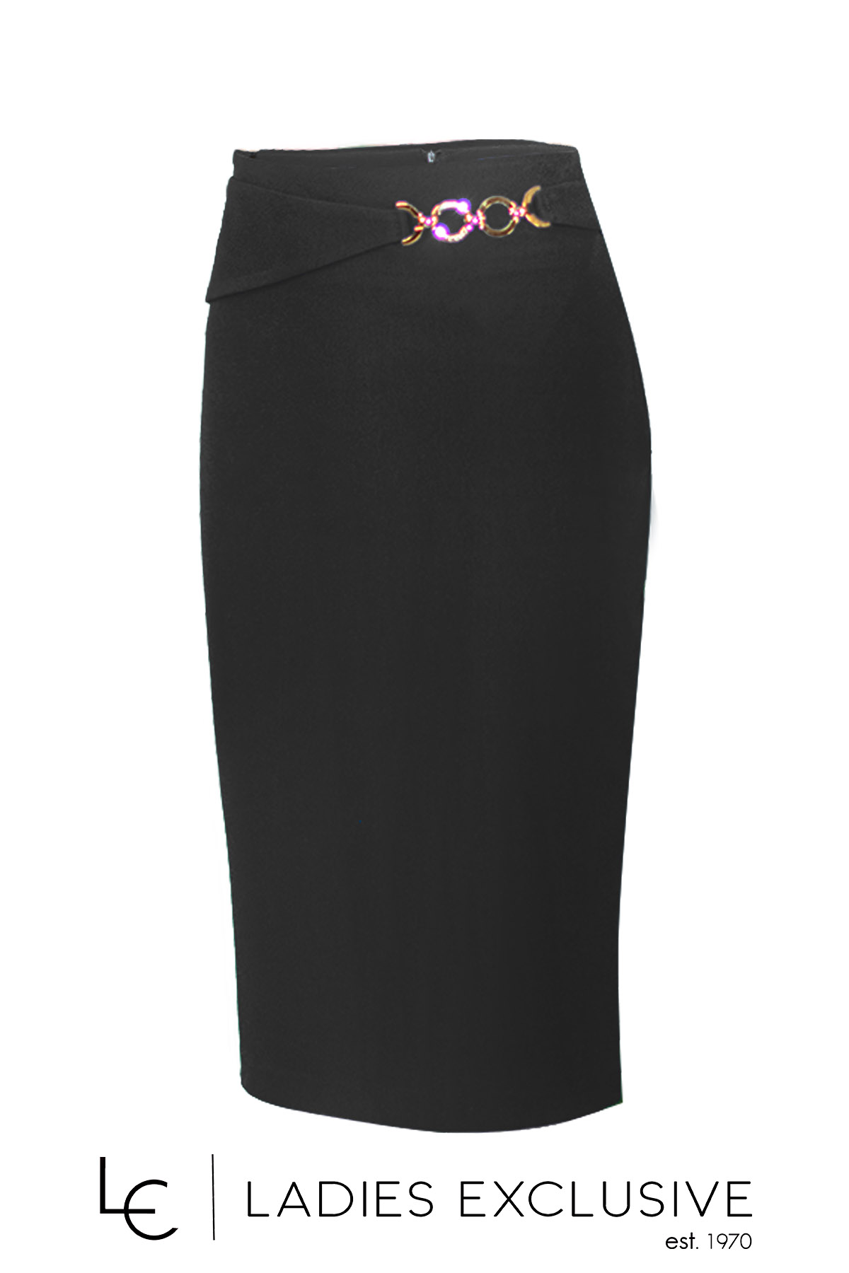 EFFECT Φούστα μαύρη κρεπ σε ίσια γραμμή, με χρυσή αγκράφα στη μέση.
