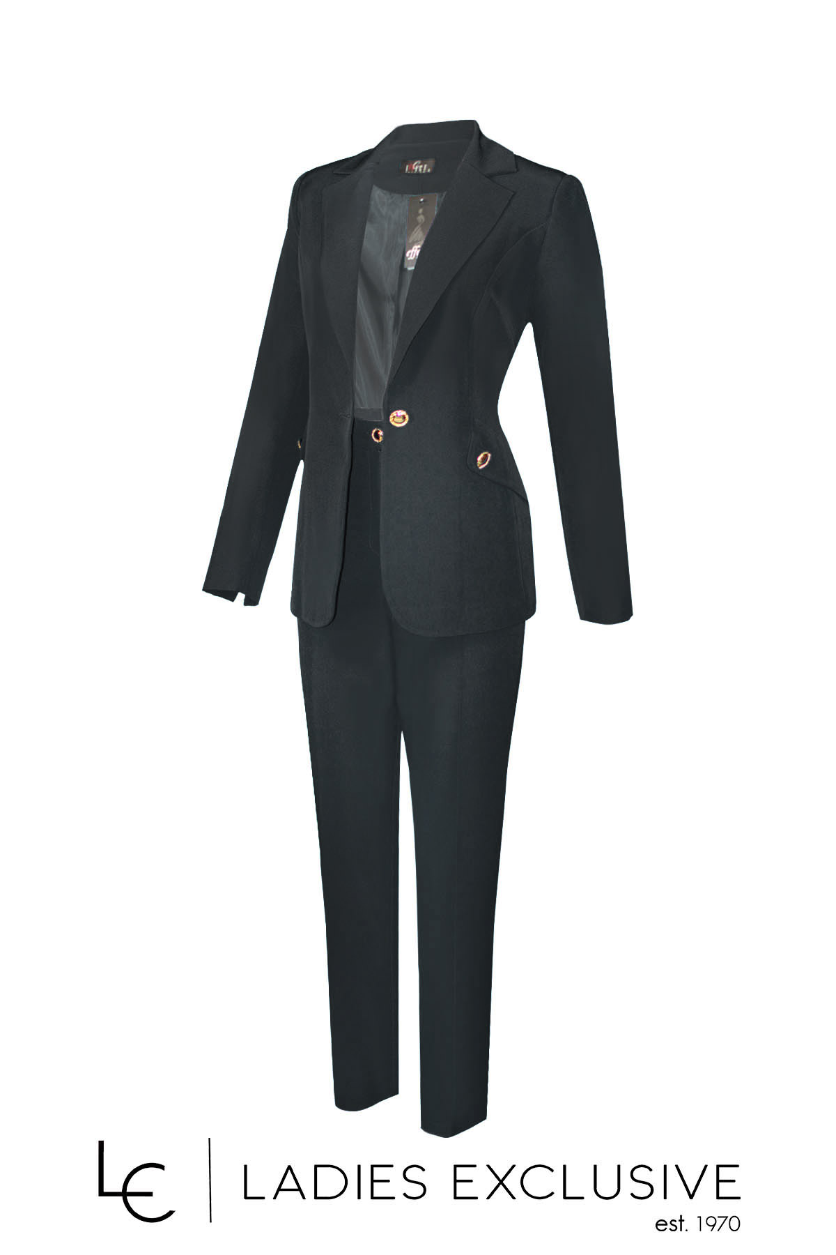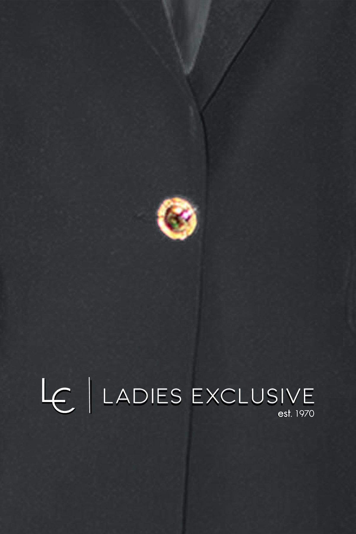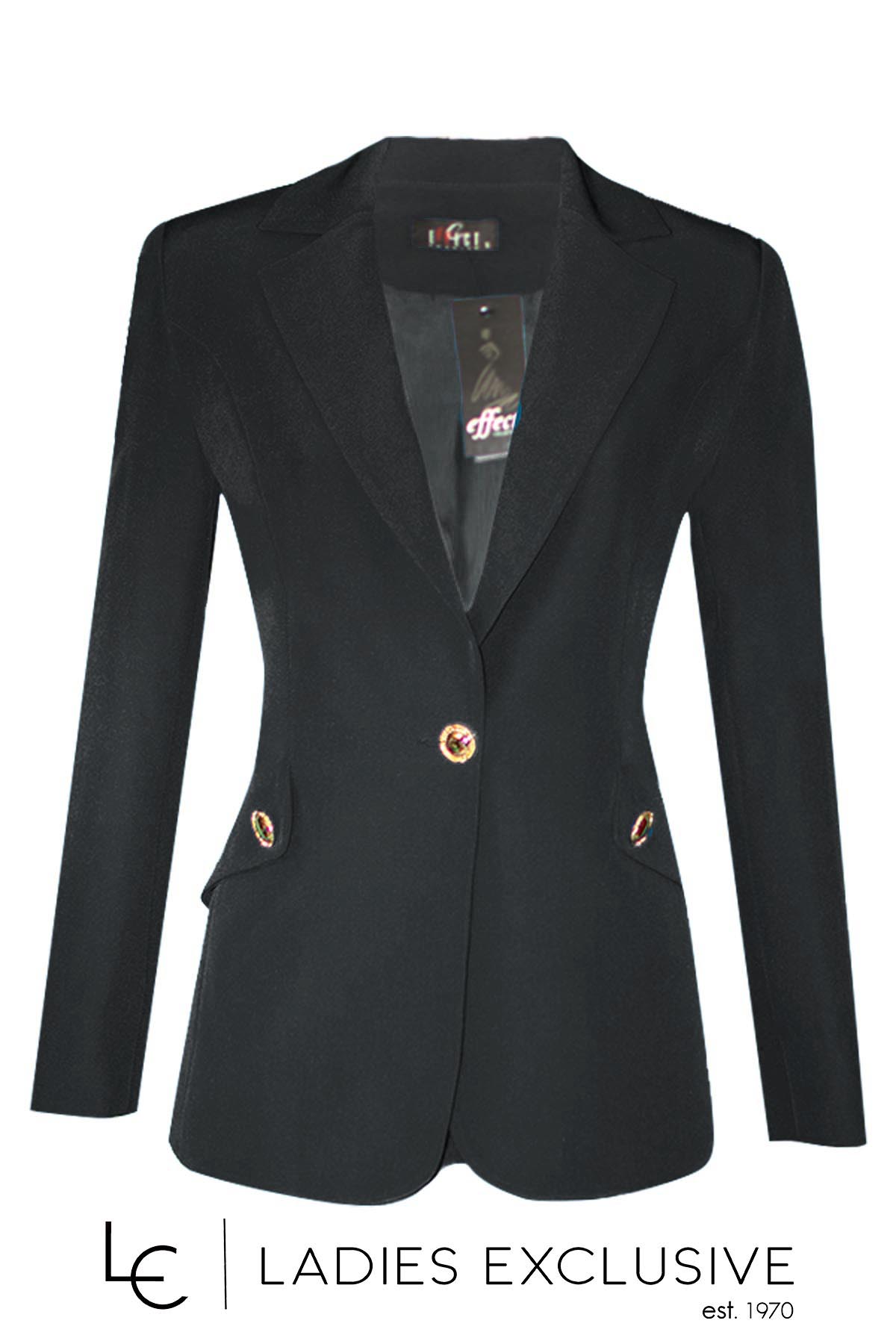 EFFECT Σακάκι μαύρο κρεπ με χρυσά κουμπιά και λοξά καπάκια. Γίνεται σετ με το παντελόνι με κωδικό 24501-2515.01.
