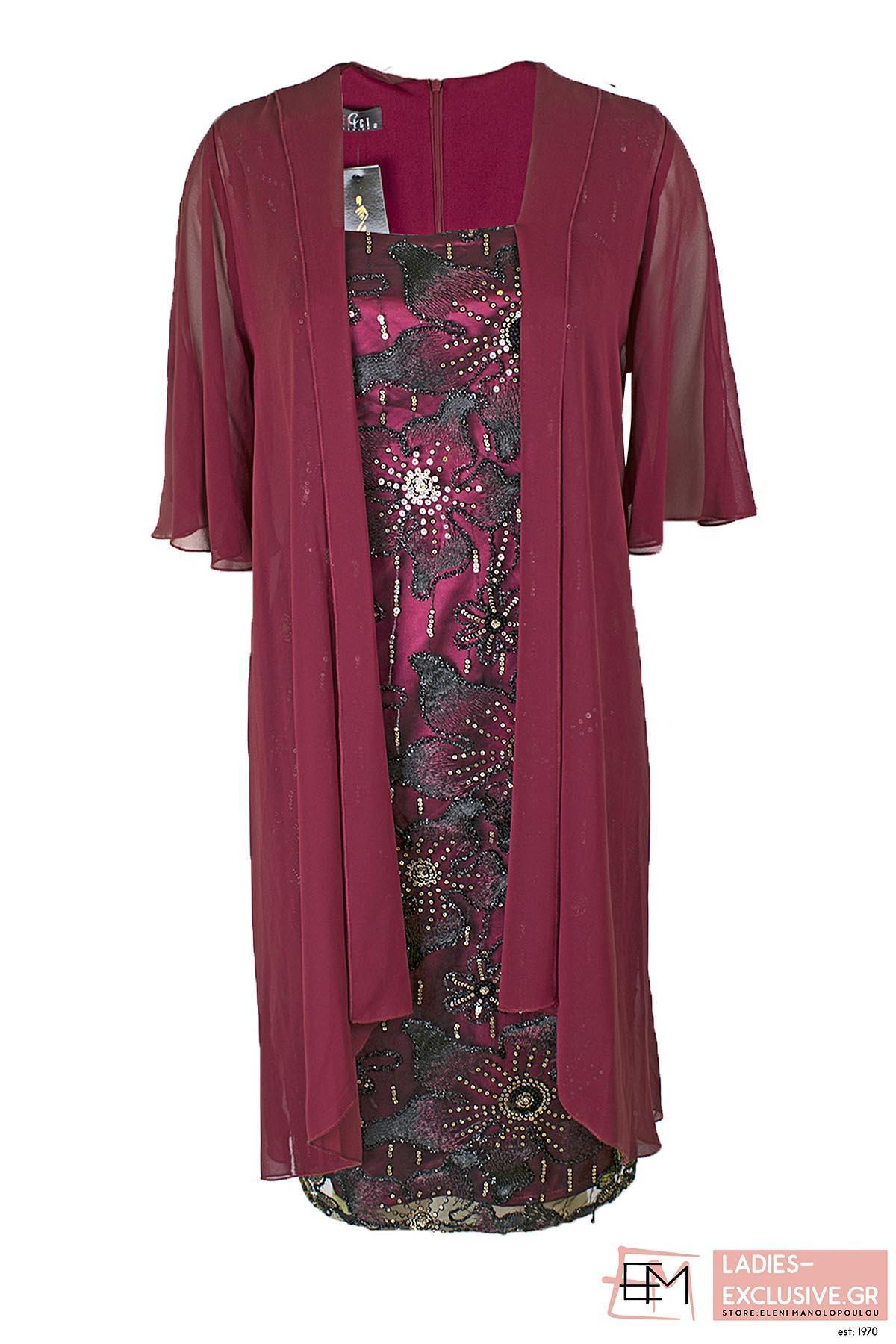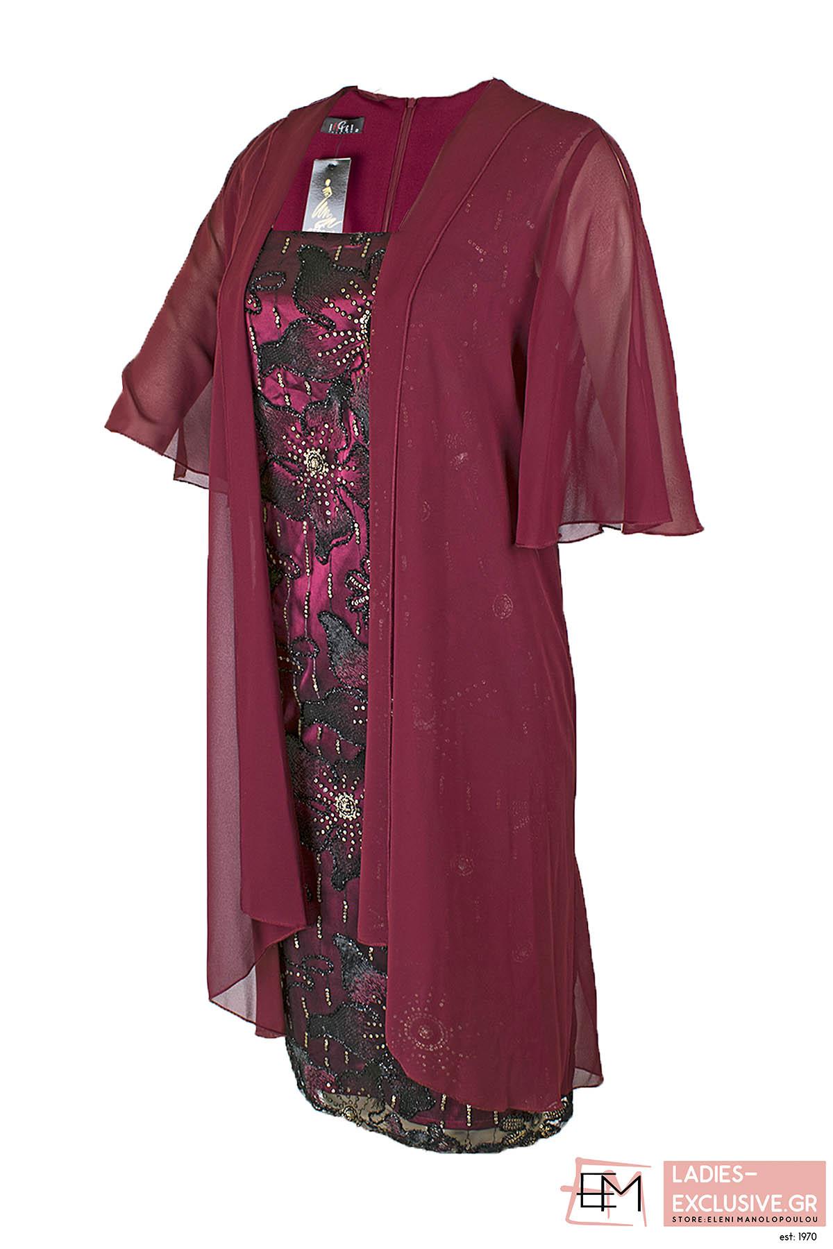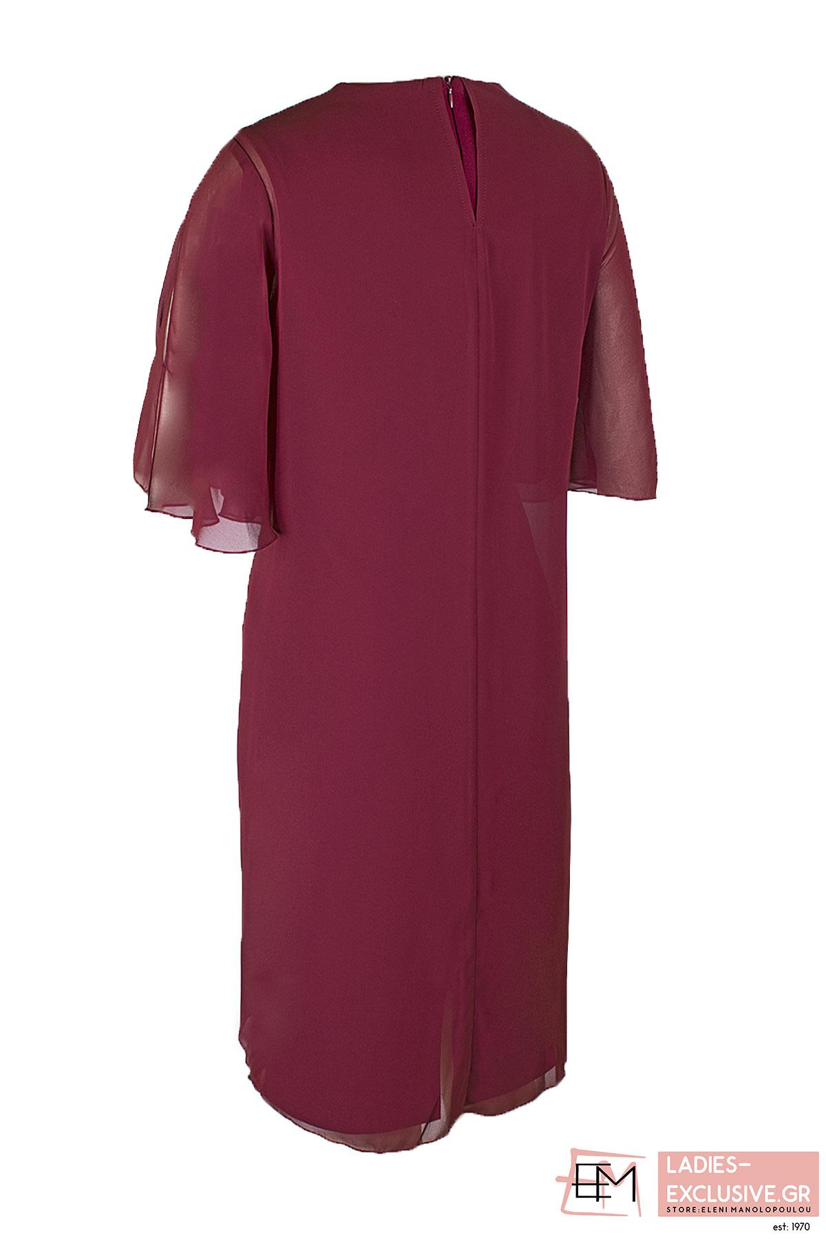 EFFEECT Φόρεμα μπορντό με κεντημένη δαντέλα και μουσελίνα