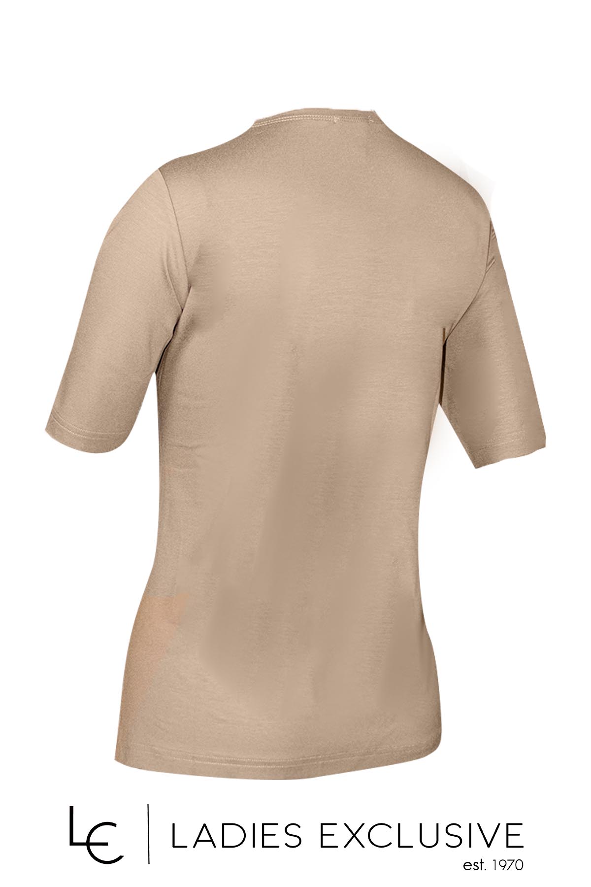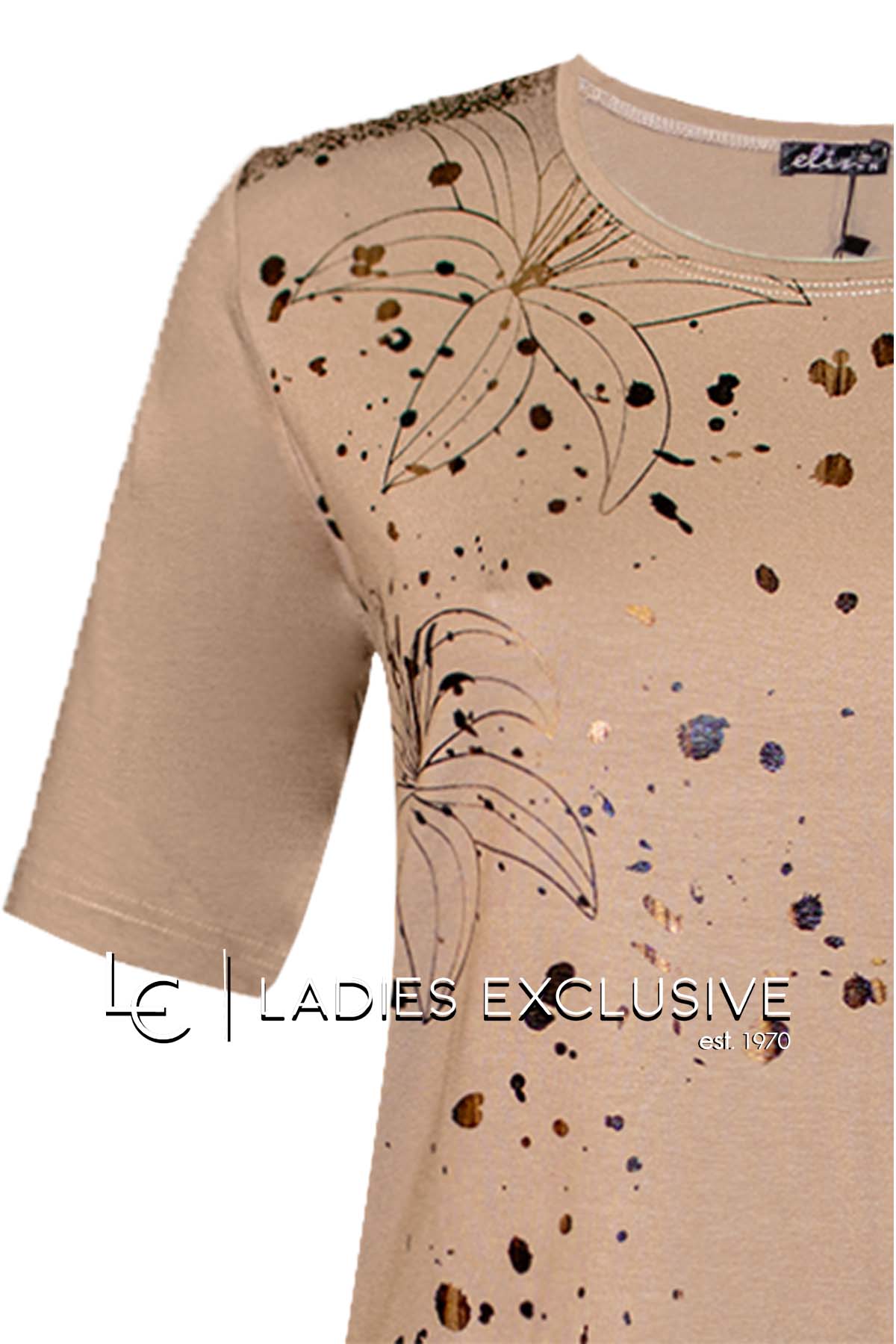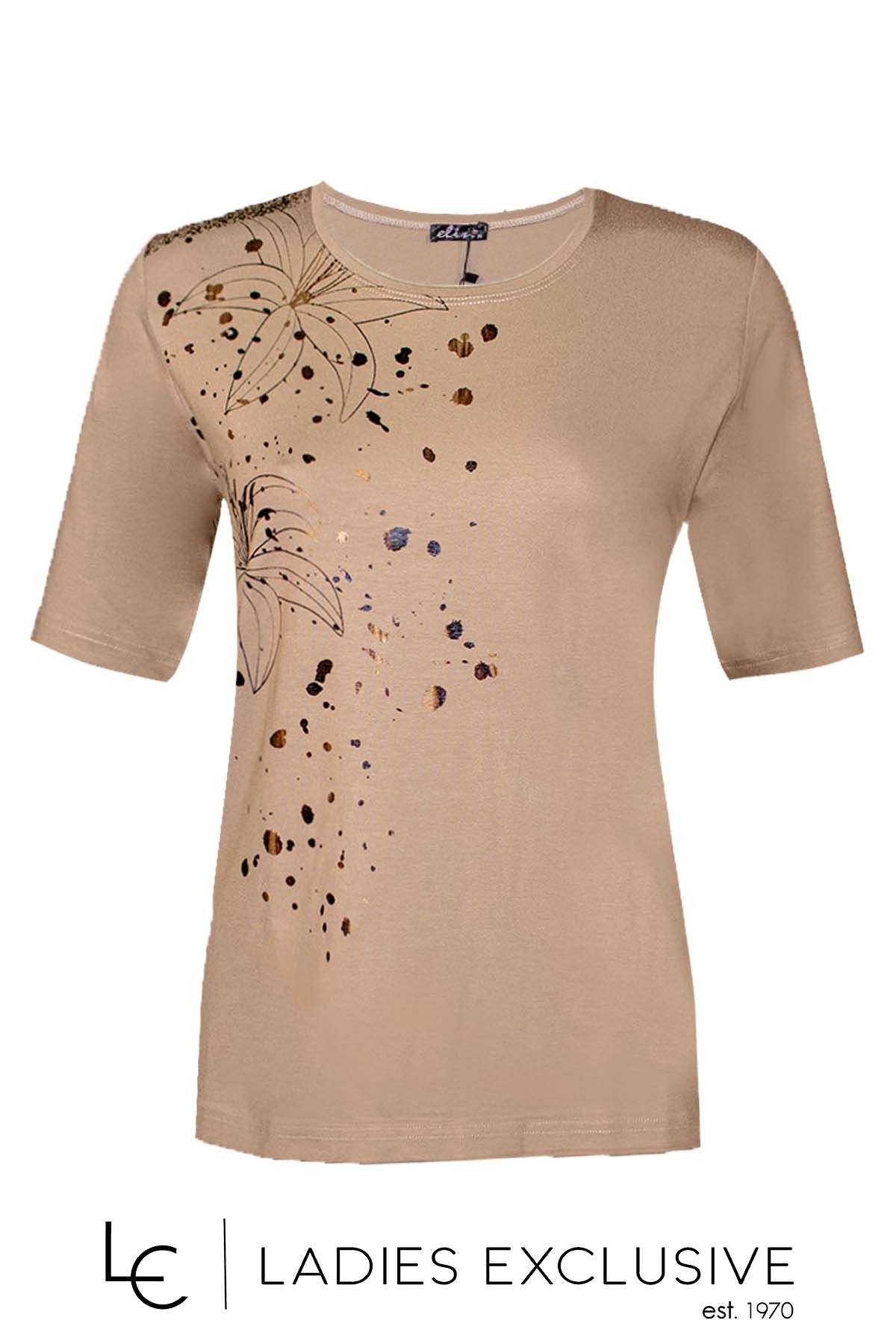 ELIN Μπλούζα μπεζ κοντομάνικη με στάμπα χρυσό λουλούδι.